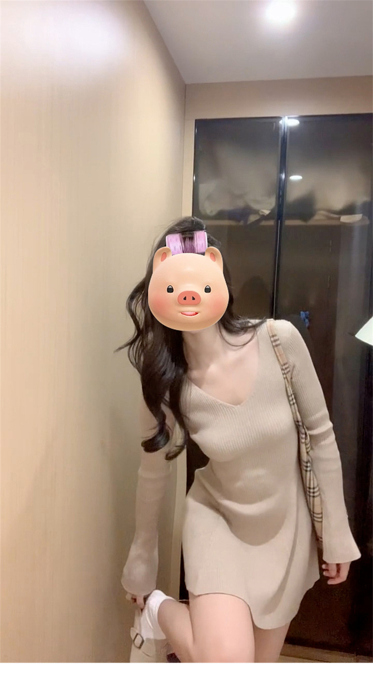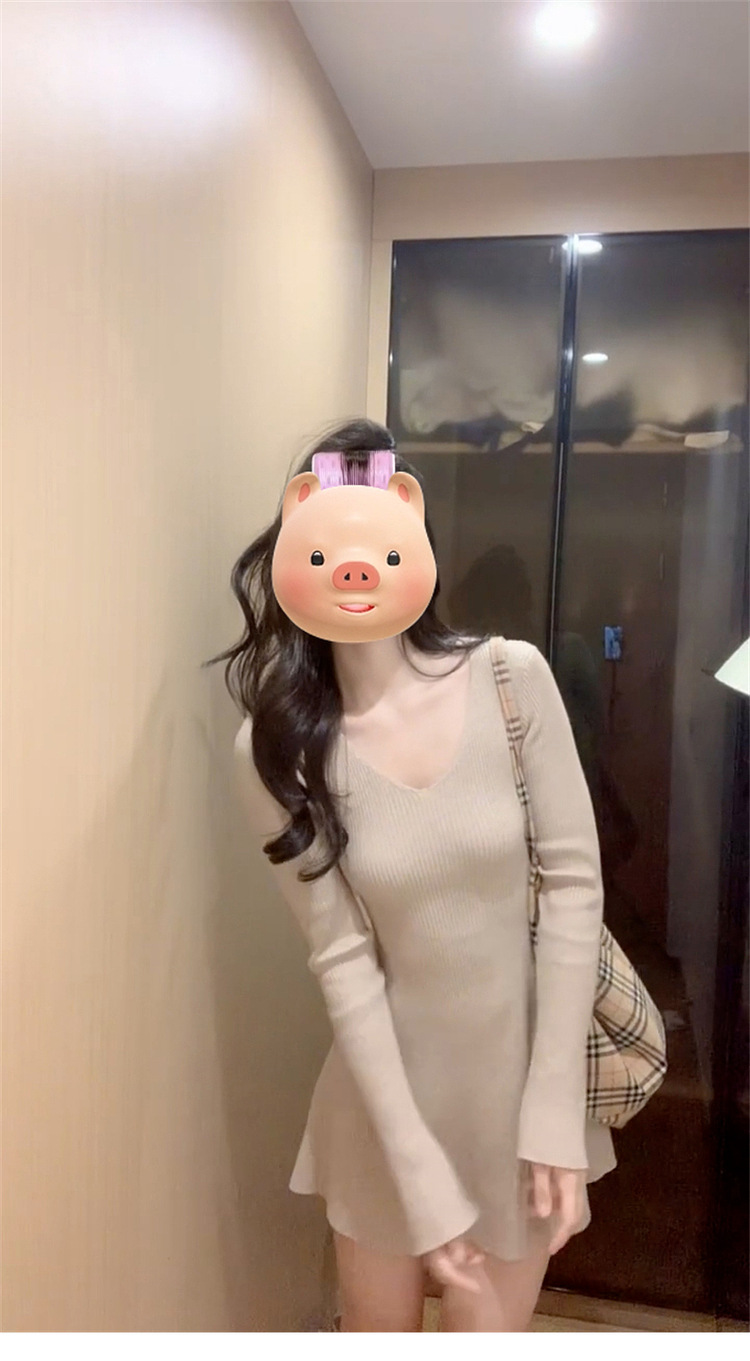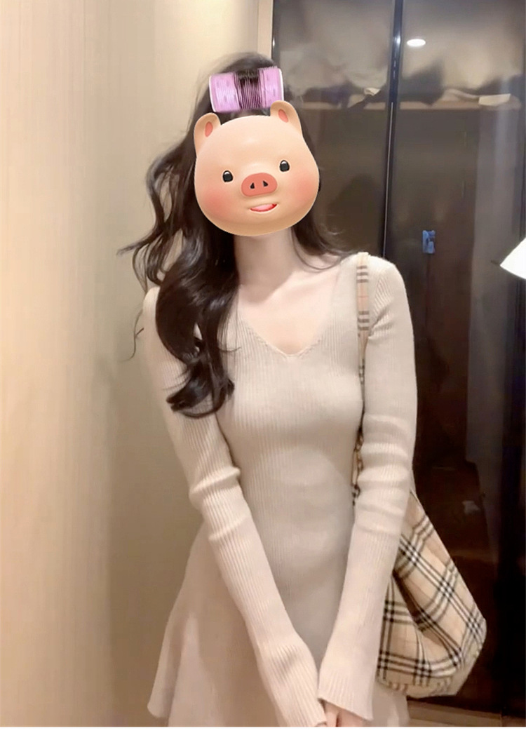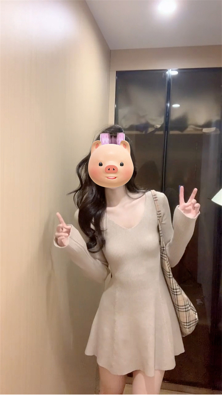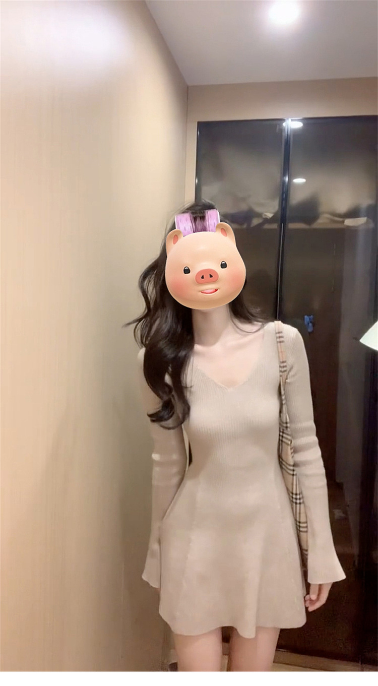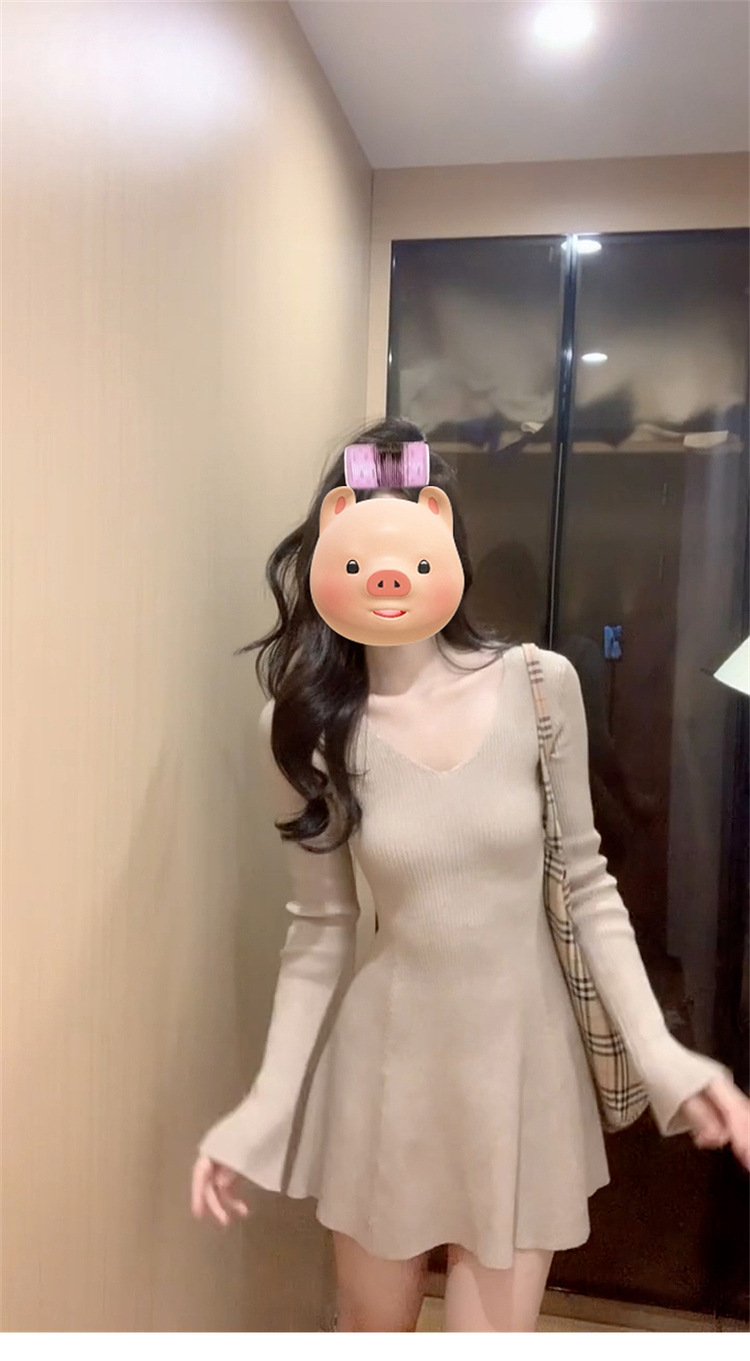 인터넷 연예인 프랑스 레트로 V-Neck 경적 슬리브 니트 원피스 이른 가을 소원 슬리밍 우아한 아름다운 A-캐릭터 쇼트스토어 가기