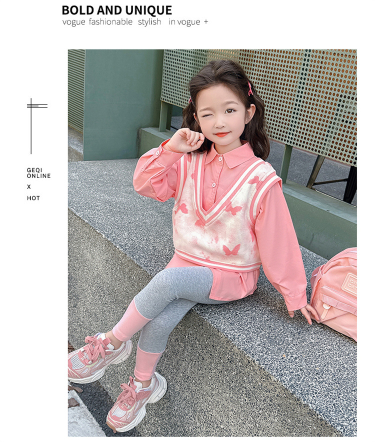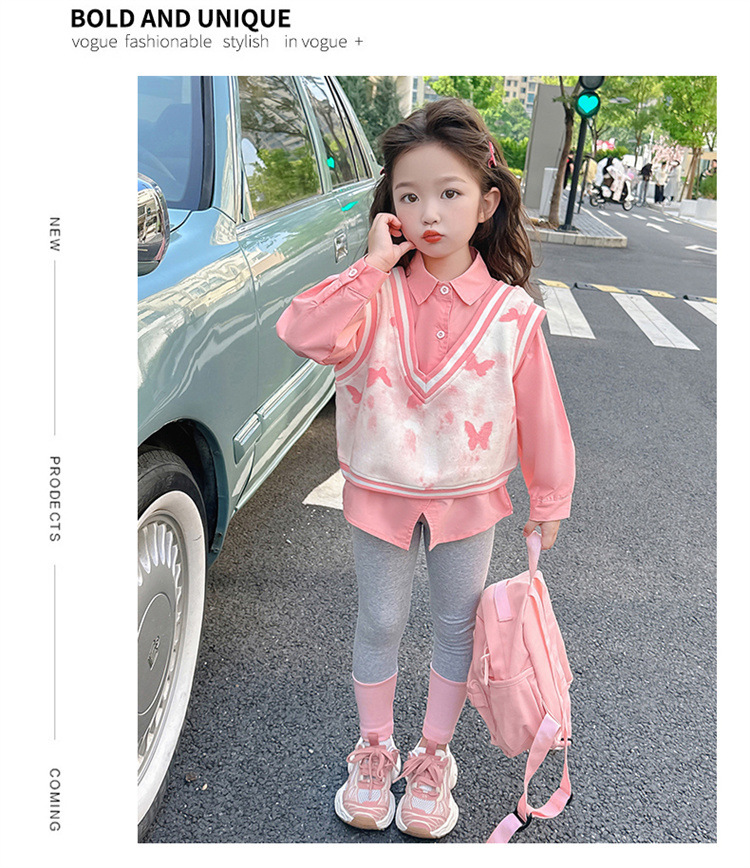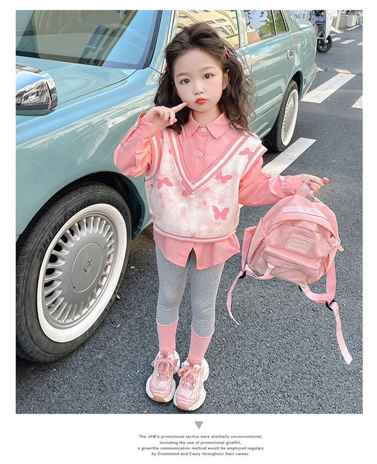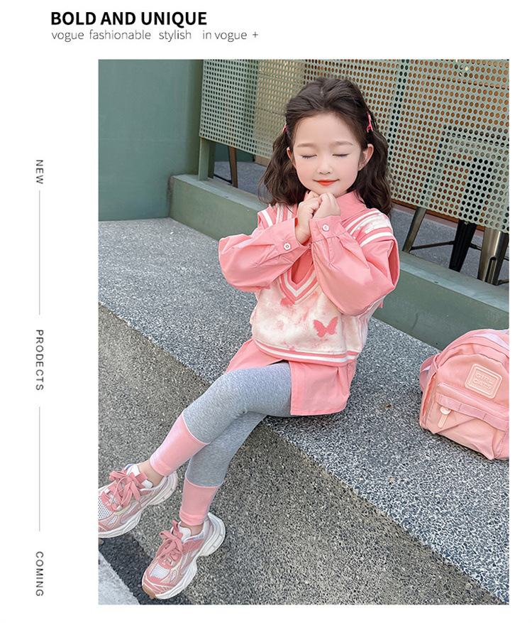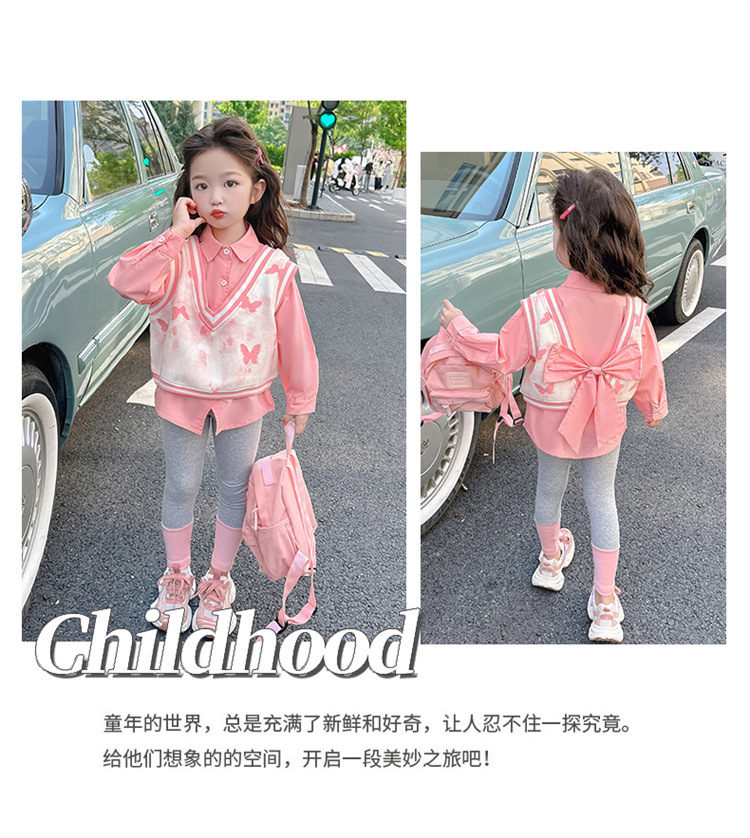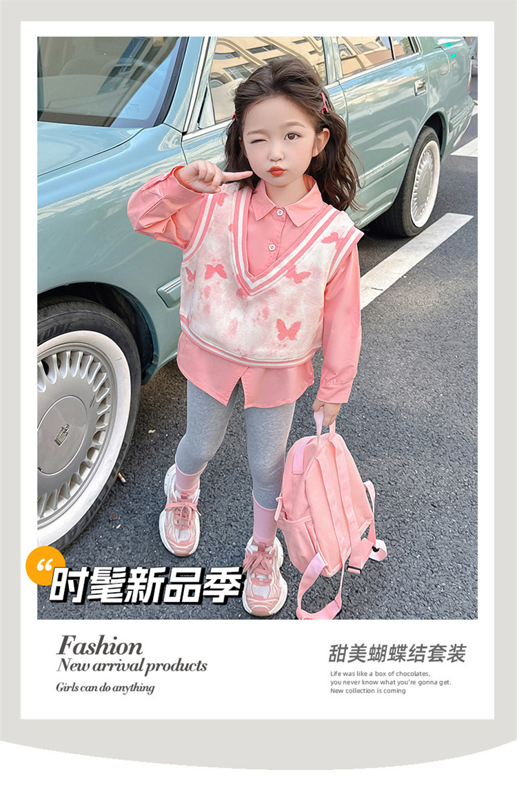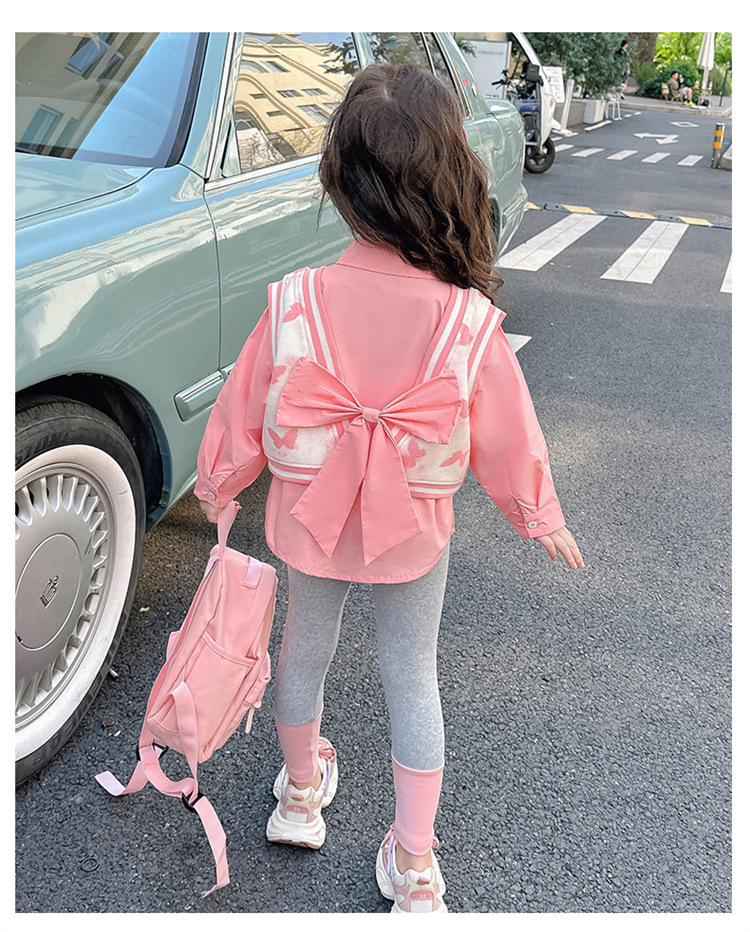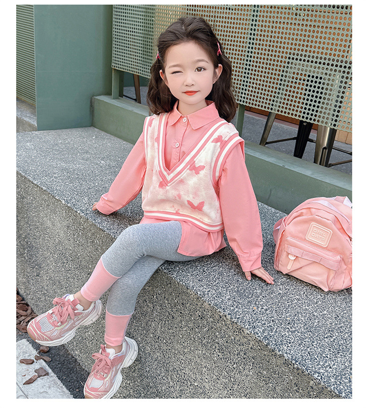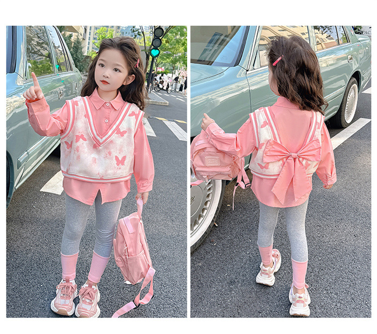 소녀 세트 봄과 가을 2024 새로운 패션 어린 소녀 스포츠 백 활 세 조각 세트스토어 가기