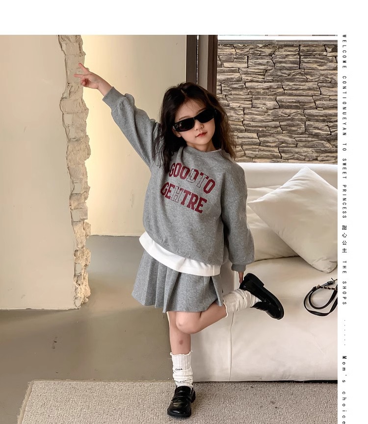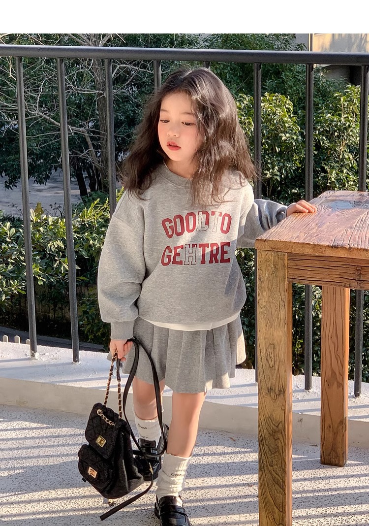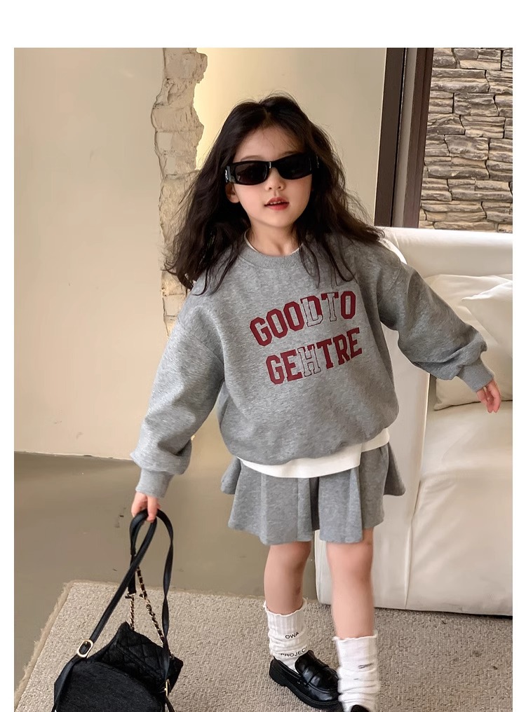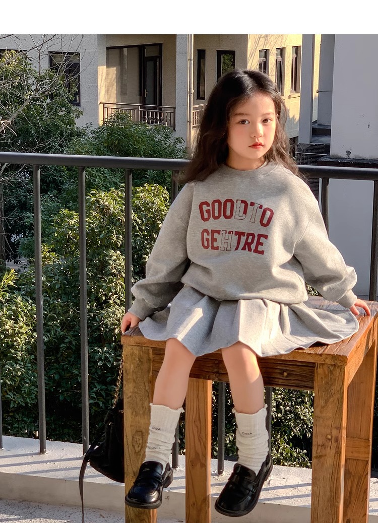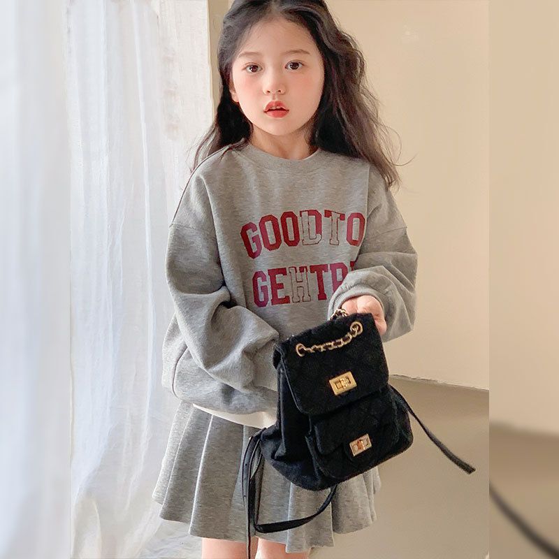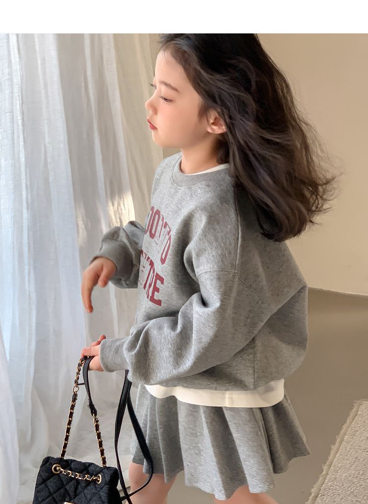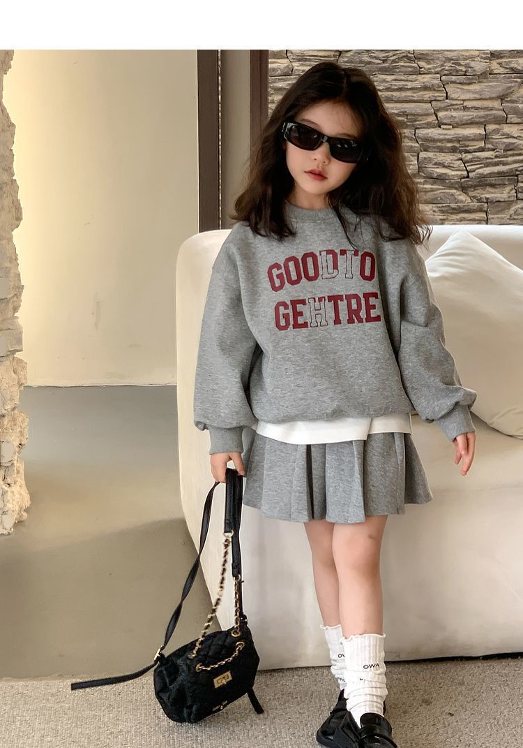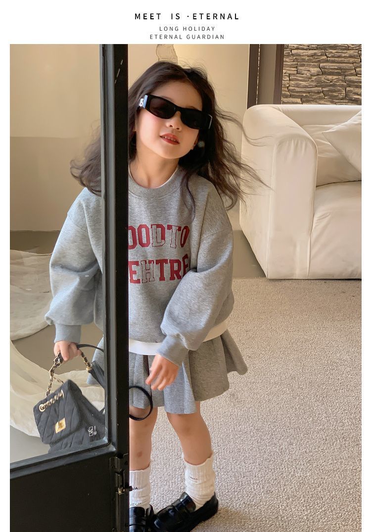 여자 정장 스커트 2025 봄과 가을 새로운 스타일 어린이 느슨한 스웨트 스커트 여자 큰 어린이 스포츠 투피스 세트스토어 가기