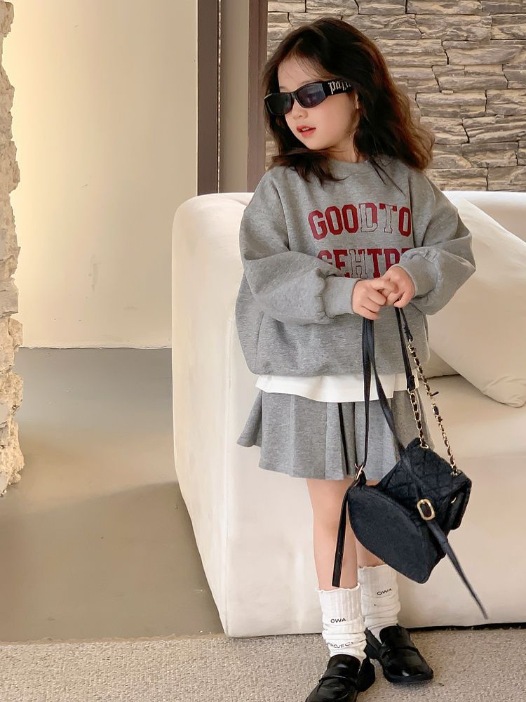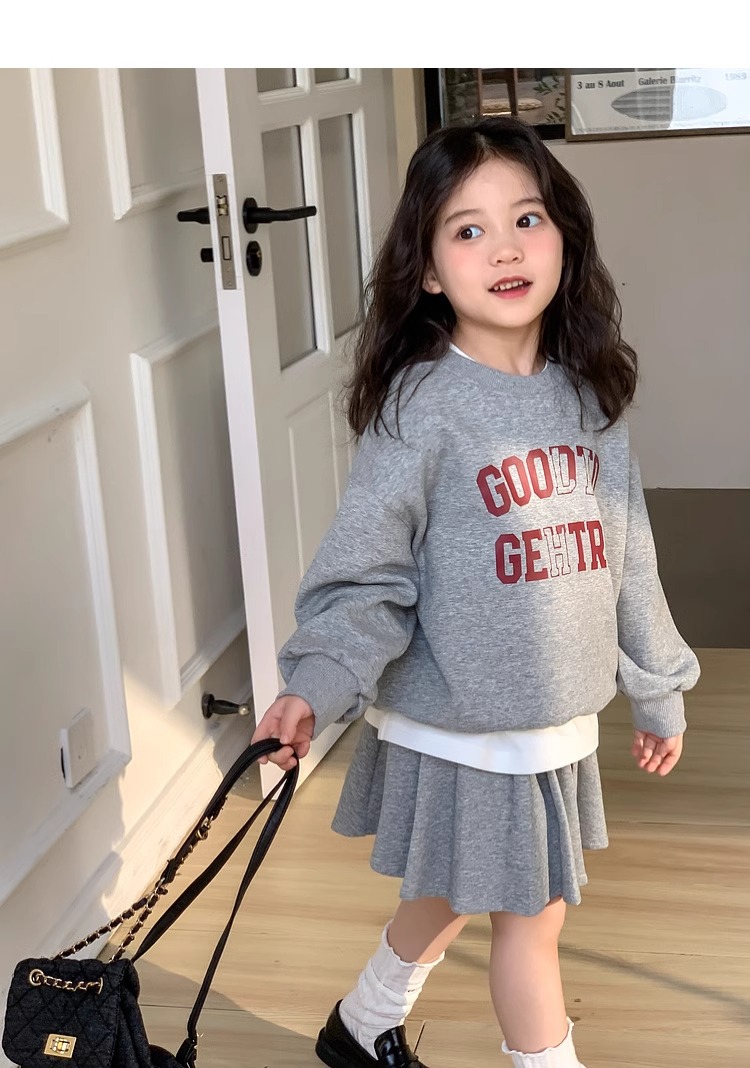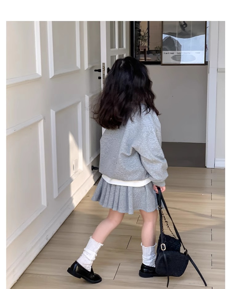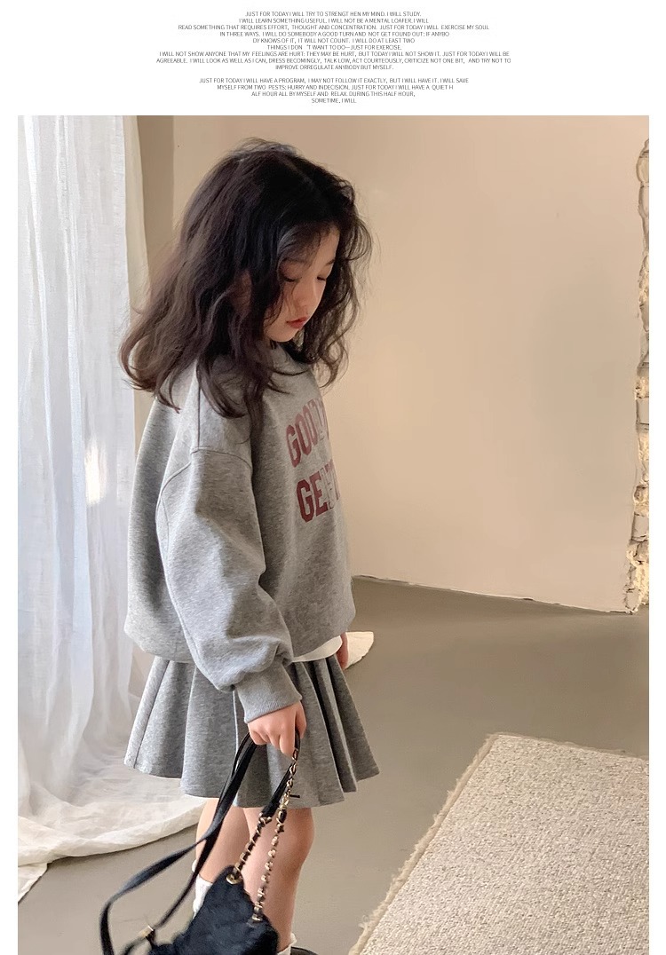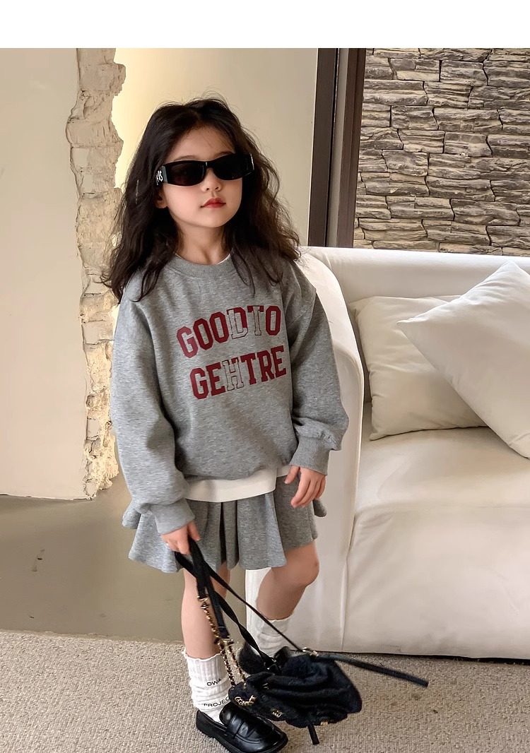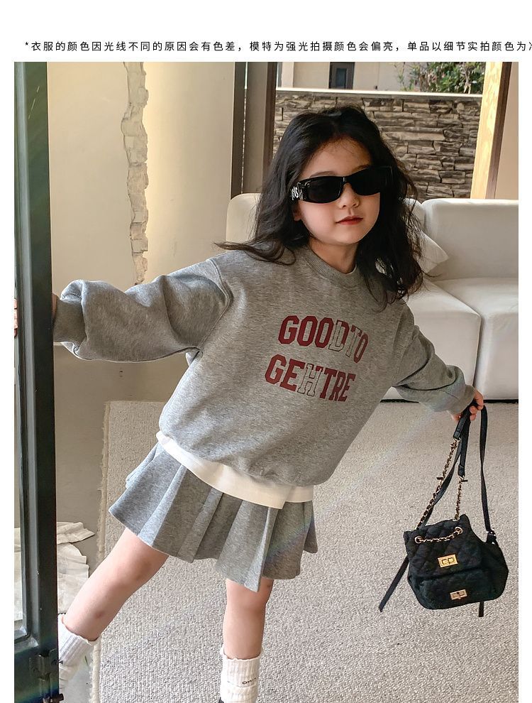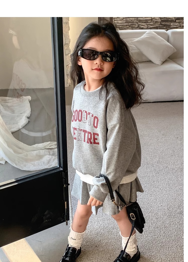 여자 정장 스커트 2025 봄과 가을 새로운 스타일 어린이 느슨한 스웨트 스커트 여자 큰 어린이 스포츠 투피스 세트스토어 가기