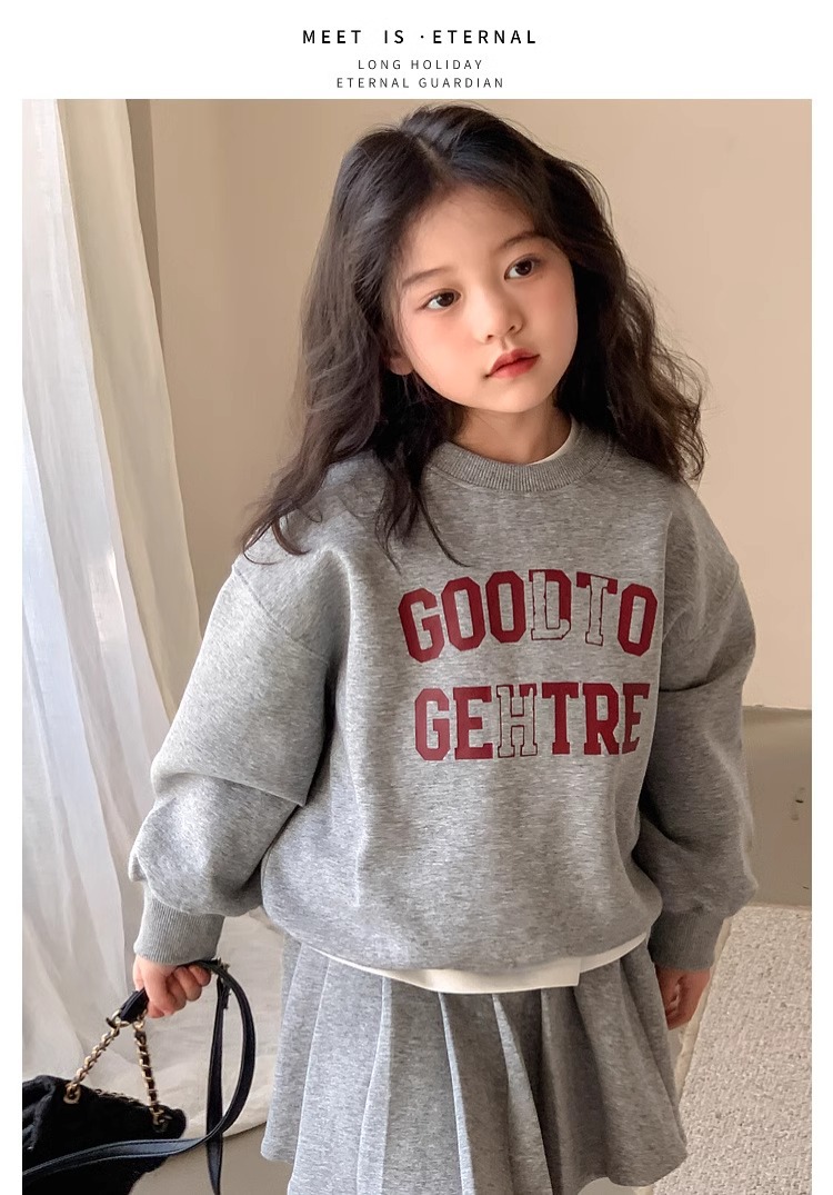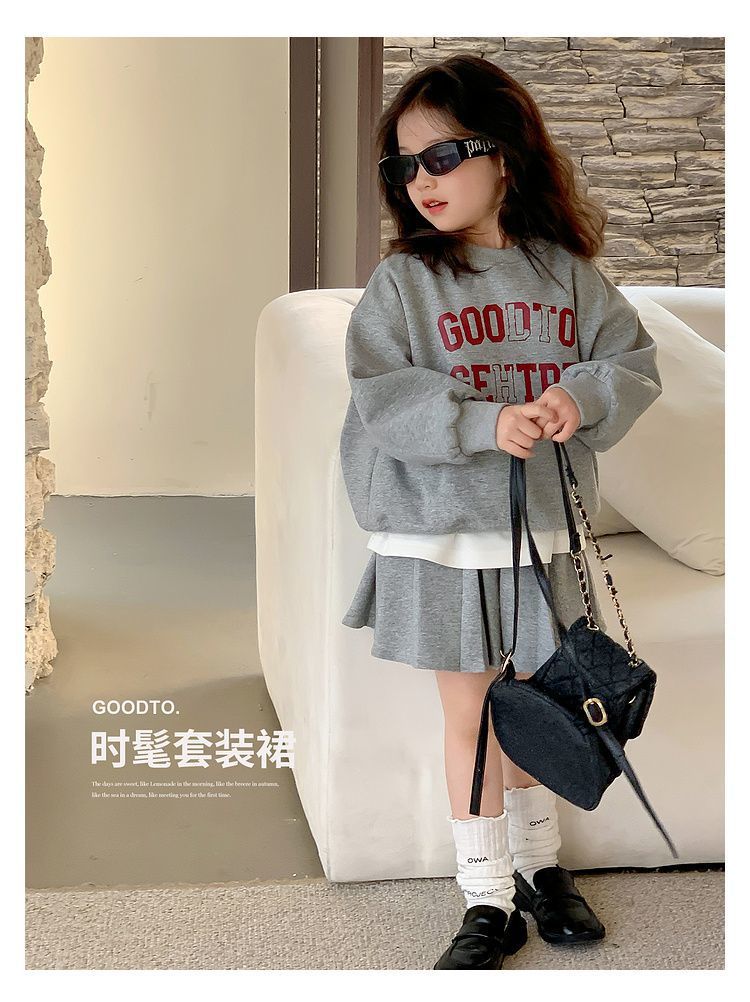 여자 정장 스커트 2025 봄과 가을 새로운 스타일 어린이 느슨한 스웨트 스커트 여자 큰 어린이 스포츠 투피스 세트