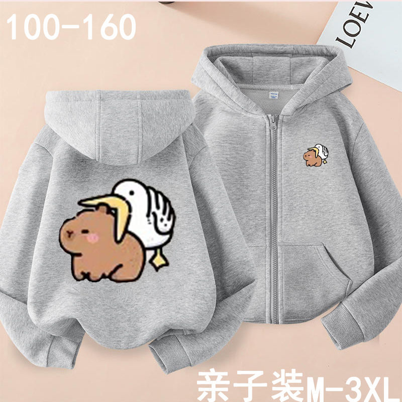 소녀 귀여운 카피 바라 모녀 코트 가을과 겨울 카디건 코트 만화 지퍼 후드 스웨터스토어 가기