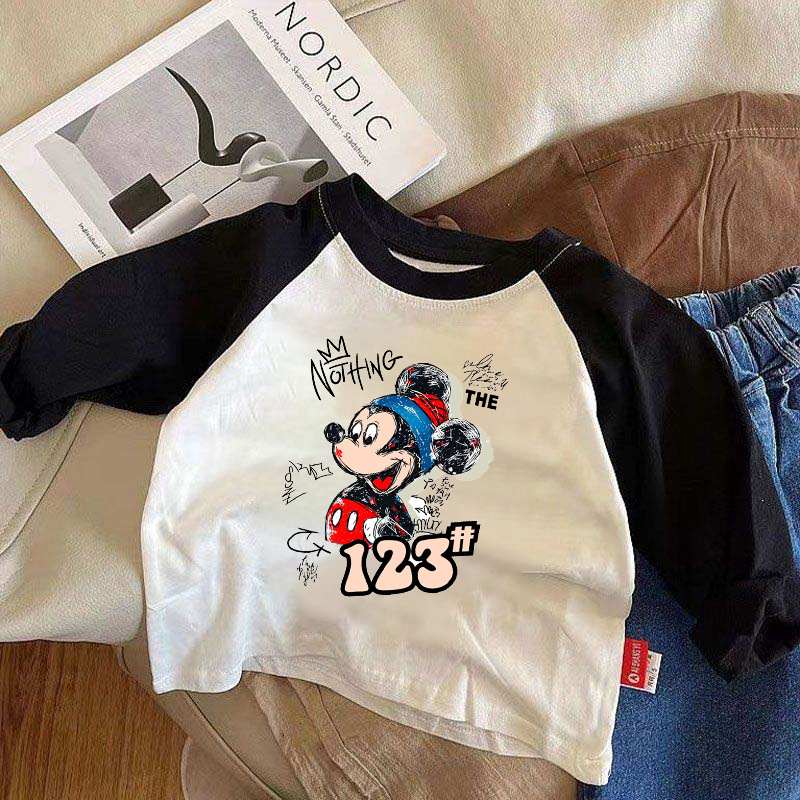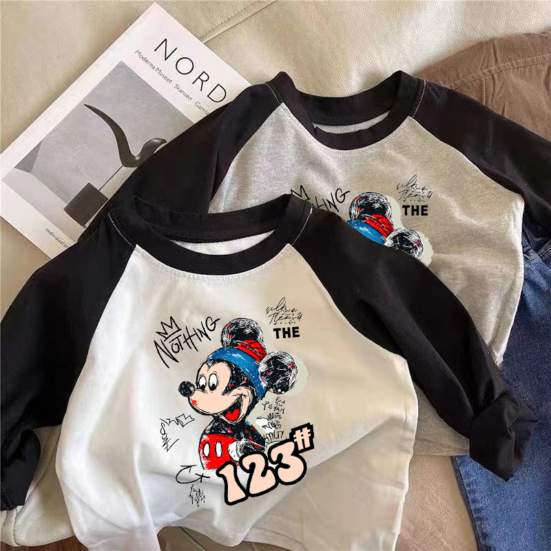 면 어린이 긴팔 티셔츠 봄과 가을 새로운 소년과 소녀 만화 미키 크루 넥 풀오버 아기 탑베이스 셔츠 T스토어 가기