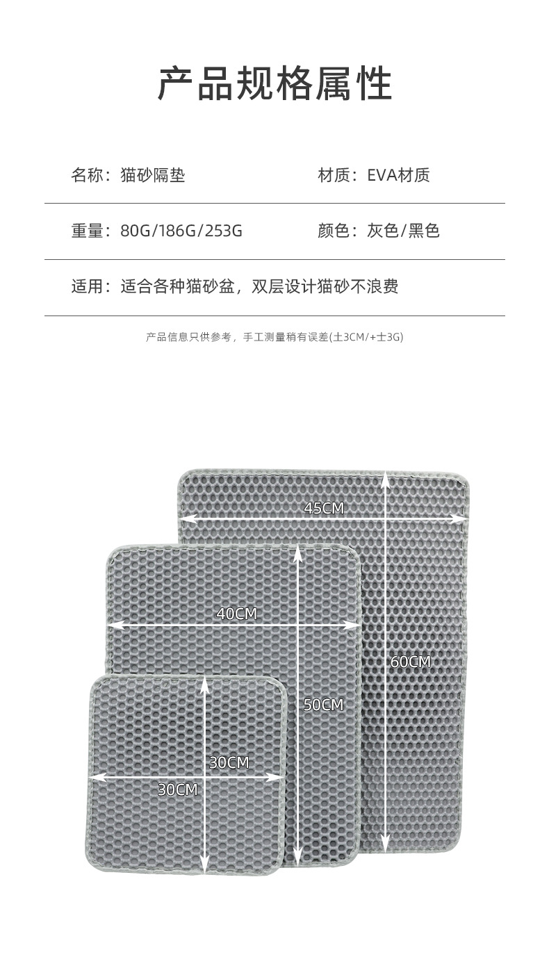 고양이 쓰레기 매트 오버 사이즈 더블 레이어 필터 안티 테이크 아웃 고양이 쓰레기 상자 안티 스플래시 모래 제어 매트 특수 모양의 맞춤형 재고 도매스토어 가기