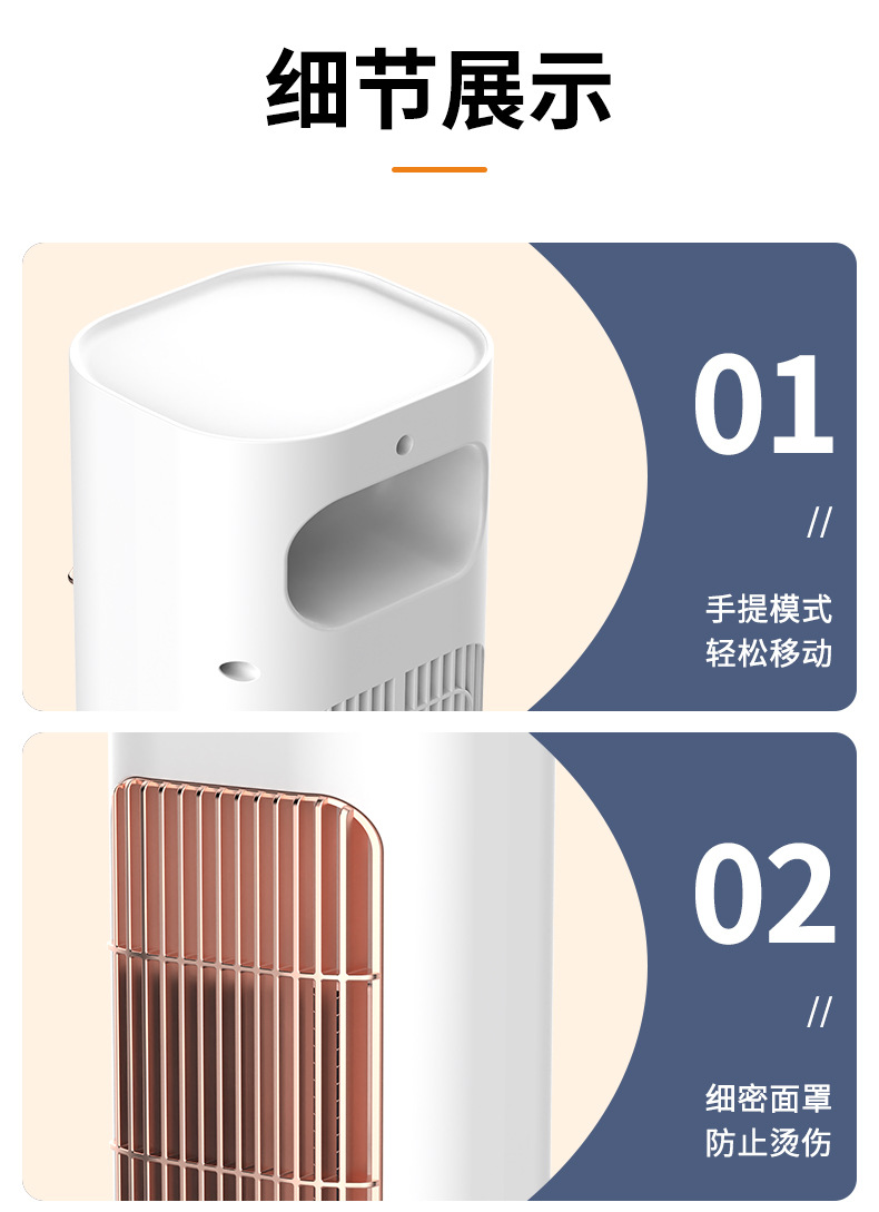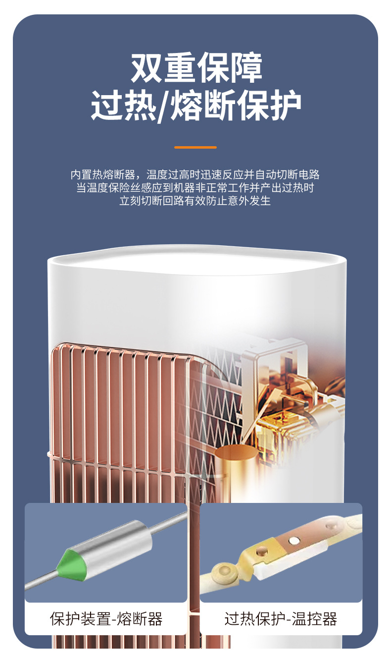 4、安全有保障=PTC陶瓷发热+熔断保护+超热保护+倾倒断电