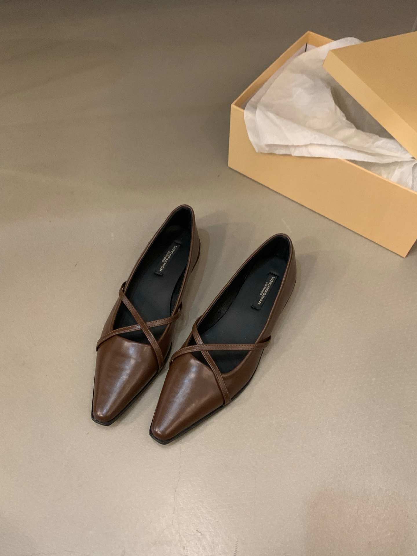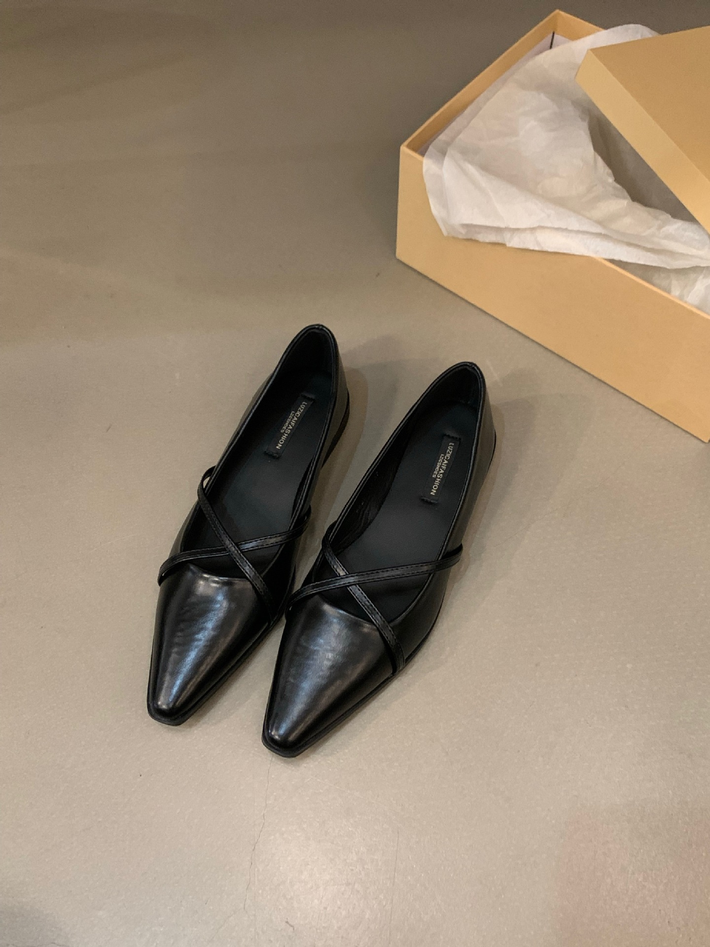 낮은 뒤꿈치 뾰족한 검은 싱글 신발 여성 신발 2024 새로운 여름 평면 프랑스 봄과 가을 메리 제인 작은 가죽 신발스토어 가기