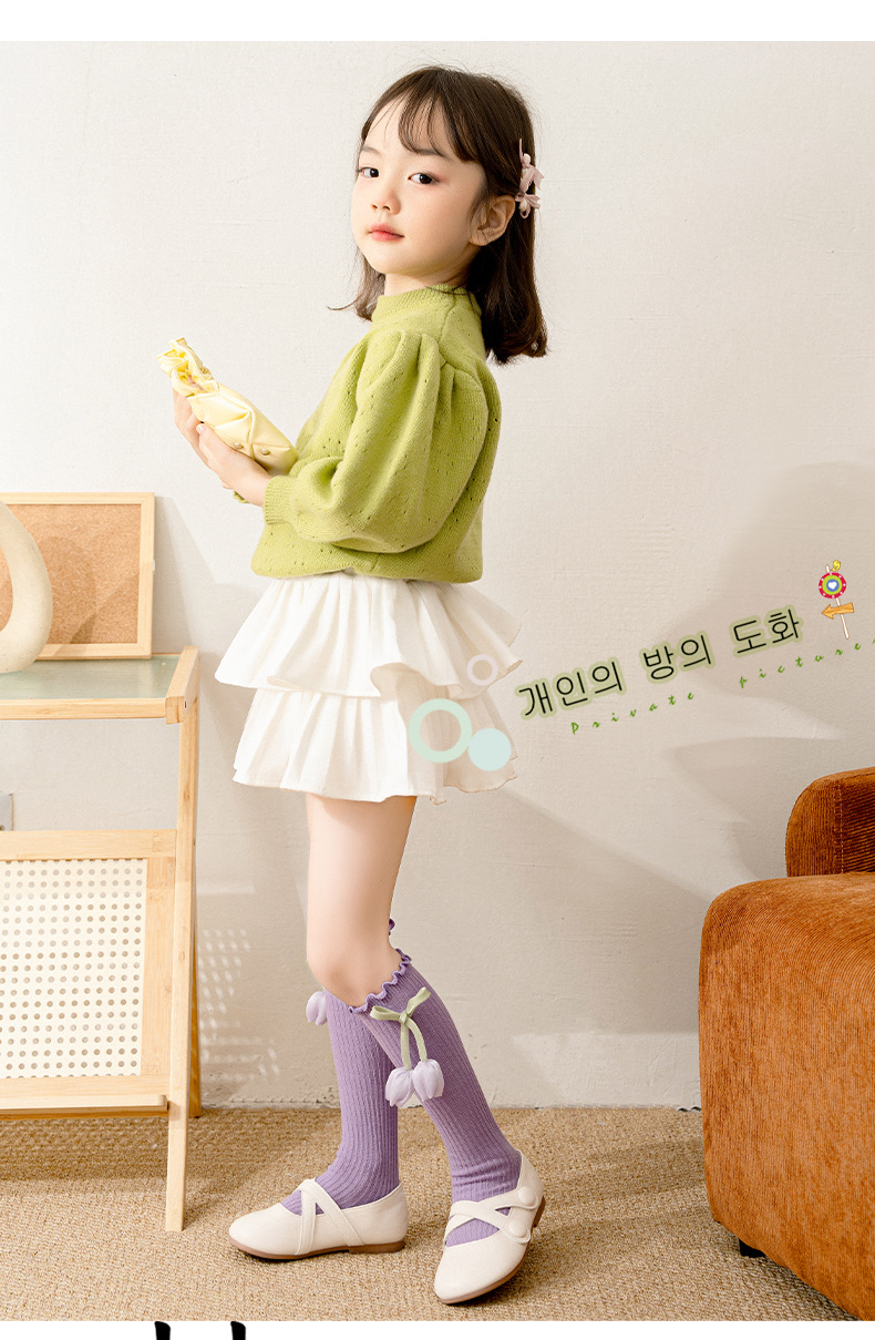 가을 뉴 INS 영국 스타일 더블 니들 그린 튤립 미디엄 스타킹 아기 아기 프린세스 스타킹스토어 가기