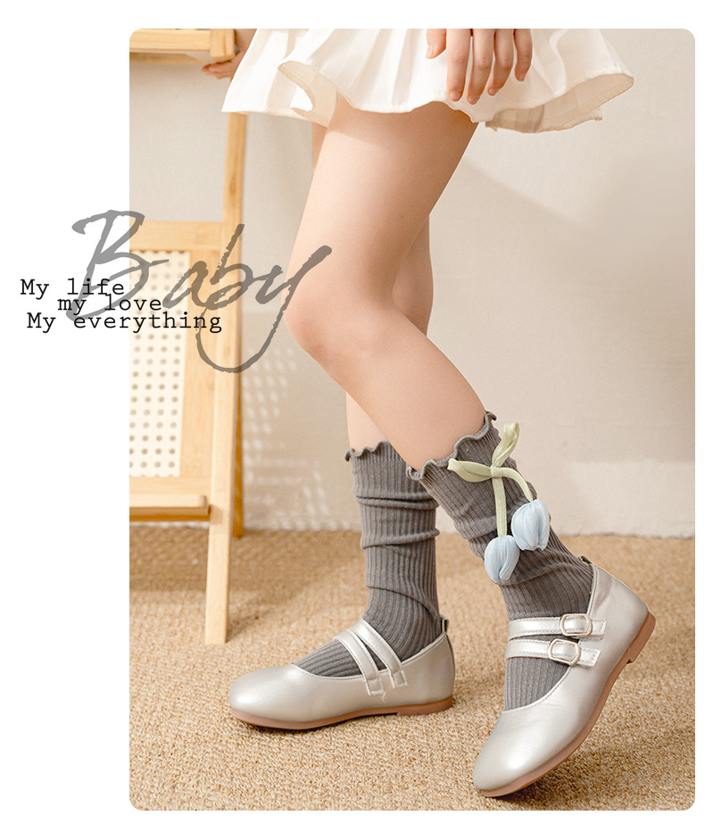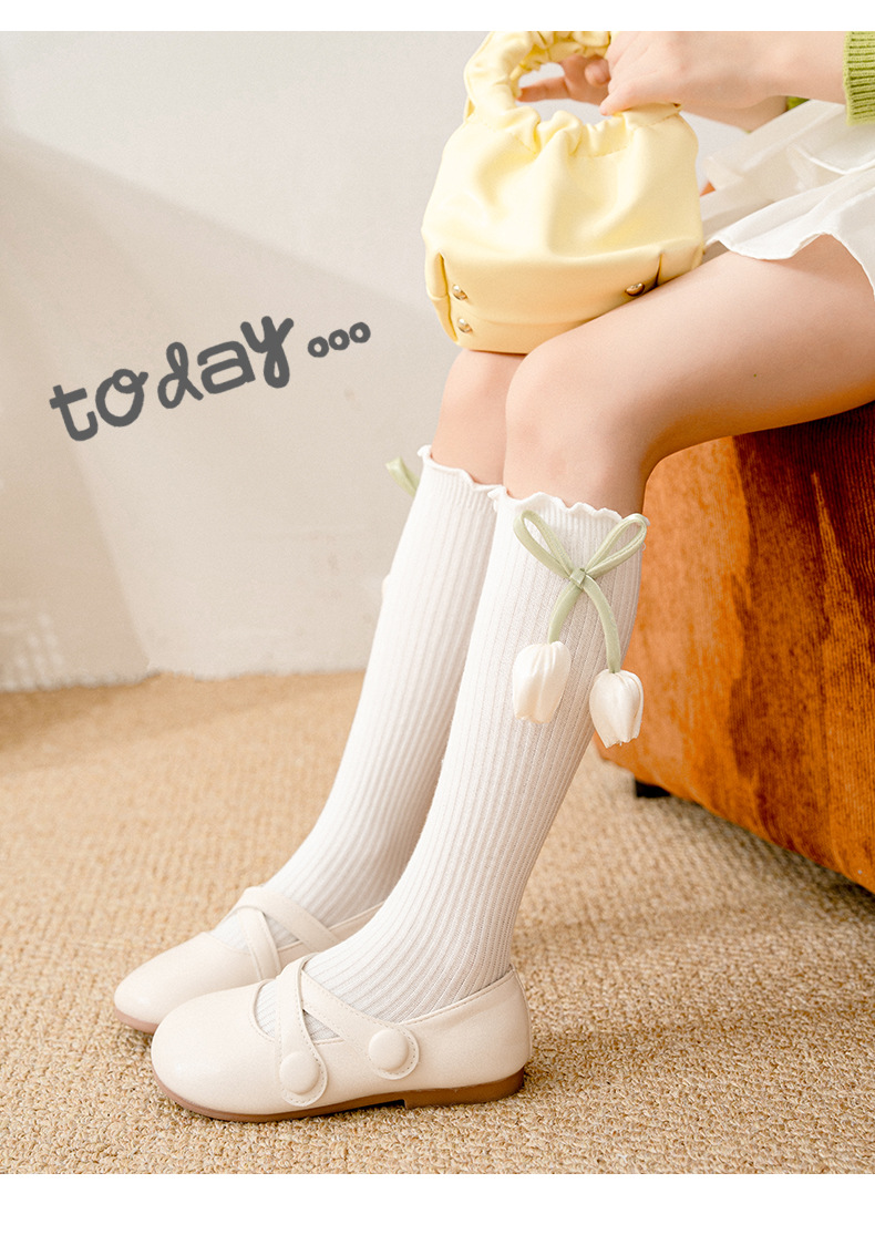 가을 뉴 INS 영국 스타일 더블 니들 그린 튤립 미디엄 스타킹 아기 아기 프린세스 스타킹