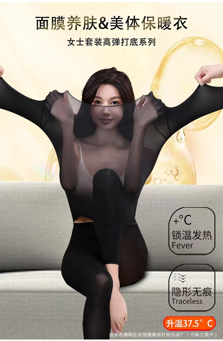 초박형 열 속옷 여성의 보이지 않는 가을 옷과 바지 37 도 일정한 온도 난방 내부 근육 바닥 마스크 피부 미용 옷 세트스토어 가기