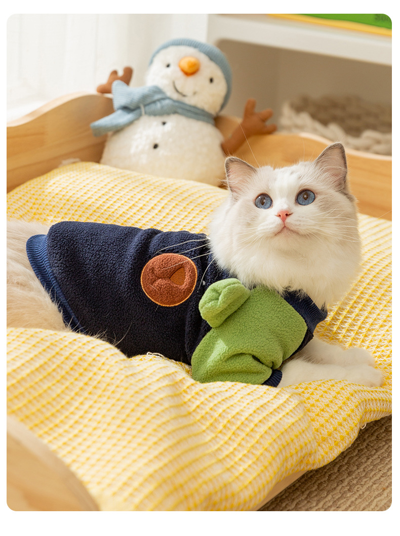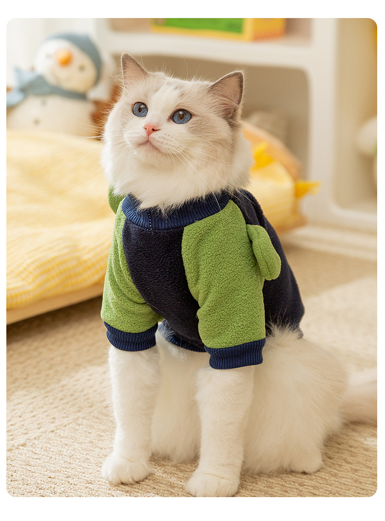가을과 겨울 대비 색상 곰 견인 두 다리 양털 파란 고양이 털이없는 고양이 패딩 따뜻한 겨울 애완 동물 옷