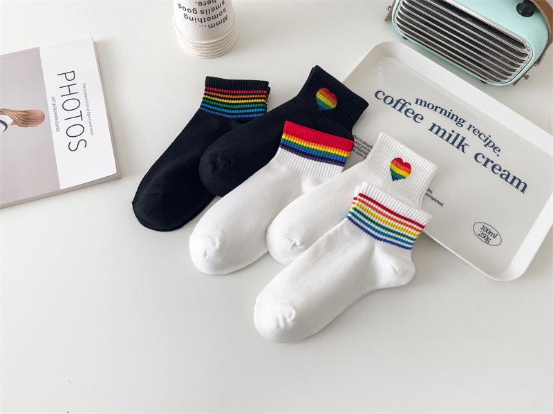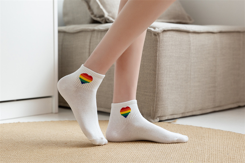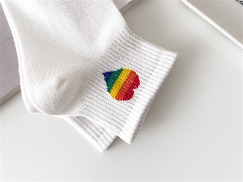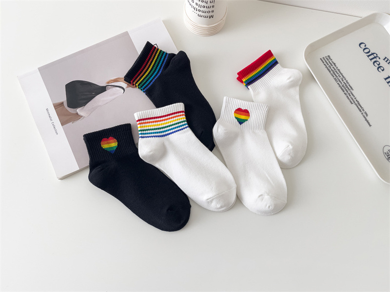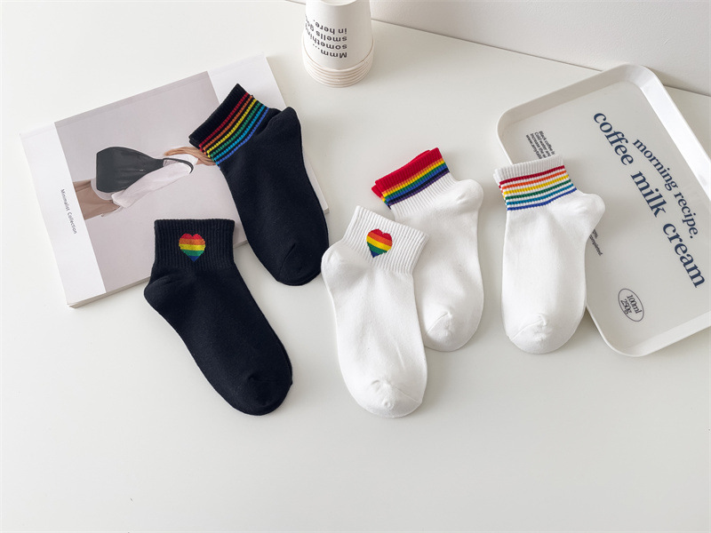 면 양말 여성 양말 봄과 가을 흰색 무지개 낮은면 보트 양말 통기성 땀 흡수성 여성 양말 도매
