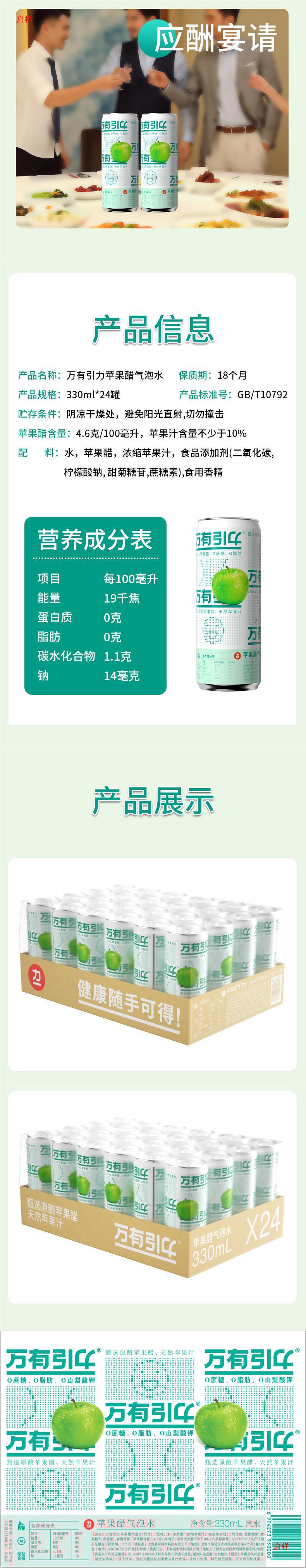 보편적 인 중력 사과 식초 거품 물 0 지방 음료 집중 사과 주스 전체 케이스 330ml/24 병 전체 케이스스토어 가기