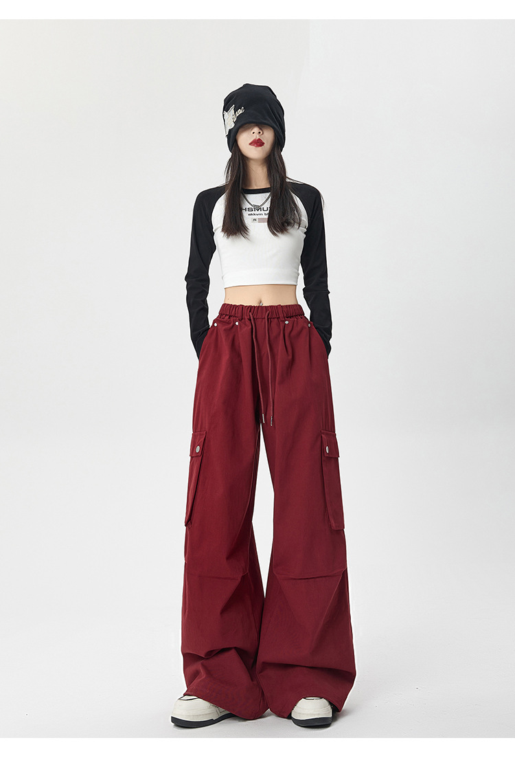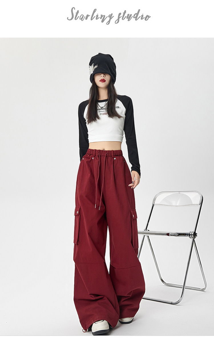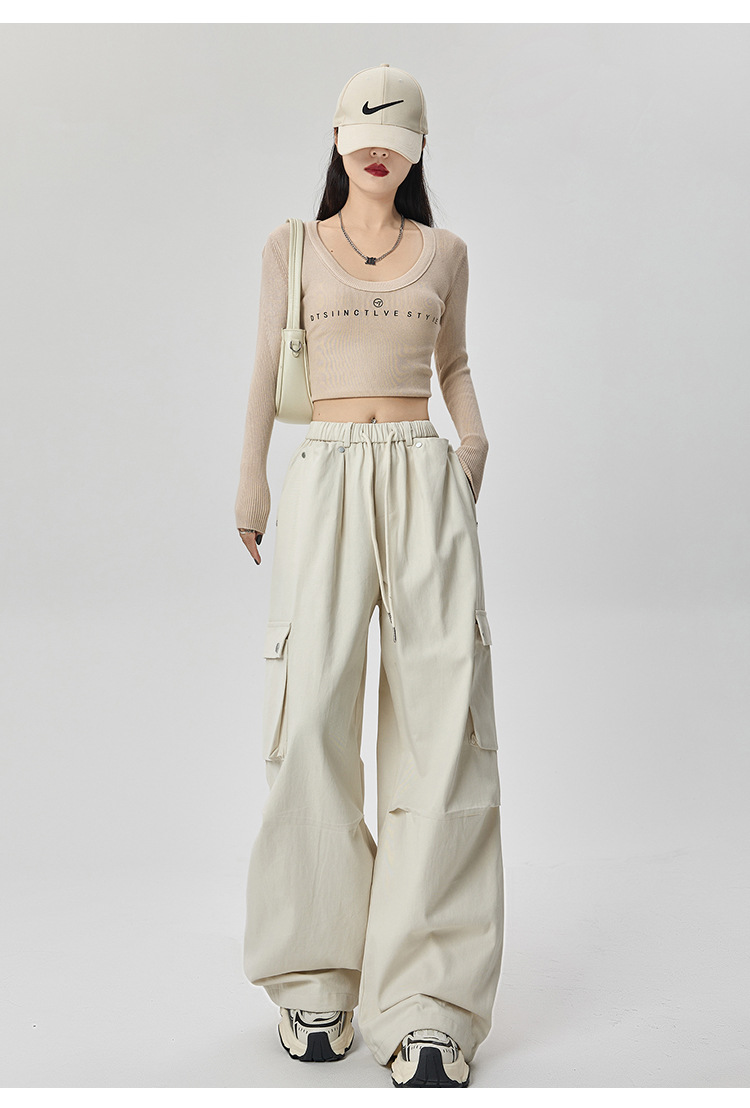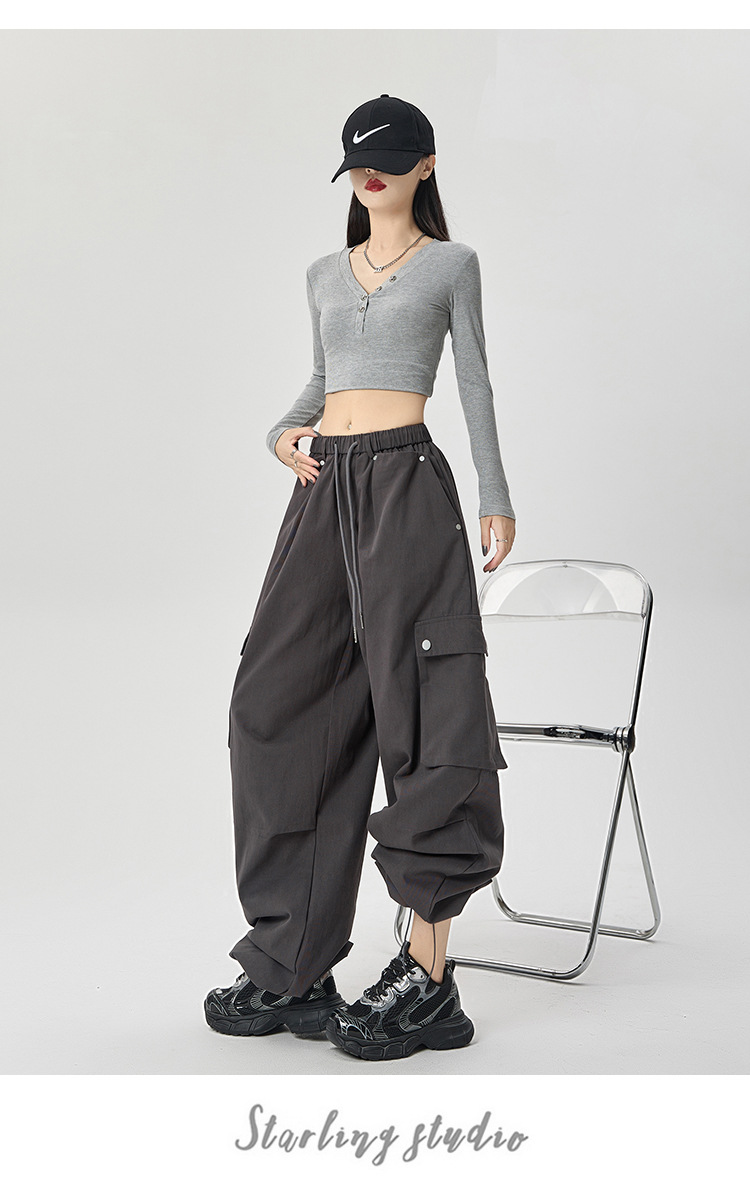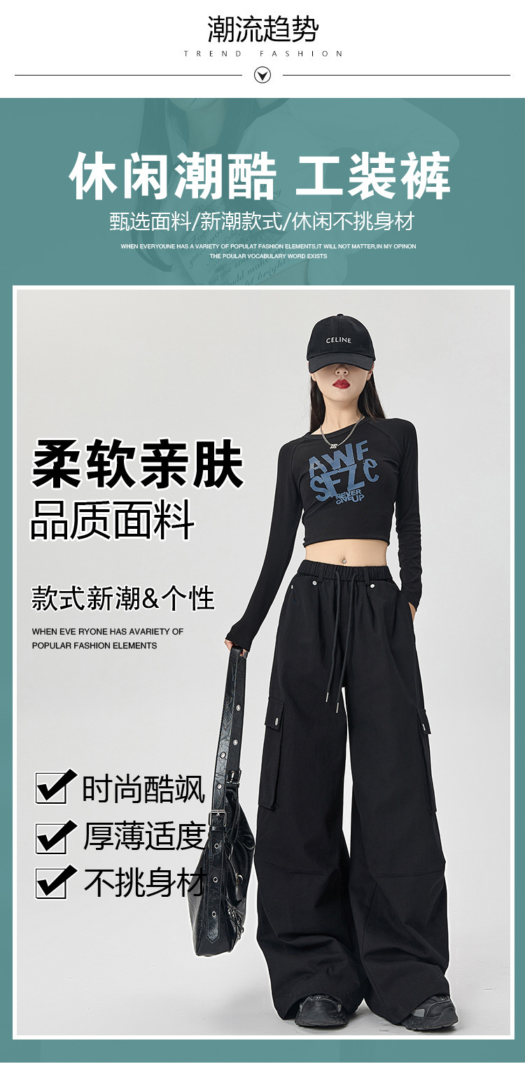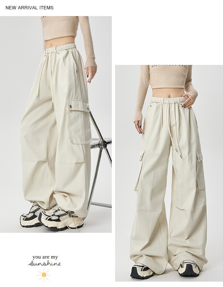 2025 미국 레트로 스타일 루즈핏 캐주얼 작업복 바지 여성용 봄 가을 신상 핫걸 스트레이트 와이드 레그 등산 바지스토어 가기