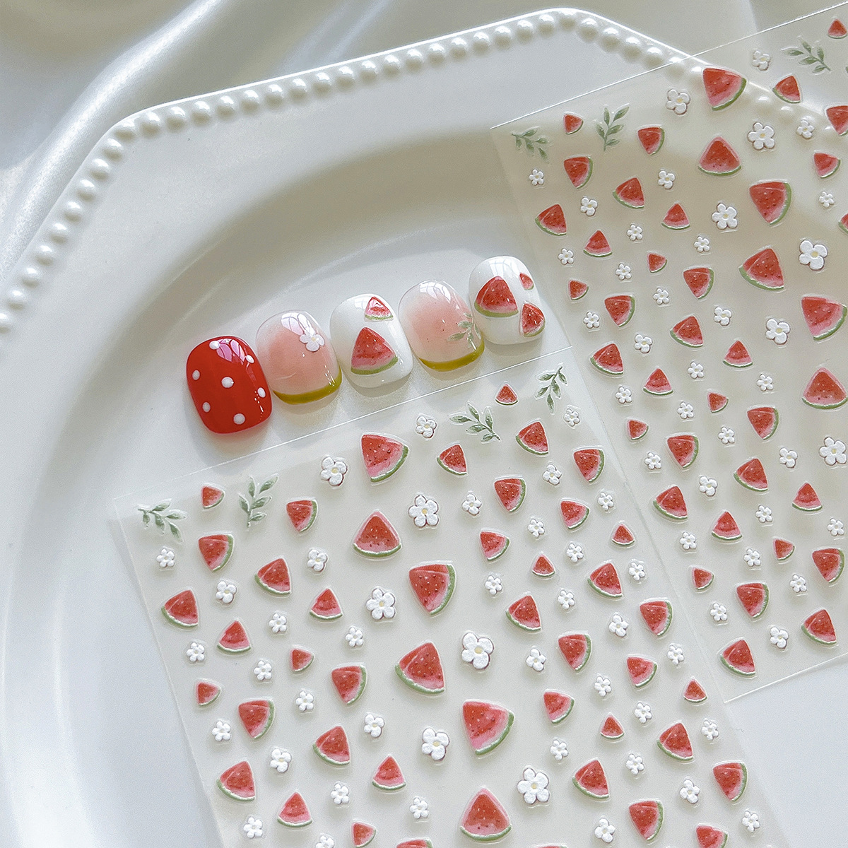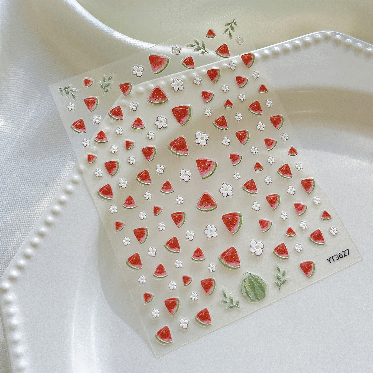 녹색 수박 네일 아트 스티커 작은 신선한 슈퍼 귀여운 아름다운 바람 작은 흰색 꽃 릴리프 네일 다시 접착 스티커 도매스토어 가기