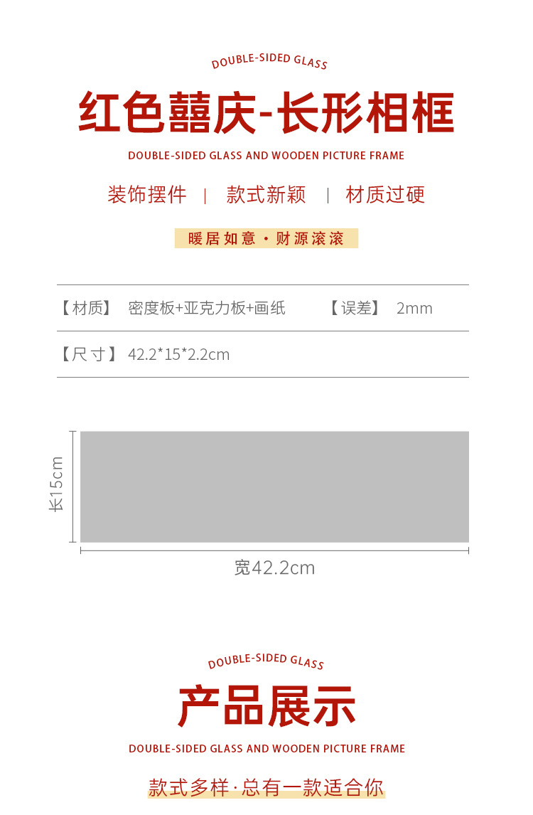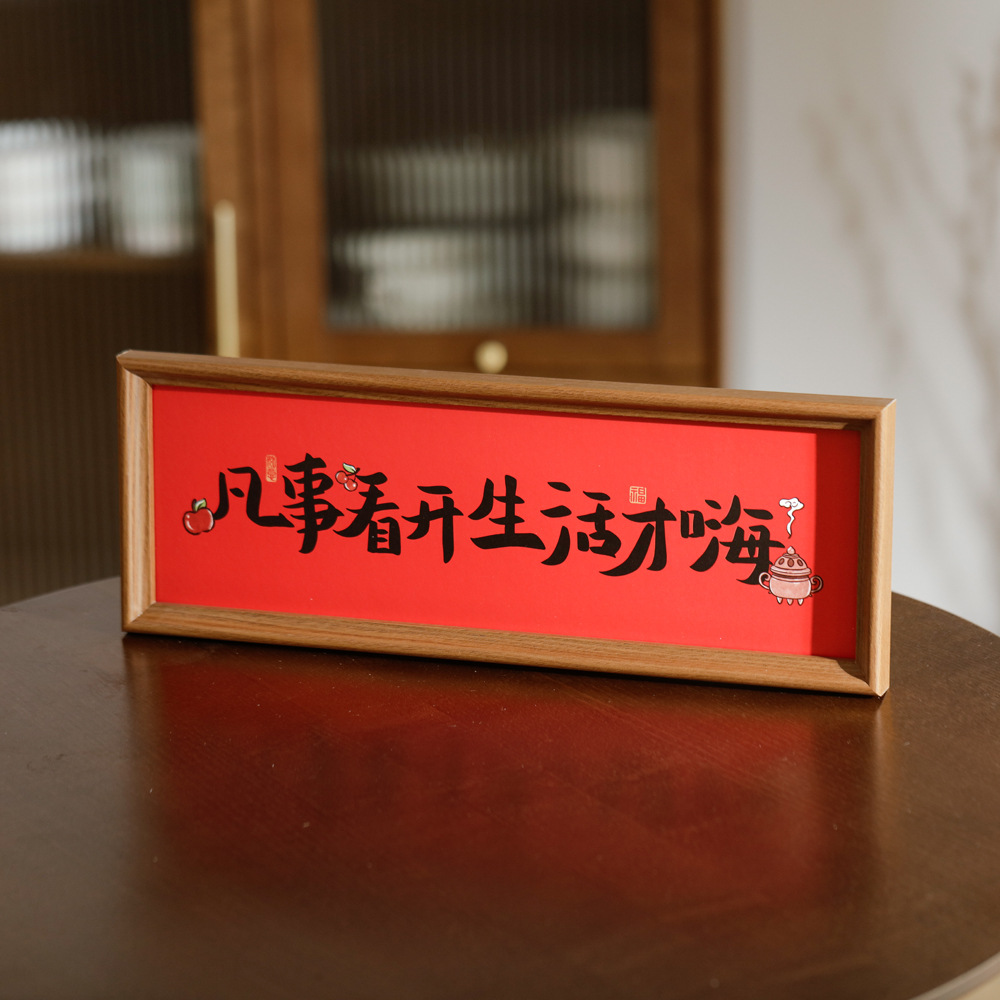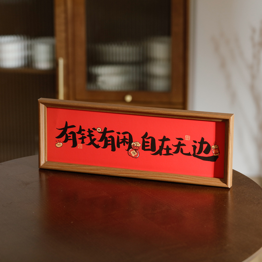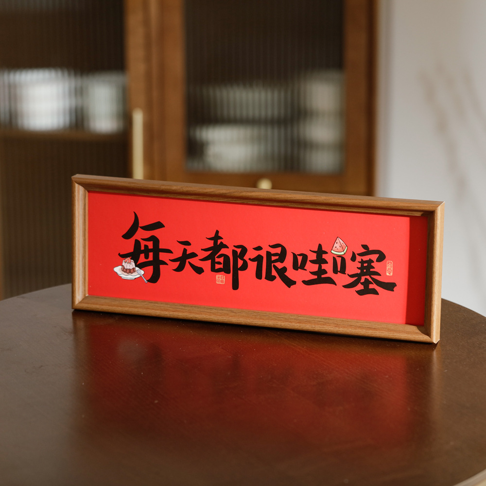붉은 축제 서예 축복 텍스트 프레임 세트 테이블 결혼식 집들이 새로운 가정 장식 데스크탑 장식품 집스토어 가기