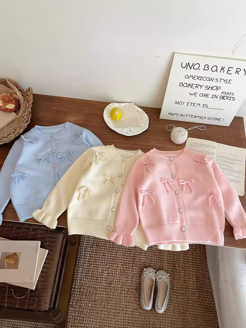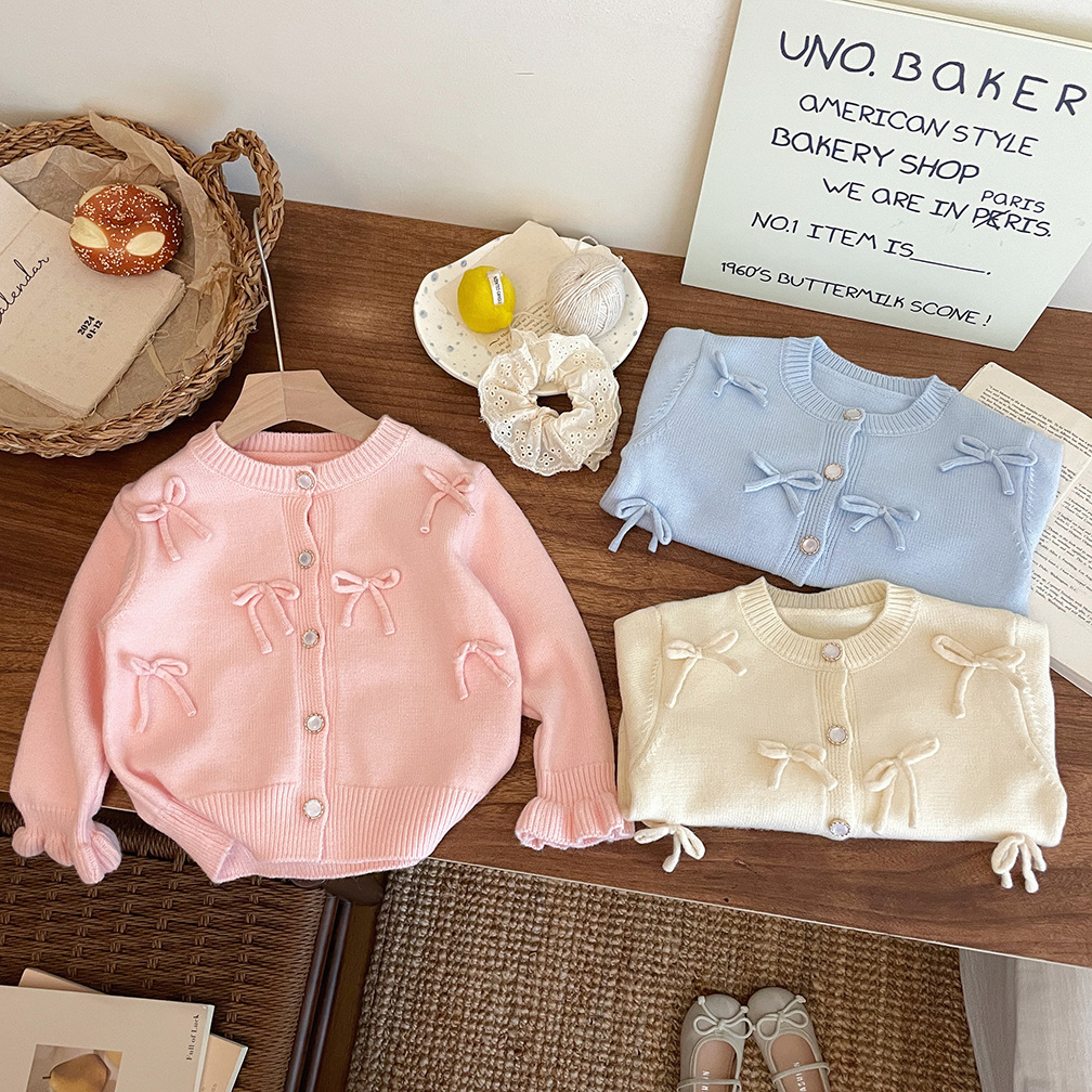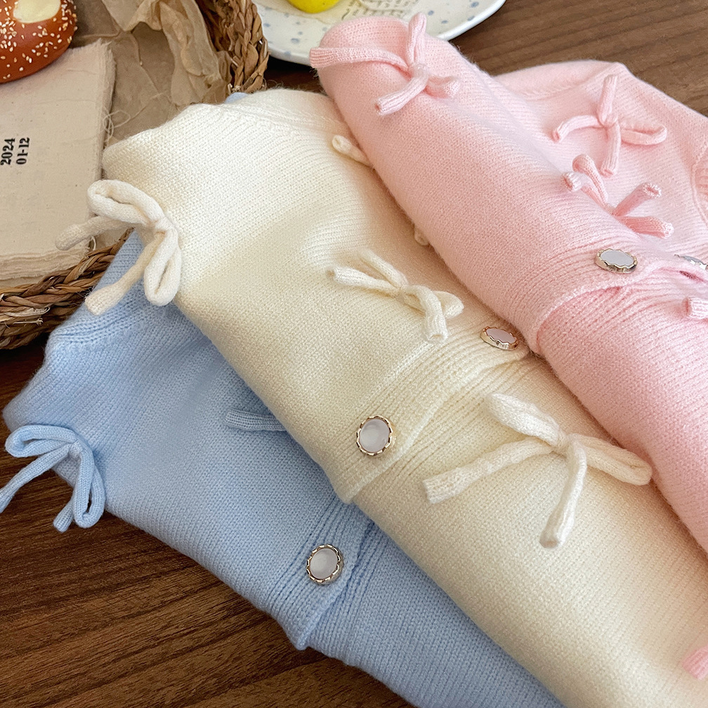 2026 가을 겨울 신상 여아 리본 니트 가디건 스웨터 재킷 귀여운 아기 달콤한 상의 한국 스타일 트렌드