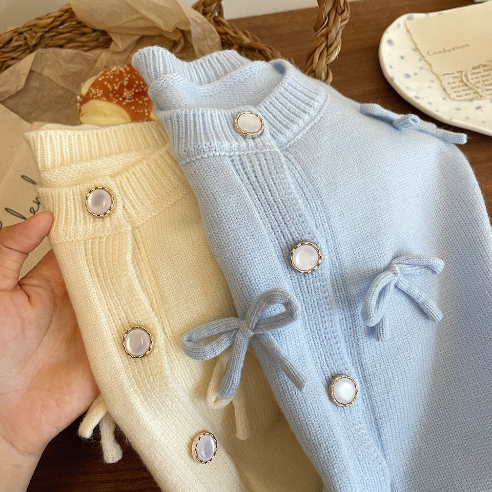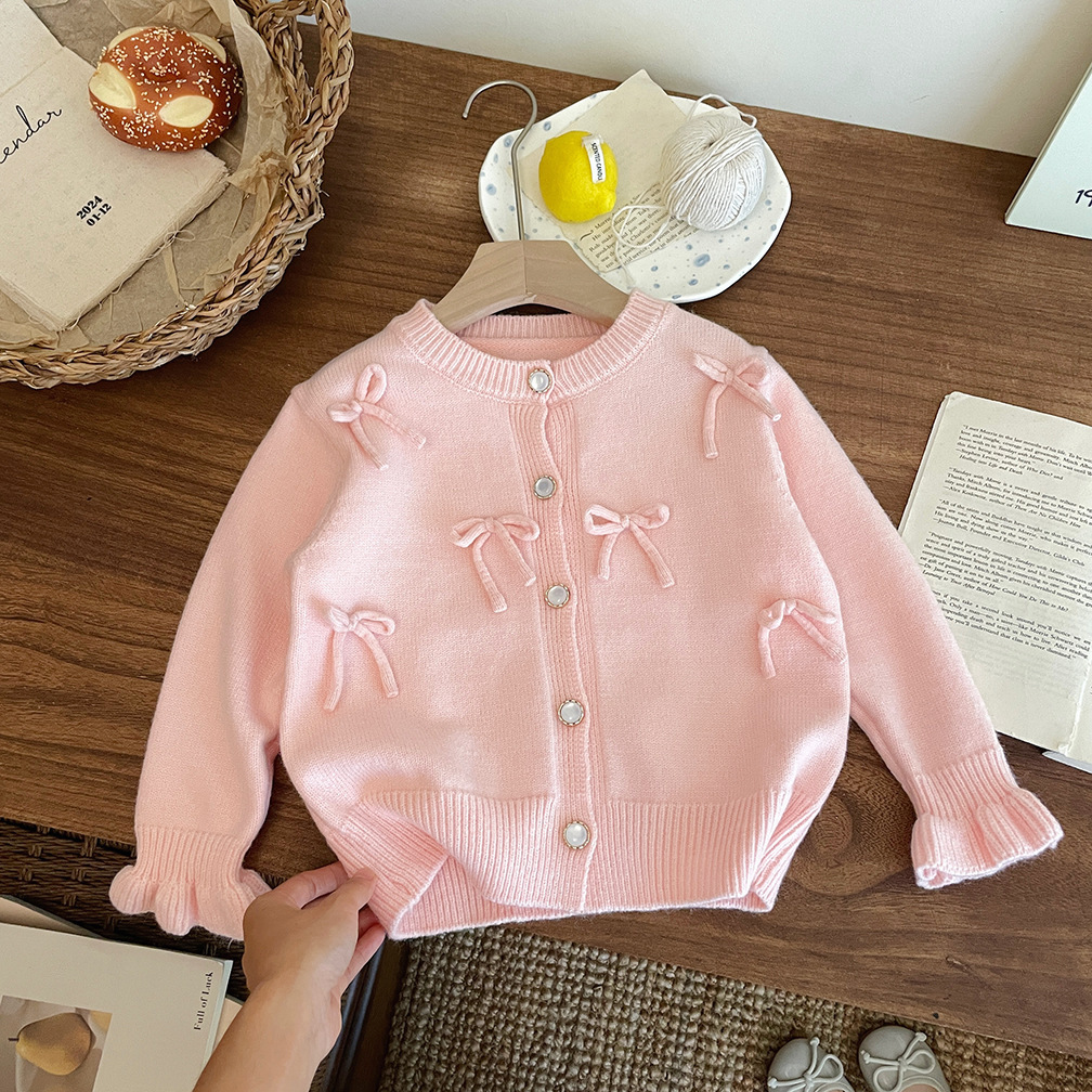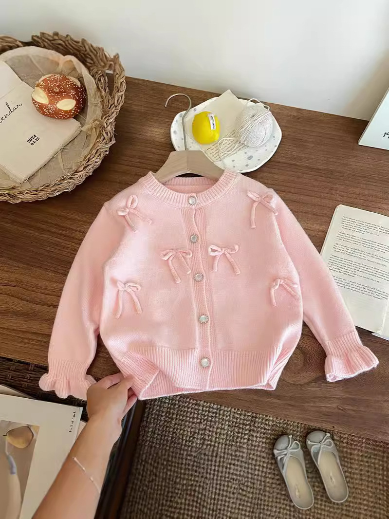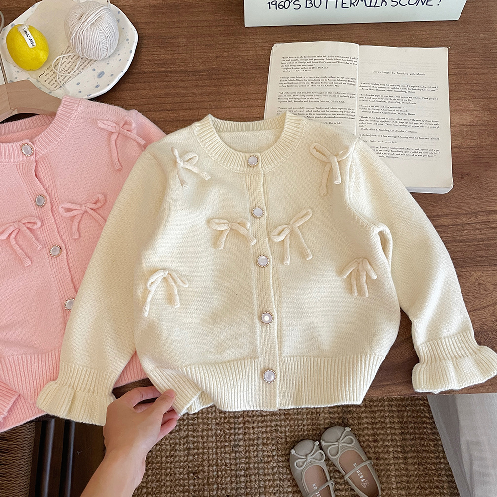 2026 가을 겨울 신상 여아 리본 니트 가디건 스웨터 재킷 귀여운 아기 달콤한 상의 한국 스타일 트렌드