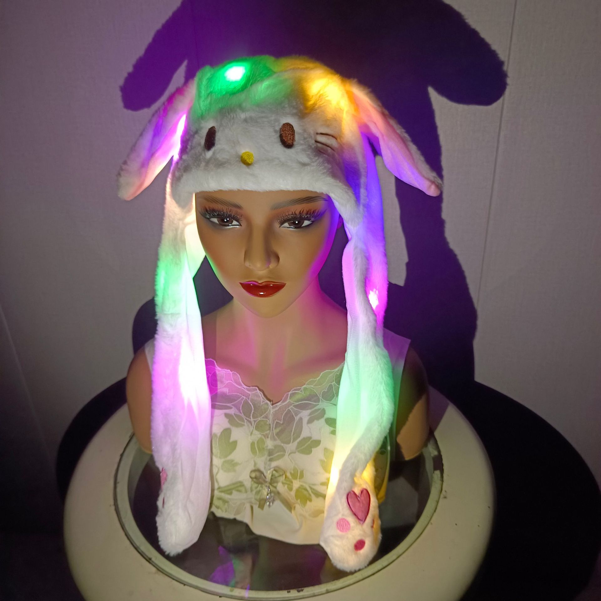 귀가 움직일 수 있는 크로스보더 산리오 빛나는 토끼 모자 어린이 장난감 만화 조명 할로윈 모자
