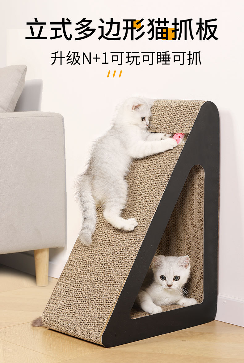 고양이 스크래치 보드 수직 삼각형 고양이 스크래치 둥지 고양이 발톱 보드 수직 삼각형 골판지 종이 소재 내마모성 고양이 장난감스토어 가기