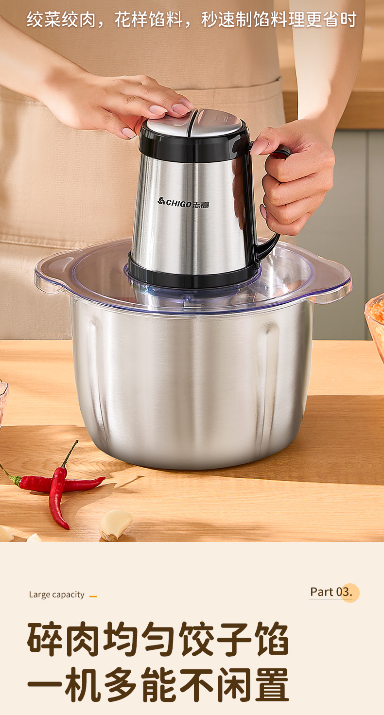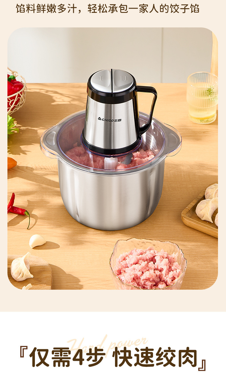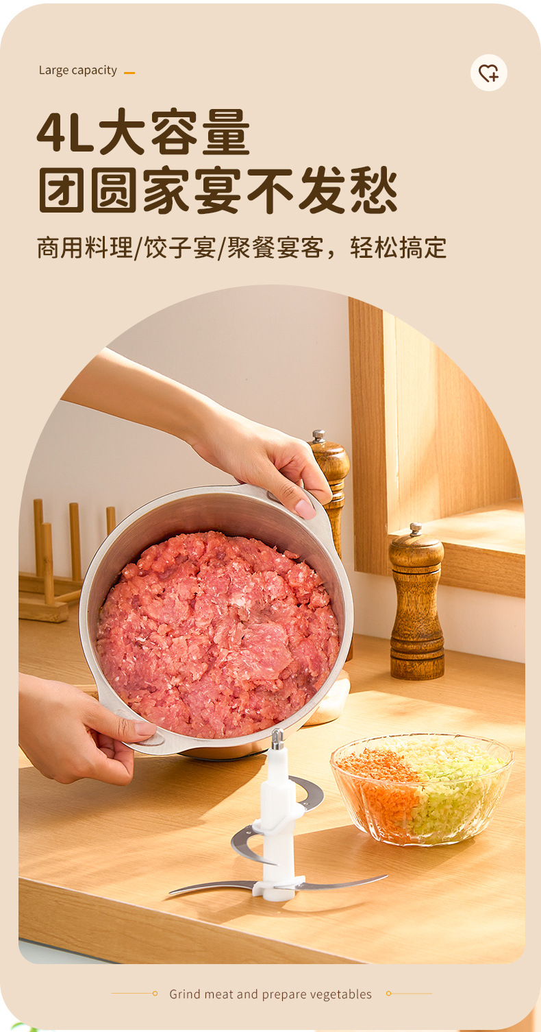 치고 상업용 고기 분쇄기 4L 대용량 다기능 전기 가정용 다진 고기 요리 칠리 머리카락 세대스토어 가기