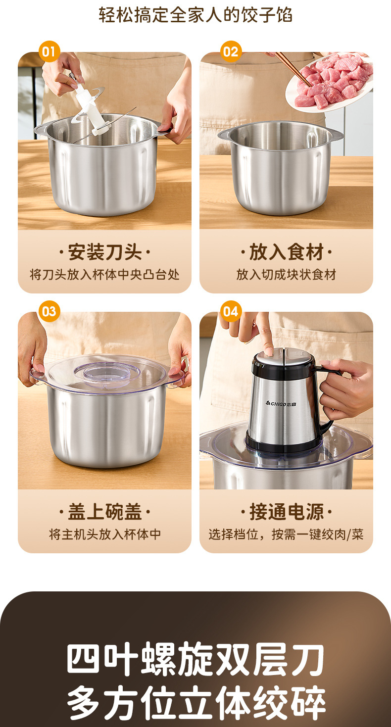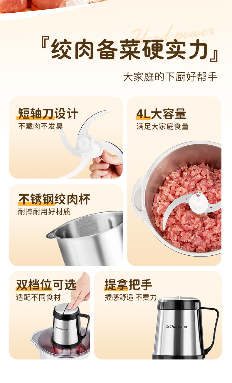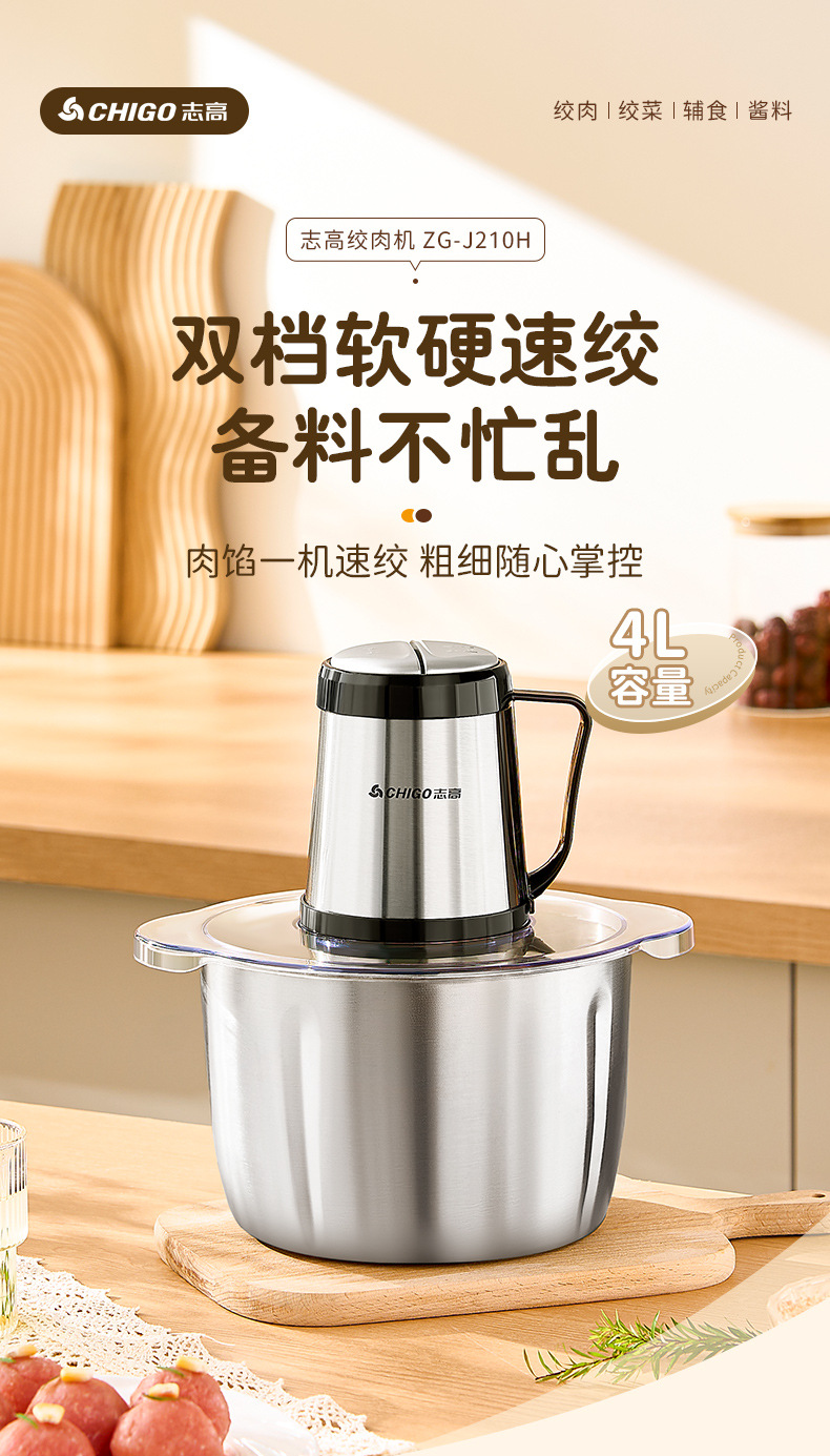 치고 상업용 고기 분쇄기 4L 대용량 다기능 전기 가정용 다진 고기 요리 칠리 머리카락 세대스토어 가기
