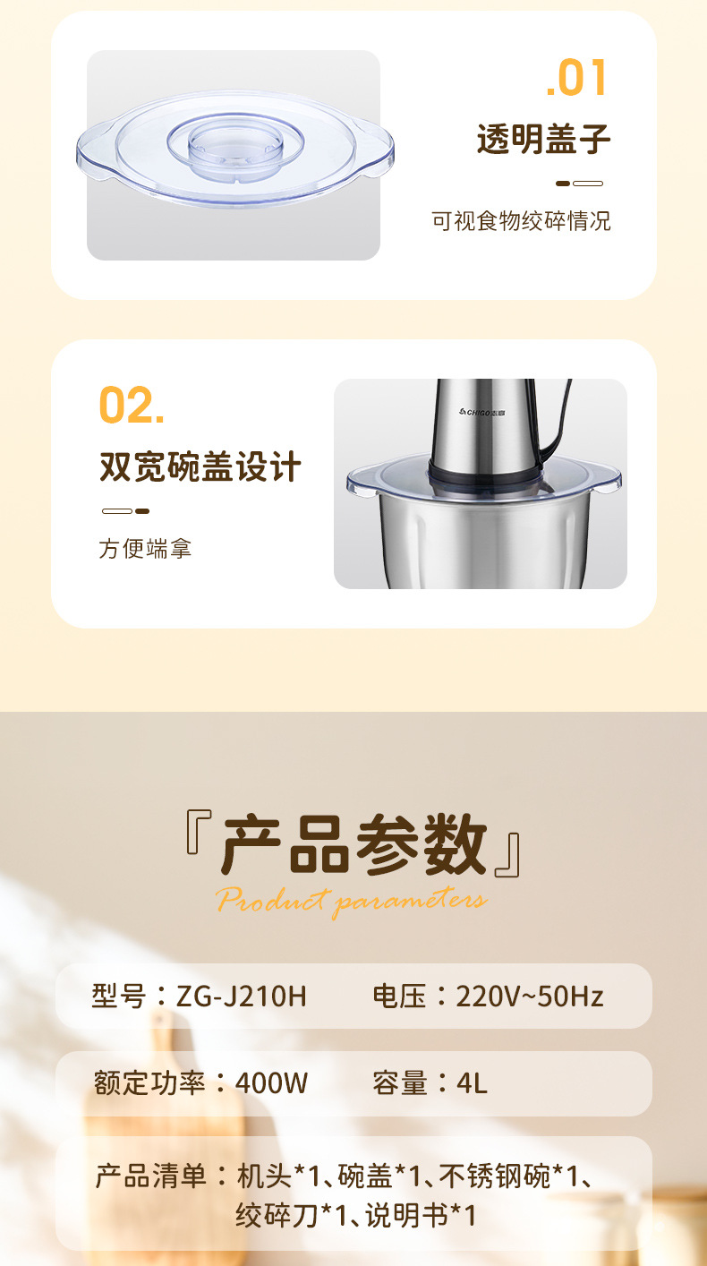 치고 상업용 고기 분쇄기 4L 대용량 다기능 전기 가정용 다진 고기 요리 칠리 머리카락 세대