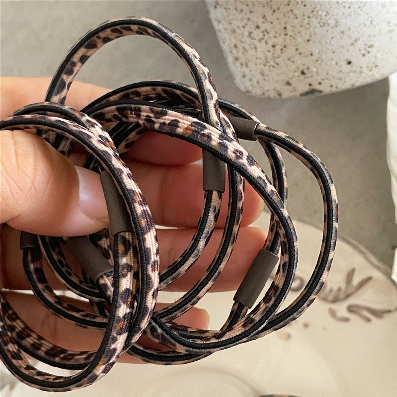 패션 우아한 레오파드 무늬 헤어 루프 높은 탄성 더블 타이 헤어 로프 매일 기본 포니 테일 고무 텐더 뉴스토어 가기
