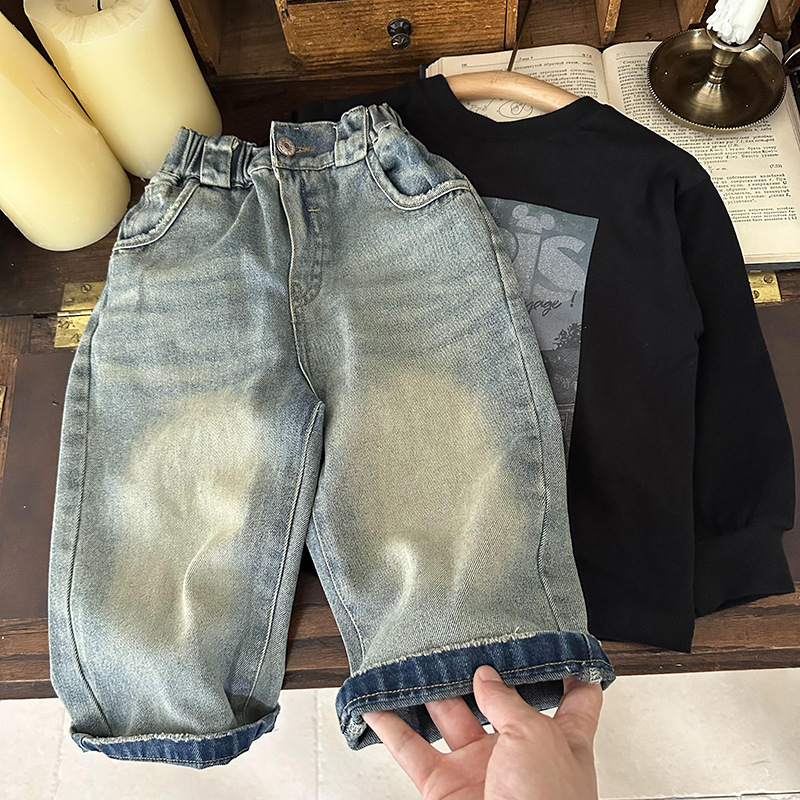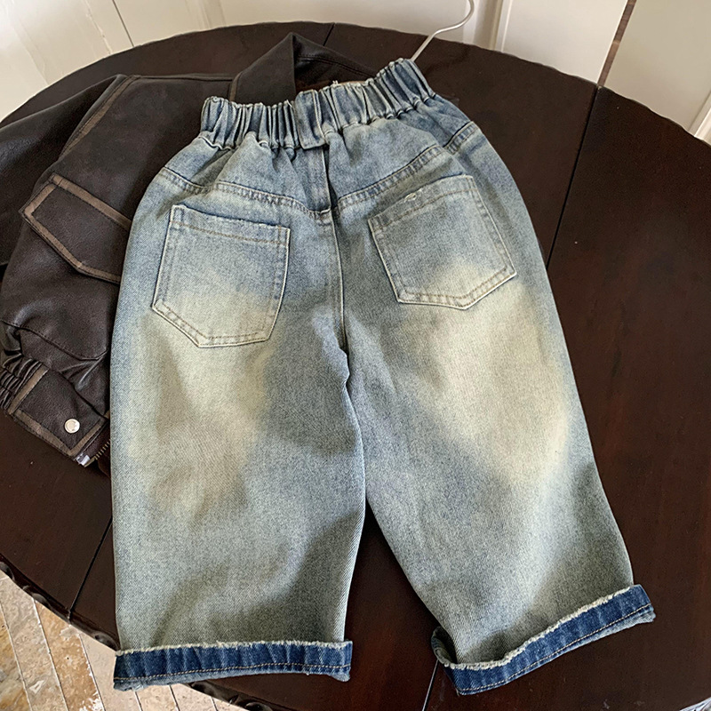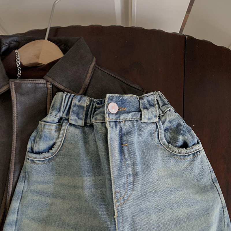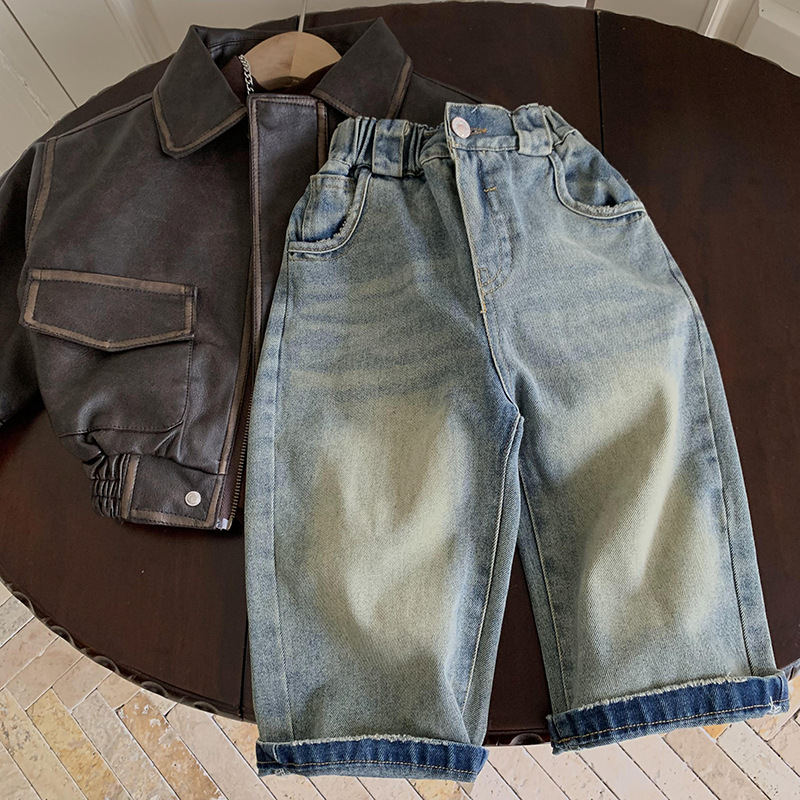 남아용 청바지 2025 아동용 다용도 봄, 가을 의류 여아용 바지 중소형 아동용 스트레이트 와이드 레그 바닥 길이 바지스토어 가기