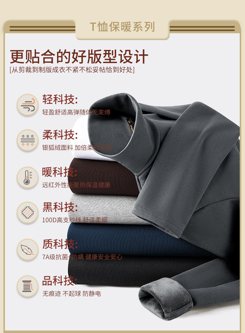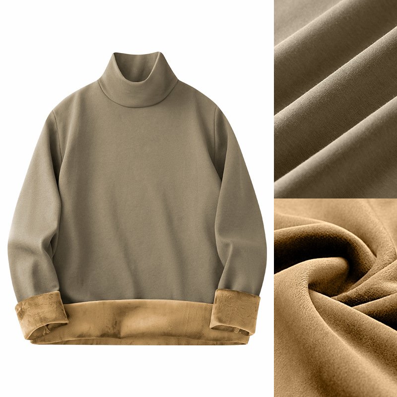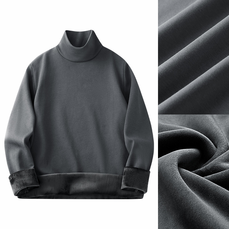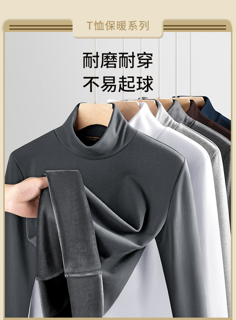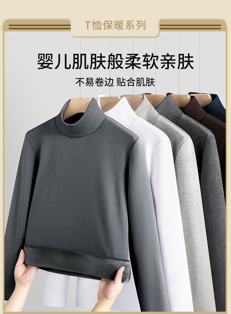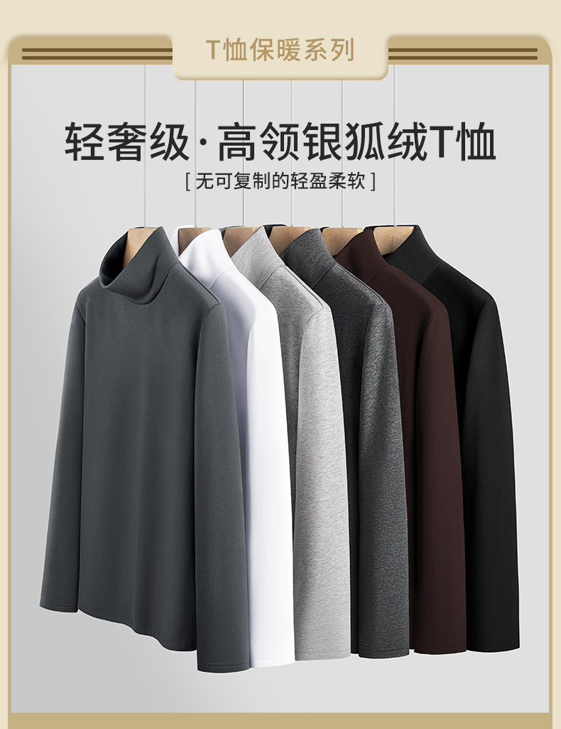 실버 폭스 벨벳 남성베이스 셔츠 절반 높이 칼라 가을과 겨울 기모 두꺼운 미드 칼라 긴팔 티셔츠 따뜻한 내복스토어 가기