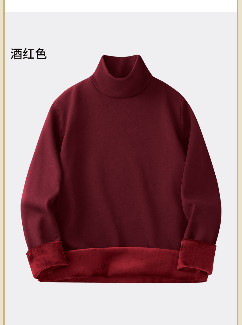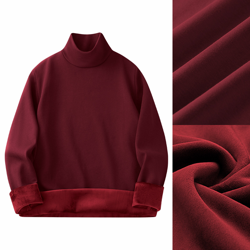 실버 폭스 벨벳 남성베이스 셔츠 절반 높이 칼라 가을과 겨울 기모 두꺼운 미드 칼라 긴팔 티셔츠 따뜻한 내복