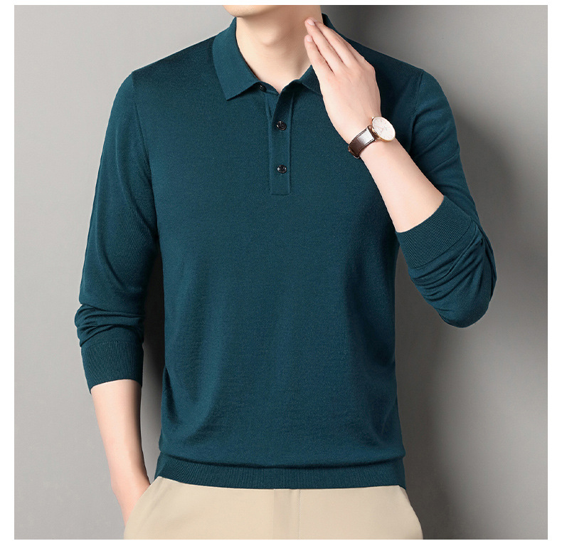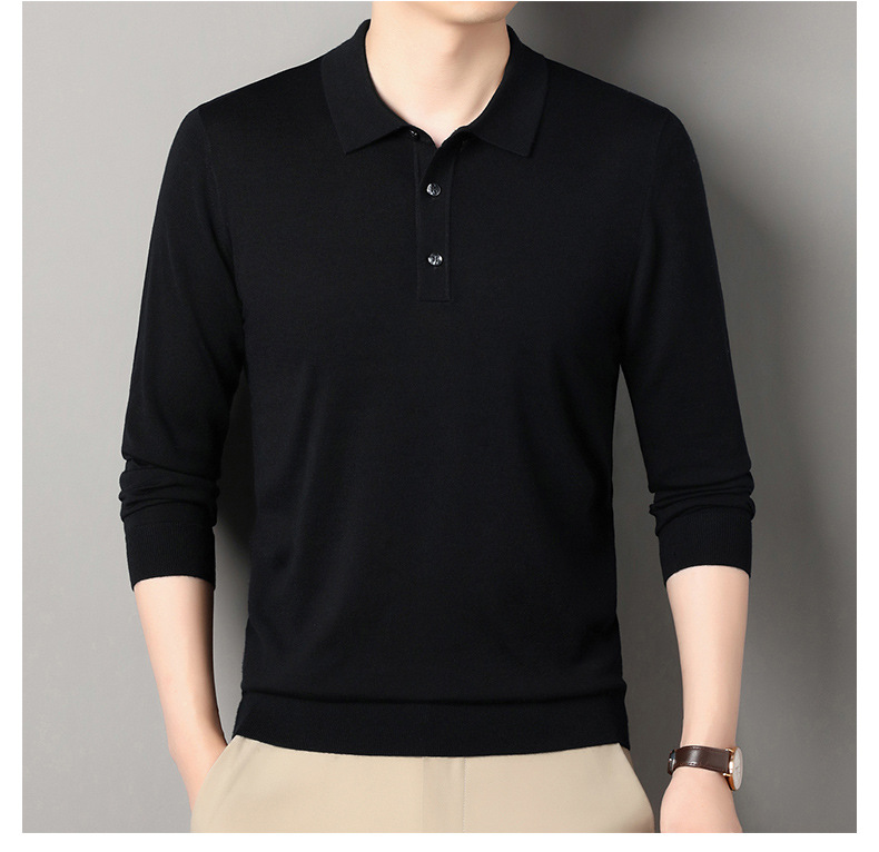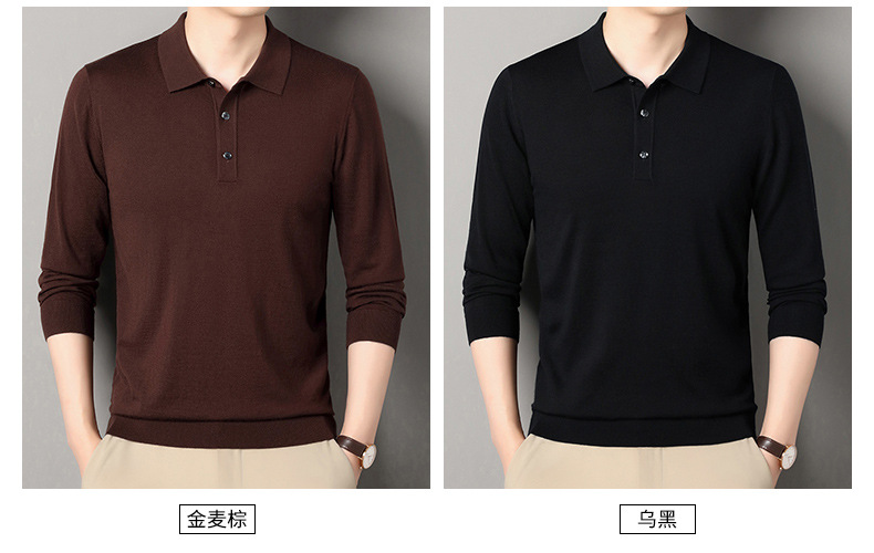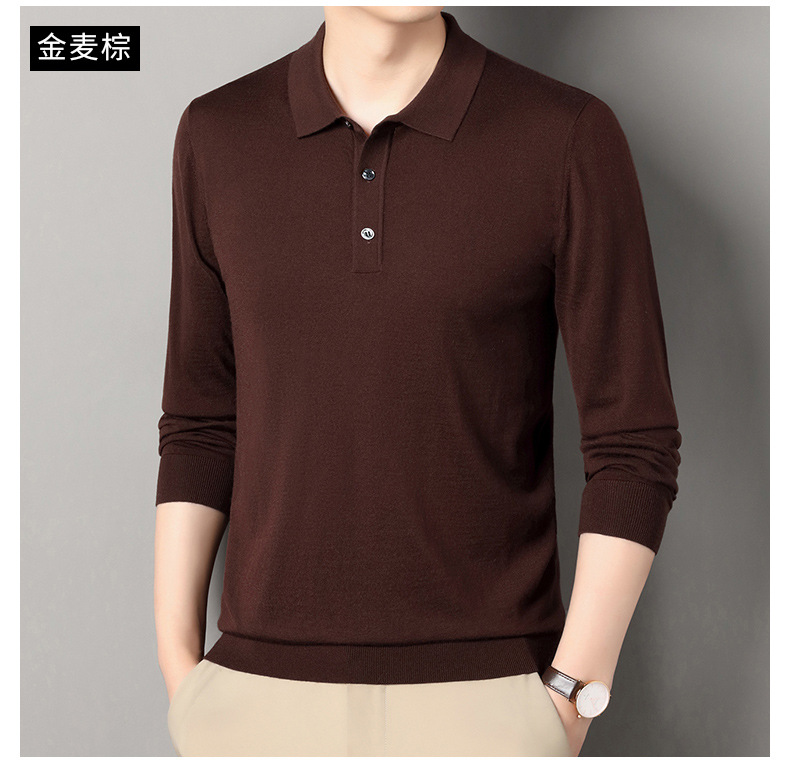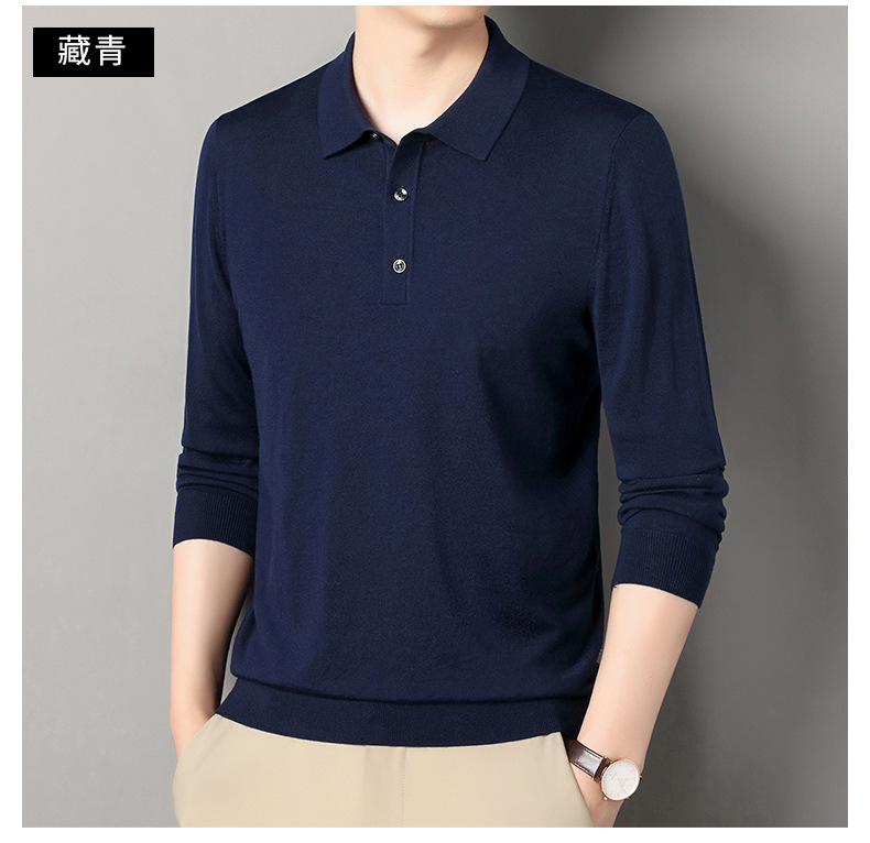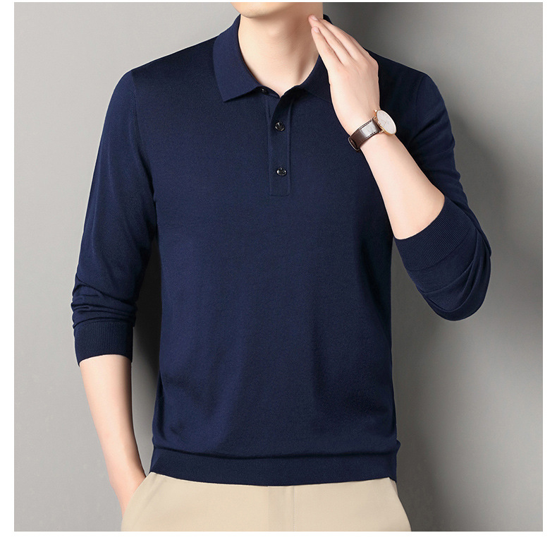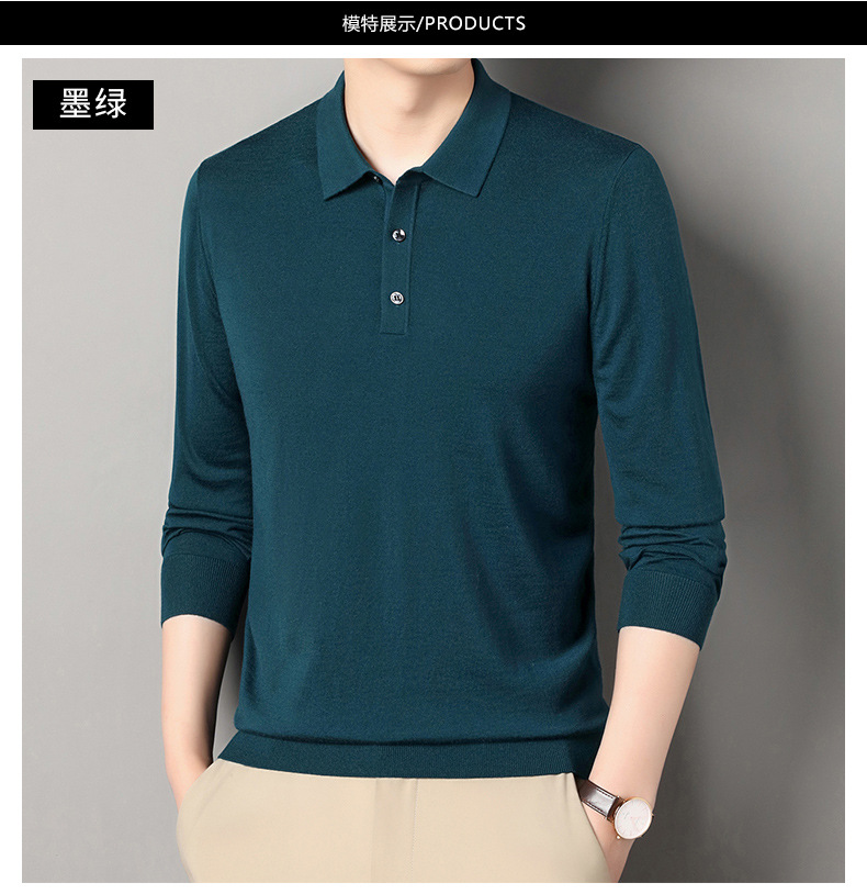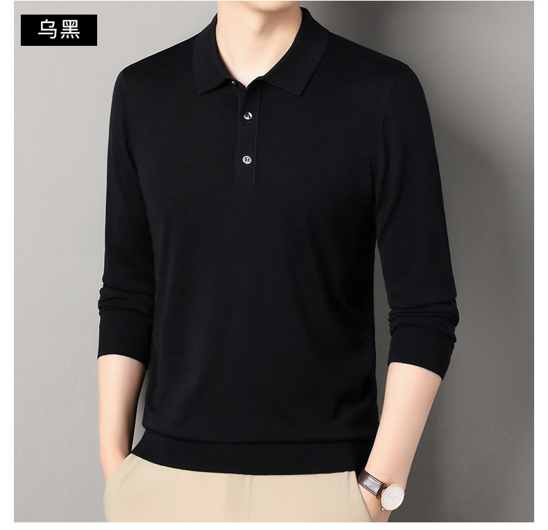 100 순수 워스트 모직 스웨터 남성용 옷깃 긴 소매 티셔츠베이스 셔츠 중년 및 젊은 고급 캐주얼 니트웨어 스웨터