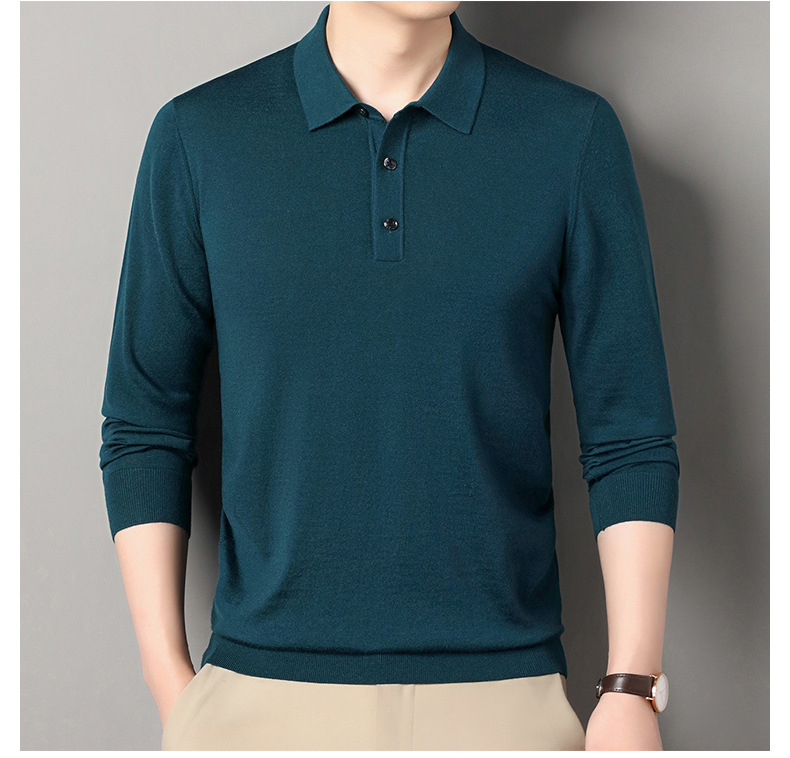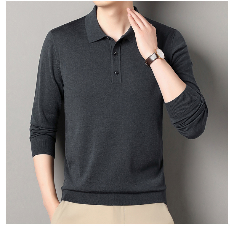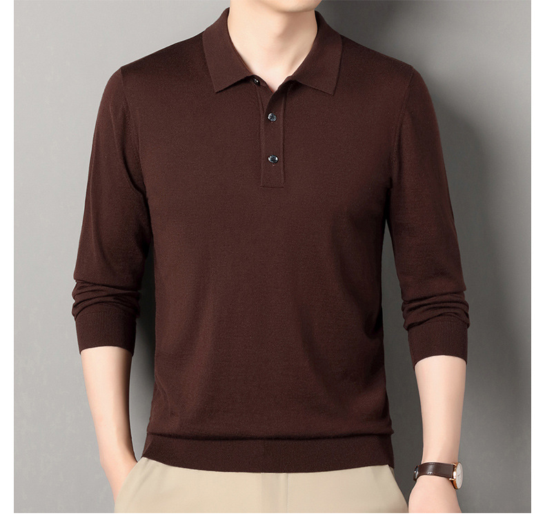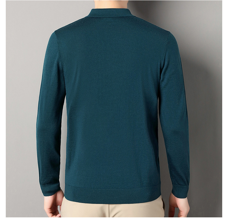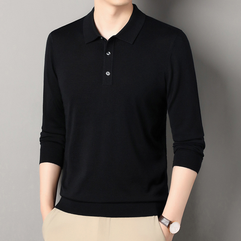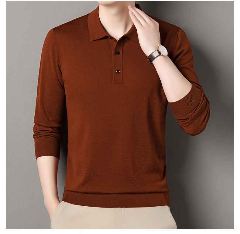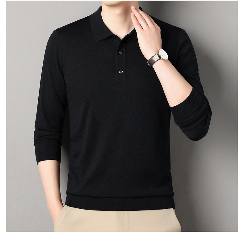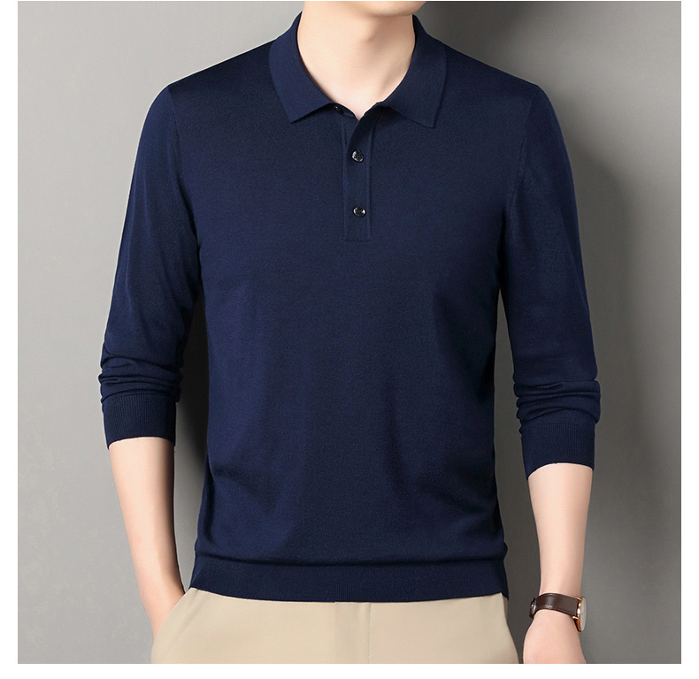 100 순수 워스트 모직 스웨터 남성용 옷깃 긴 소매 티셔츠베이스 셔츠 중년 및 젊은 고급 캐주얼 니트웨어 스웨터