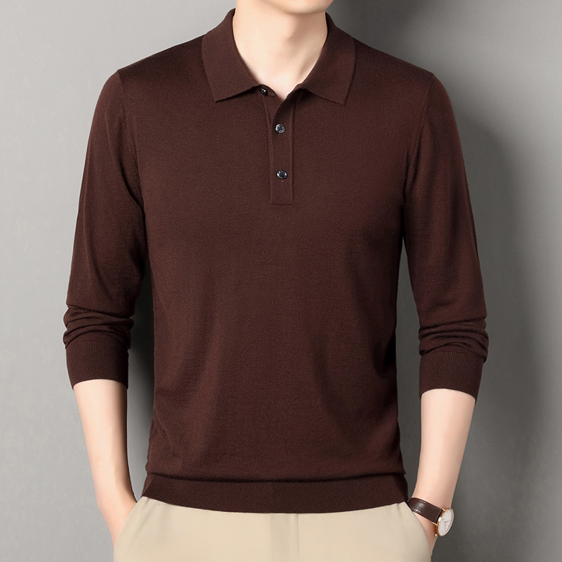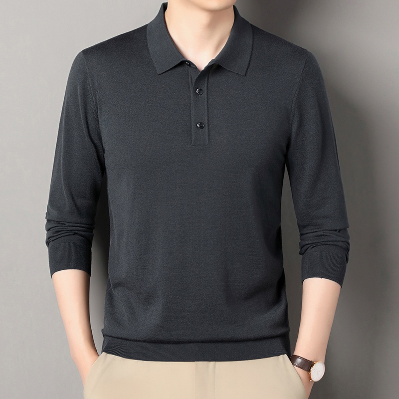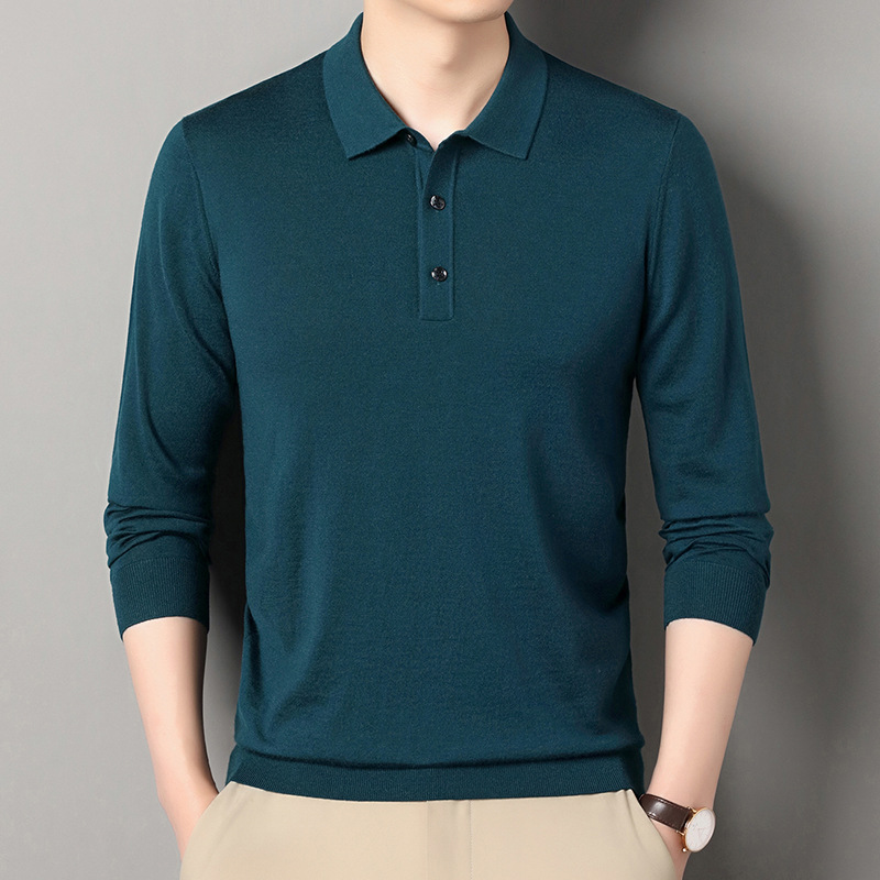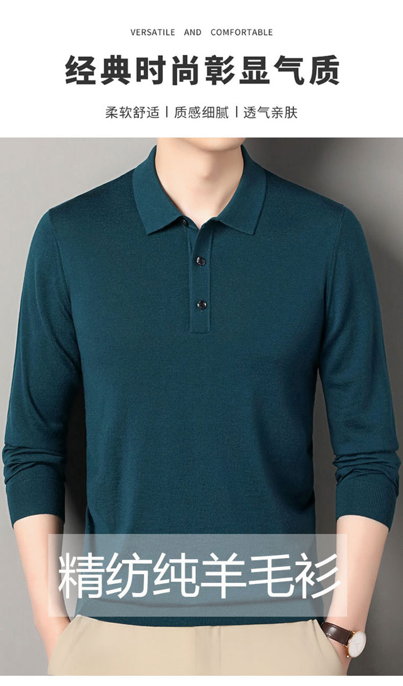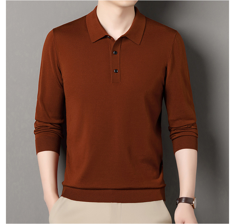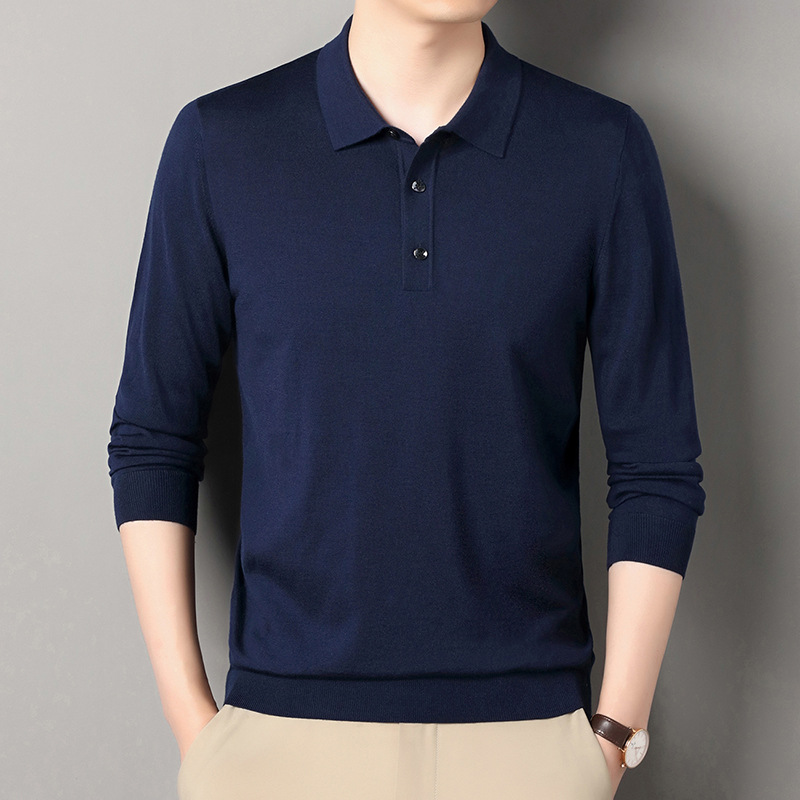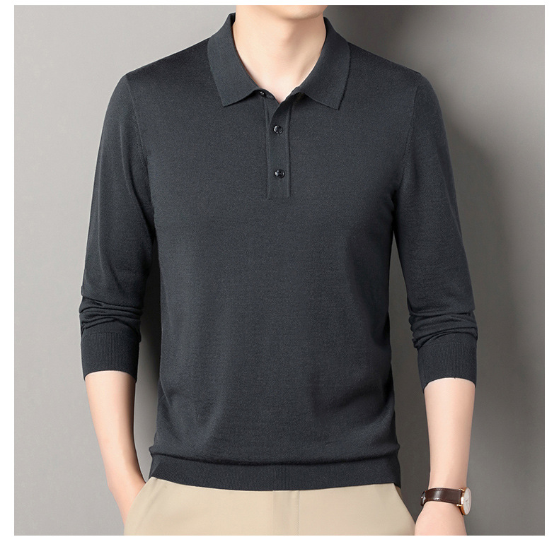100 순수 워스트 모직 스웨터 남성용 옷깃 긴 소매 티셔츠베이스 셔츠 중년 및 젊은 고급 캐주얼 니트웨어 스웨터
