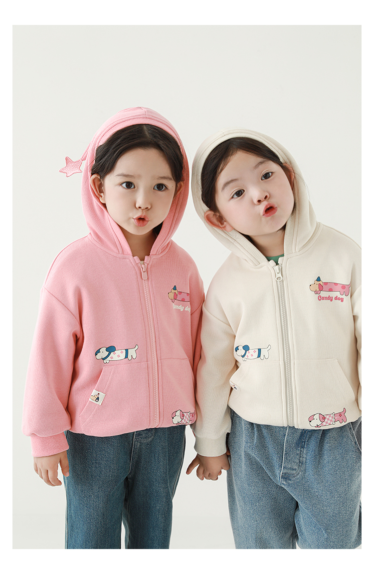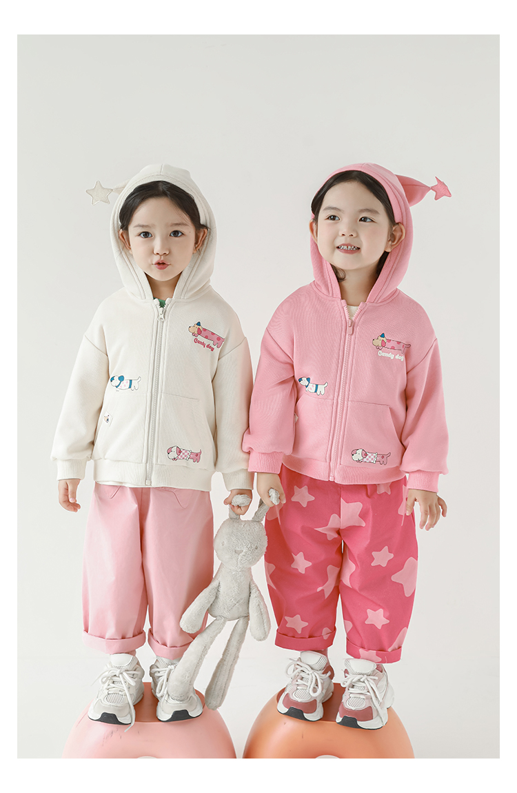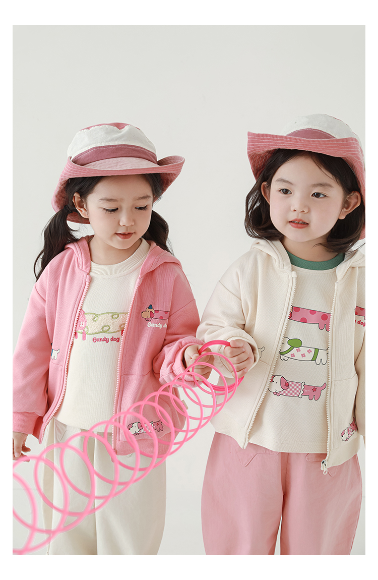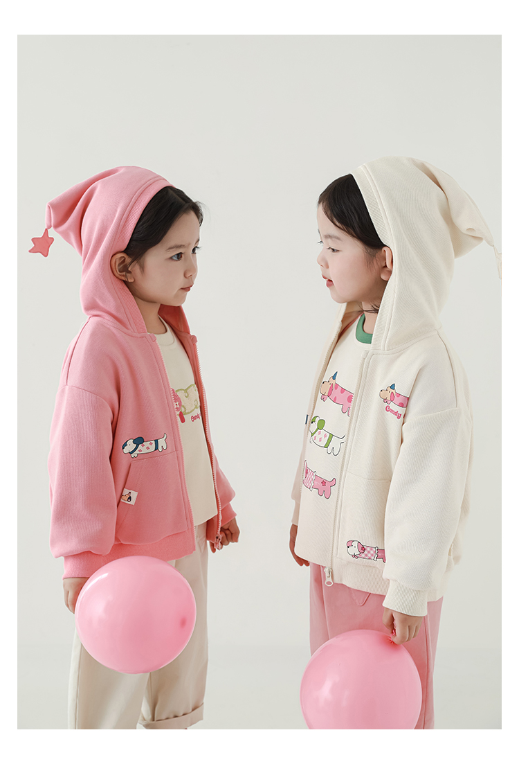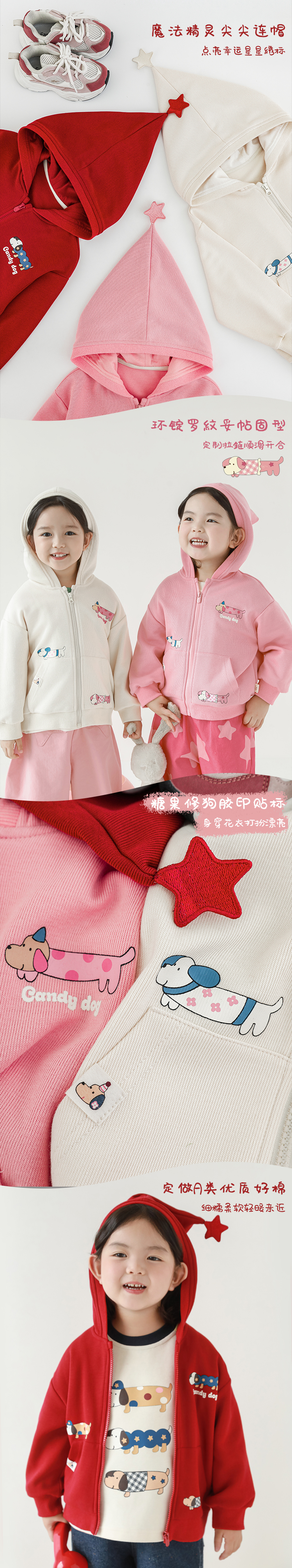 Wuri Boo Girl's Magic Home 포인팅 후드 자켓 가을 어린이 귀여운 캔디 개 프린트 탑