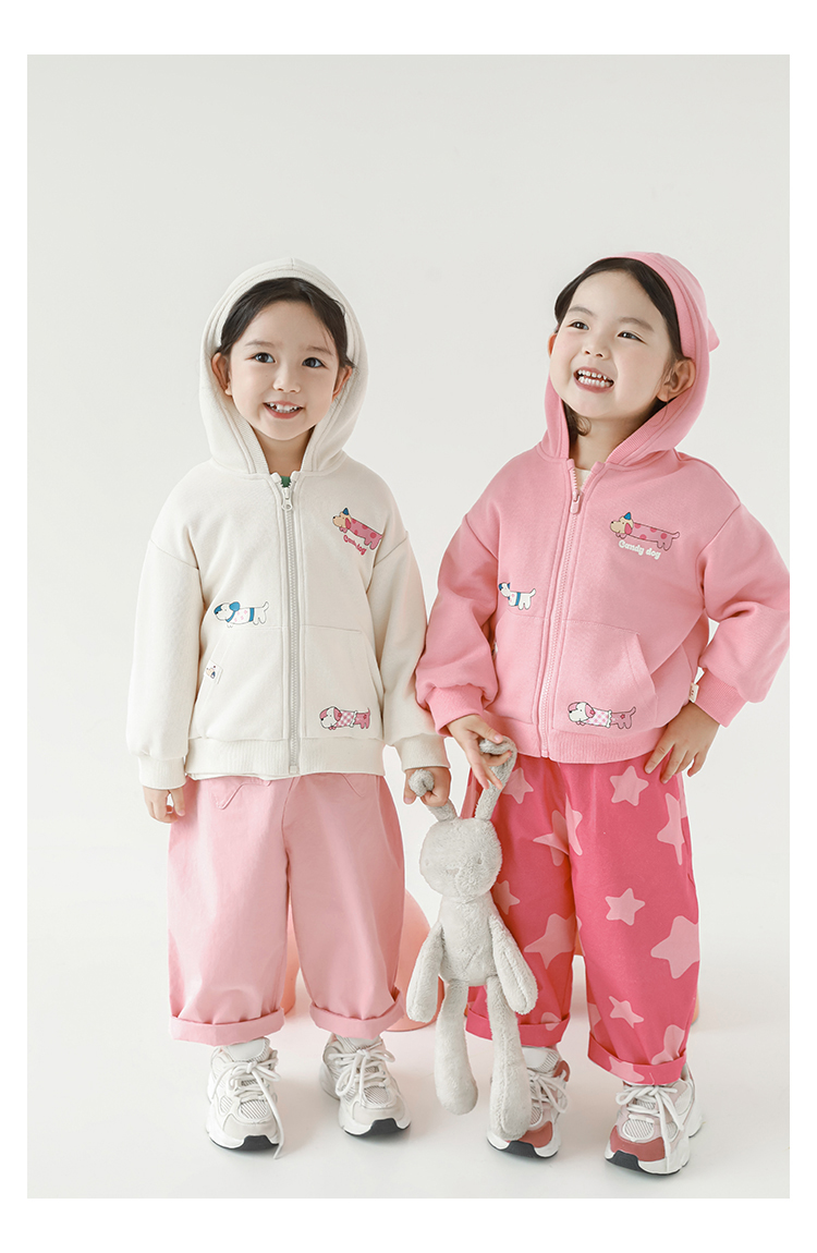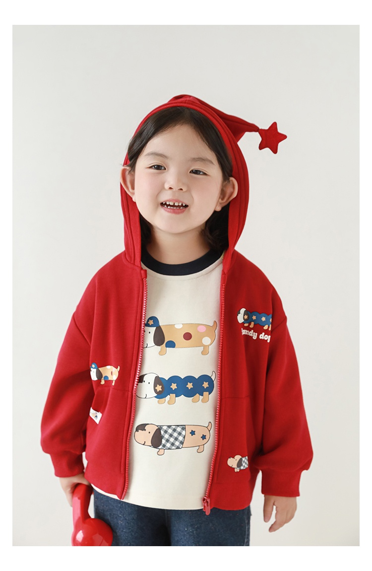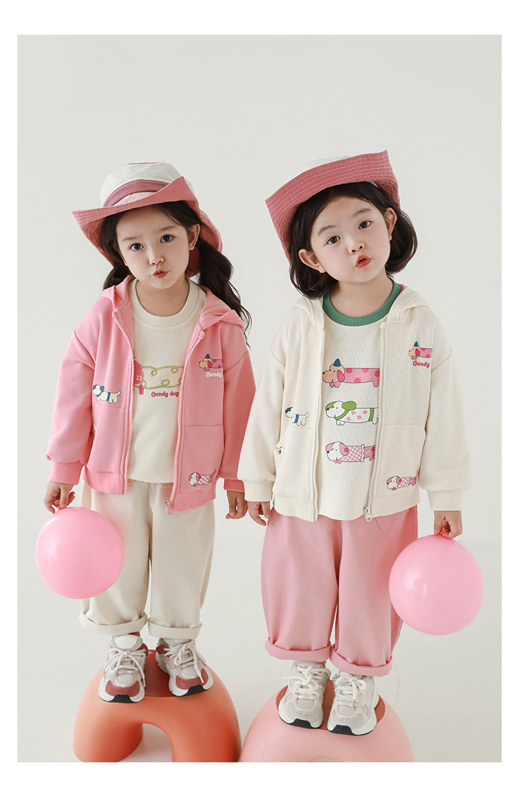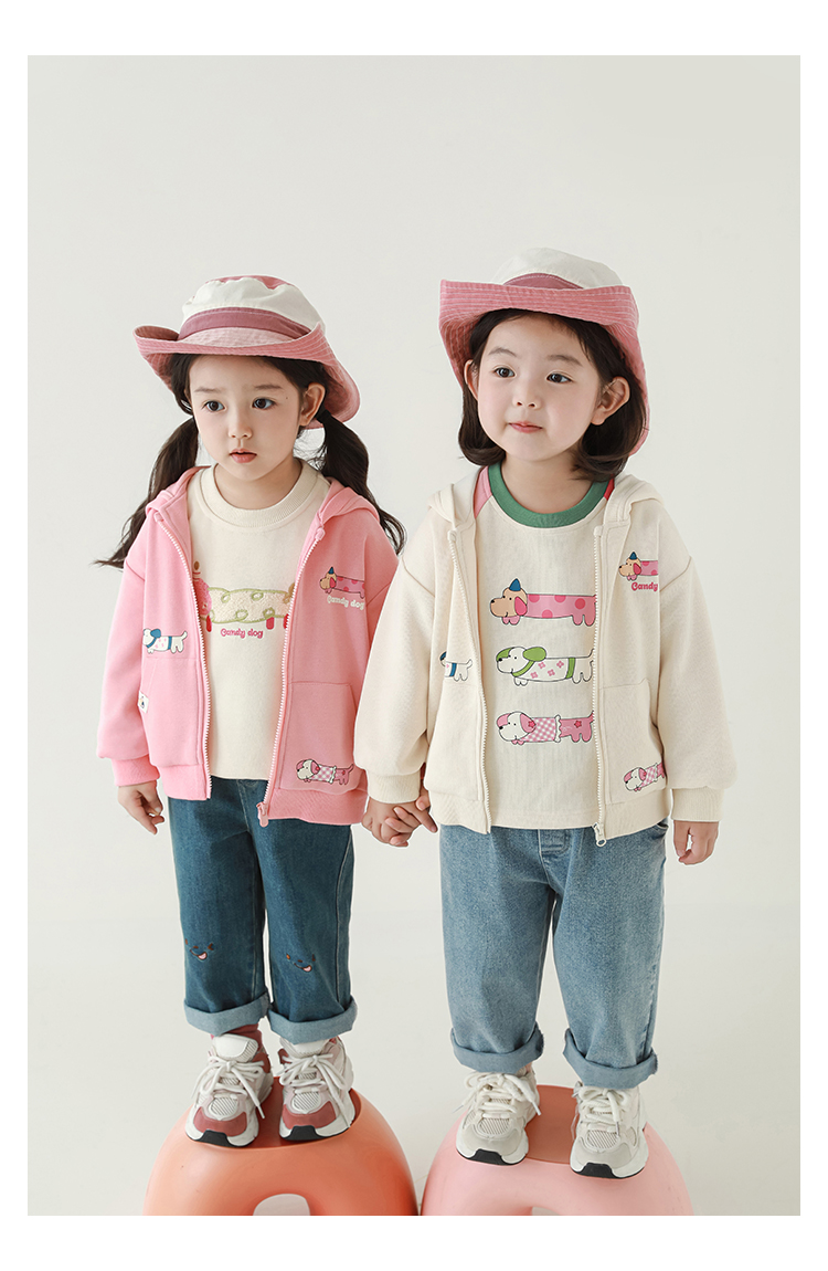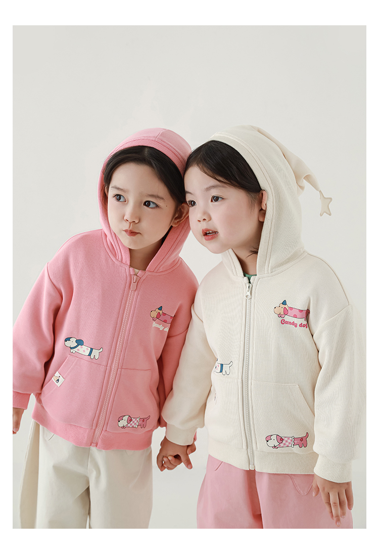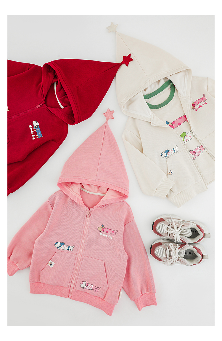 Wuri Boo Girl's Magic Home 포인팅 후드 자켓 가을 어린이 귀여운 캔디 개 프린트 탑