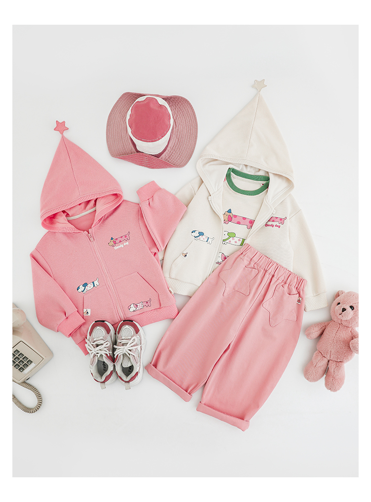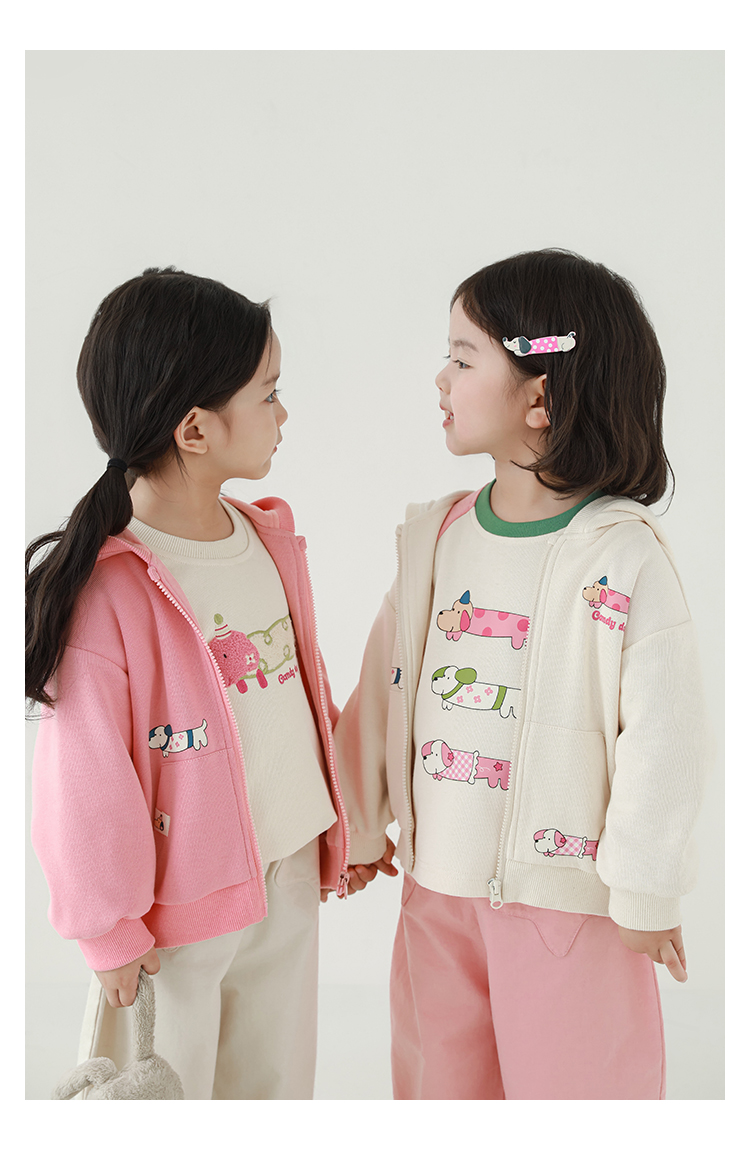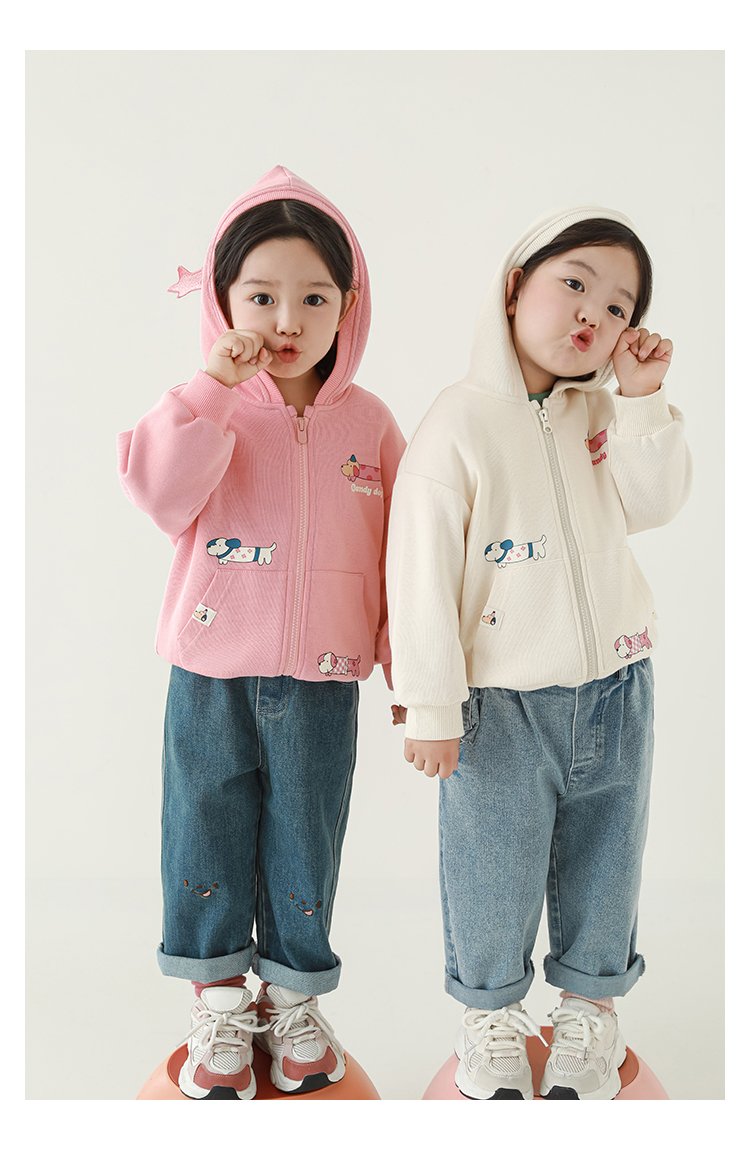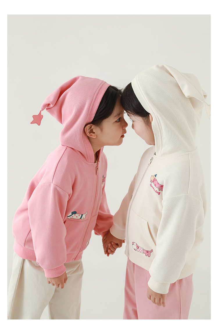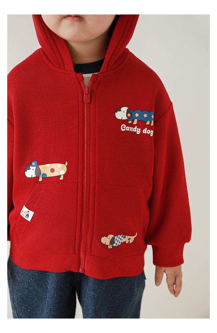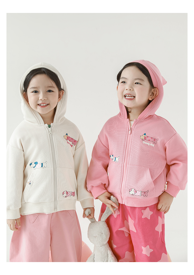 Wuri Boo Girl's Magic Home 포인팅 후드 자켓 가을 어린이 귀여운 캔디 개 프린트 탑