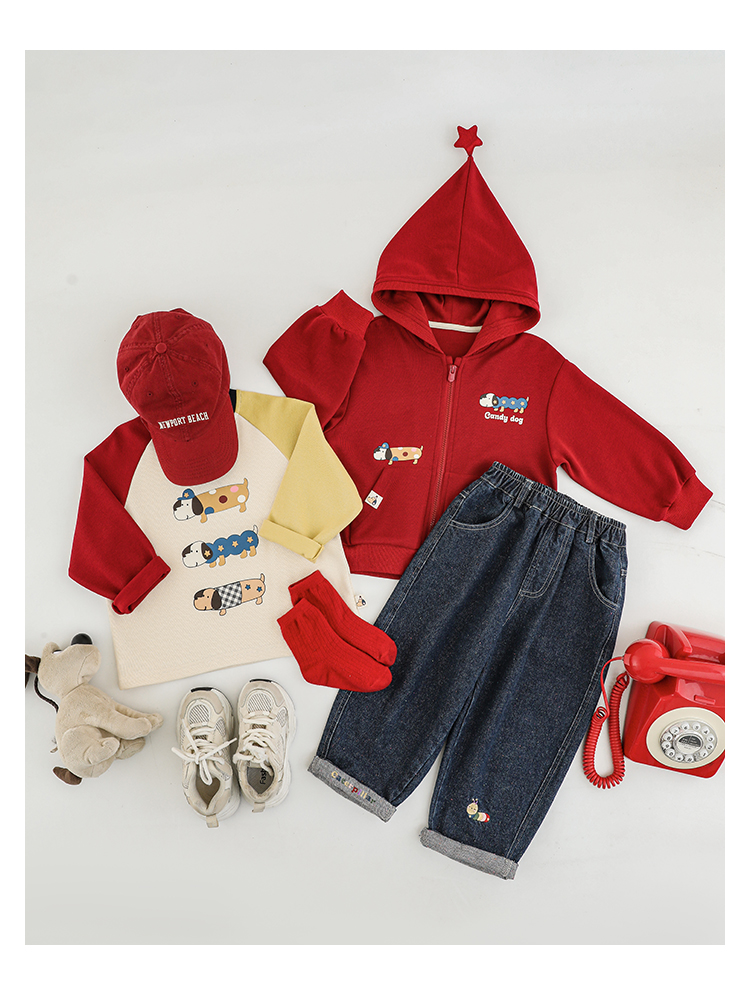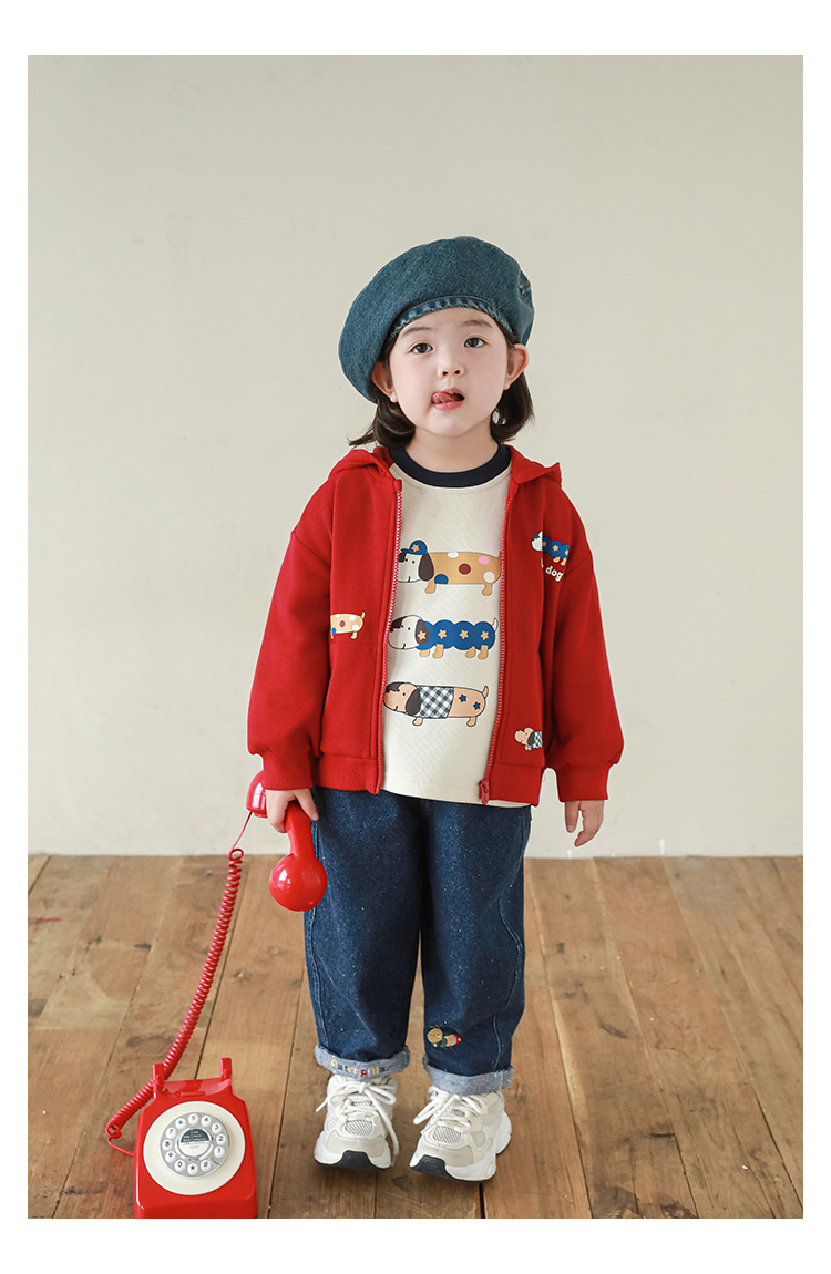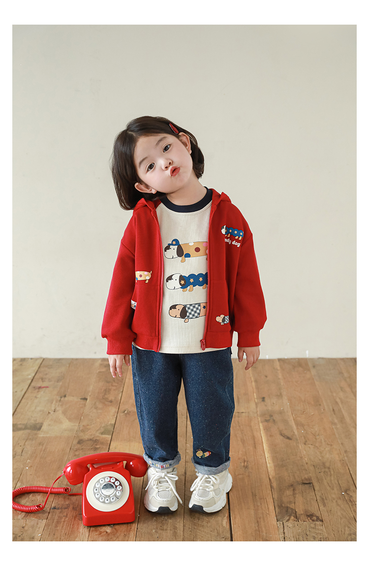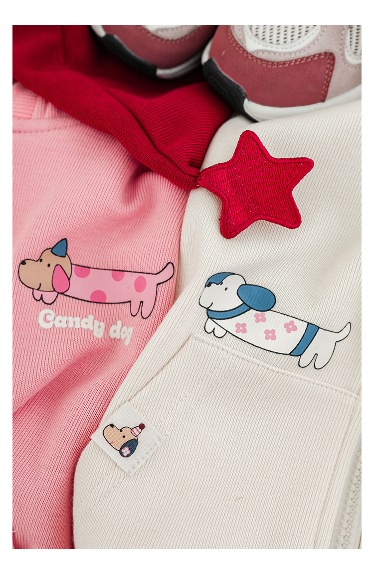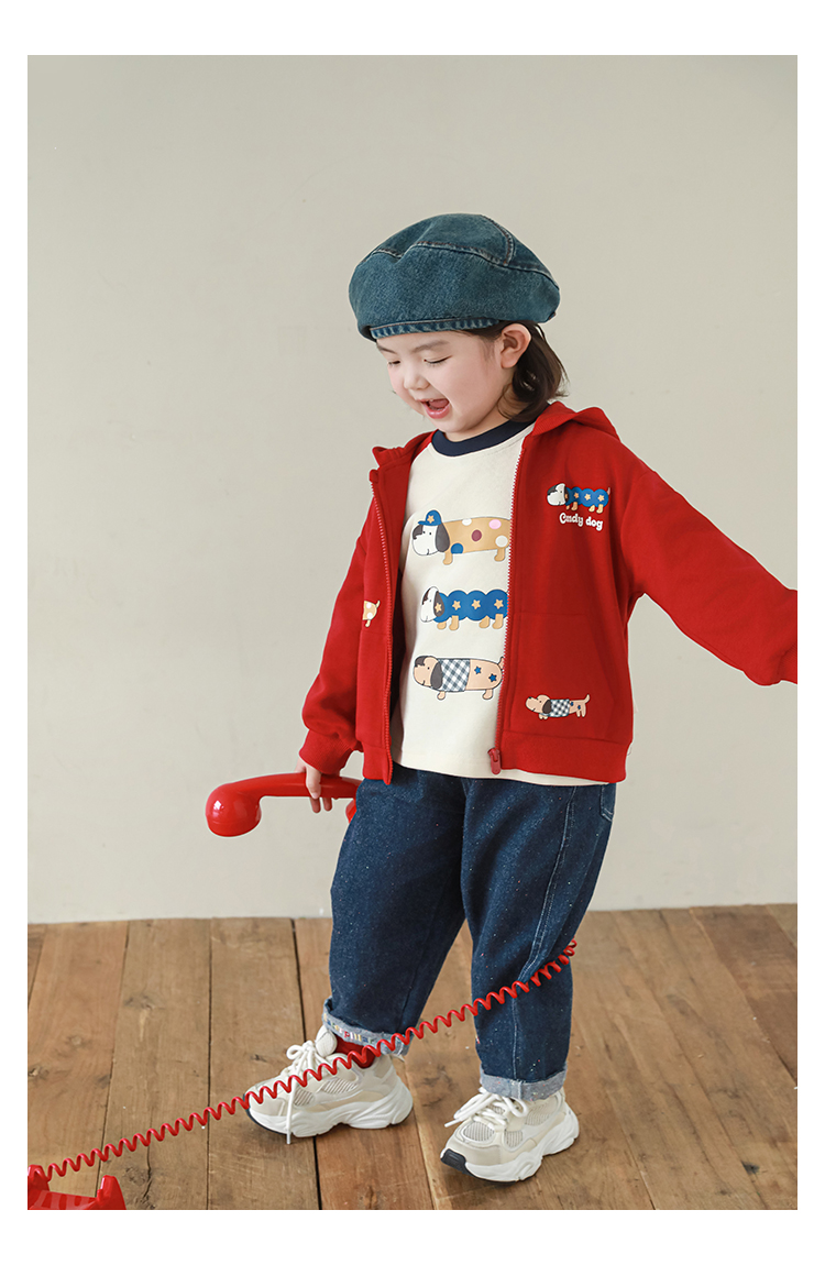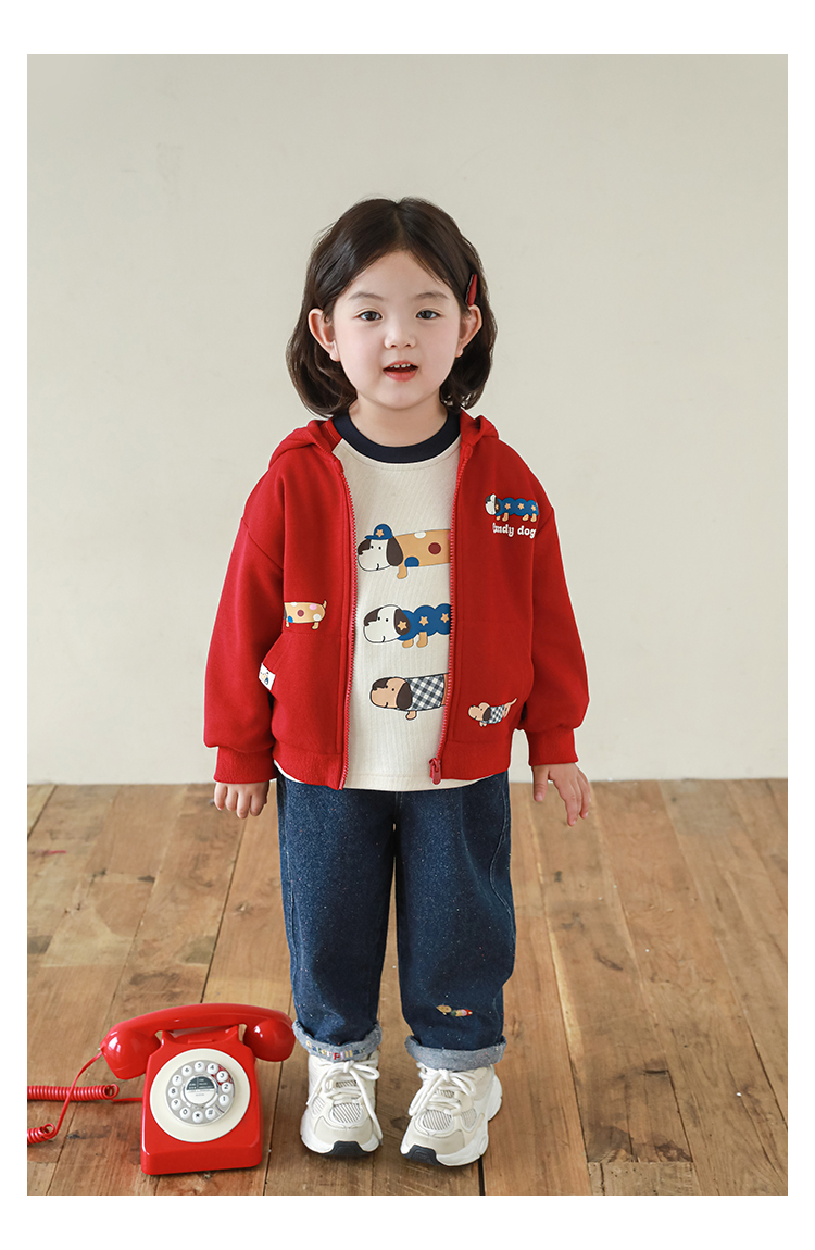 Wuri Boo Girl's Magic Home 포인팅 후드 자켓 가을 어린이 귀여운 캔디 개 프린트 탑