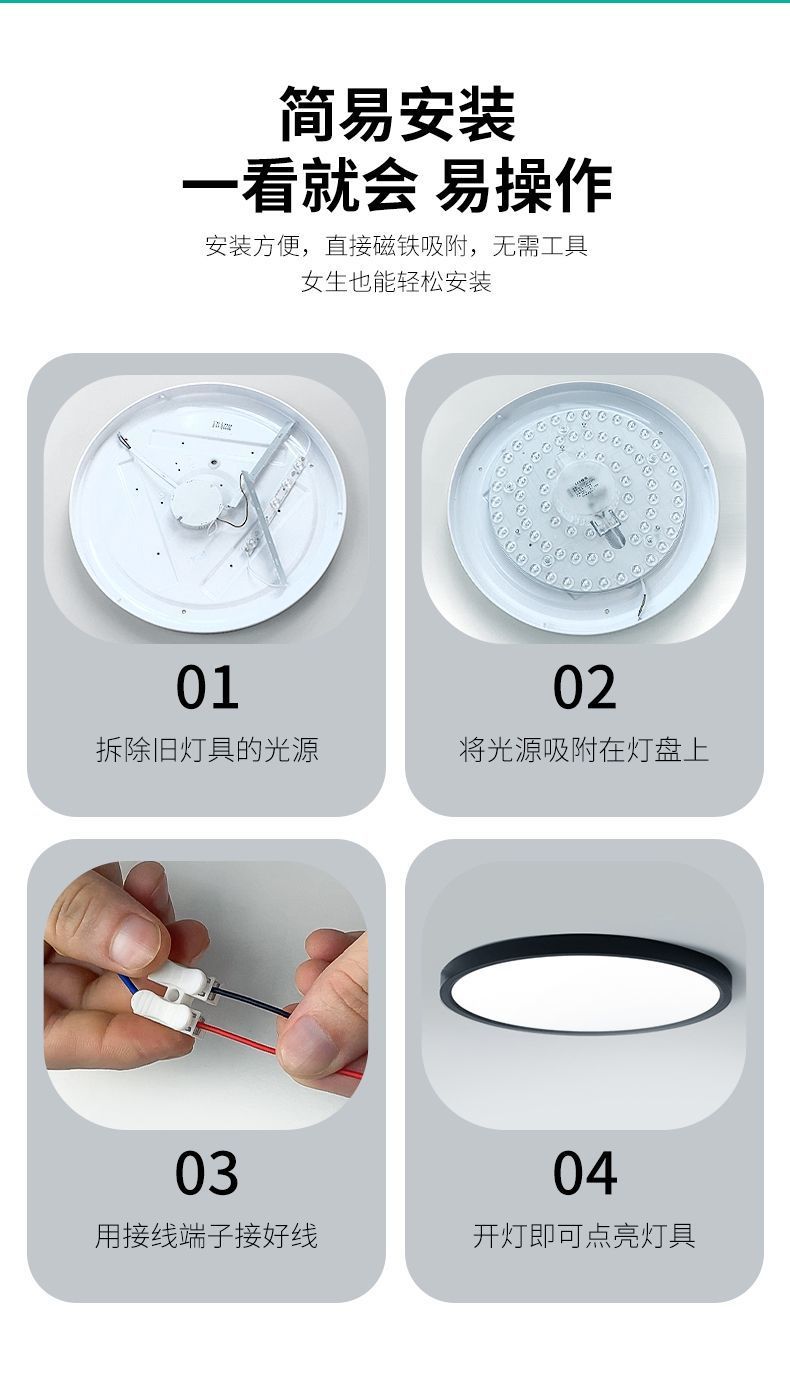 천장 램프 led 램프 패널 교체 심지 라운드 침실 원격 제어 광원 거실 에너지 절약 개조 전구 유니버설스토어 가기