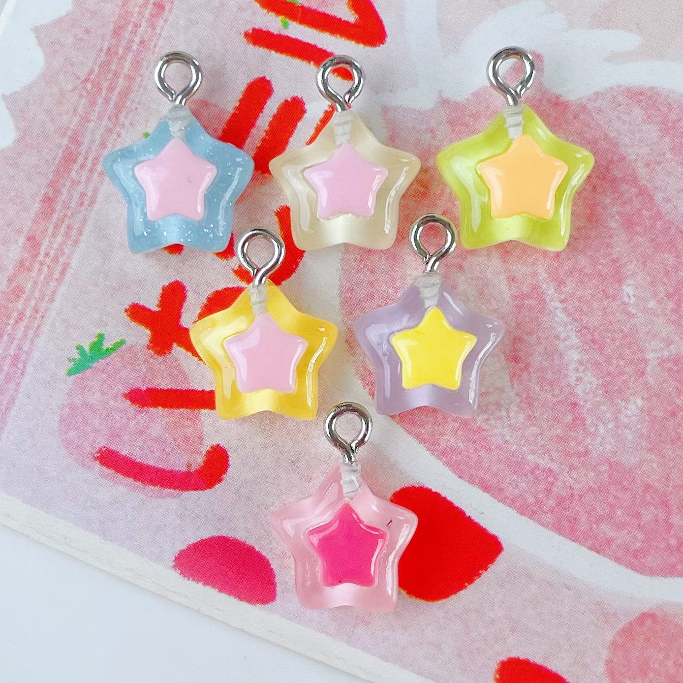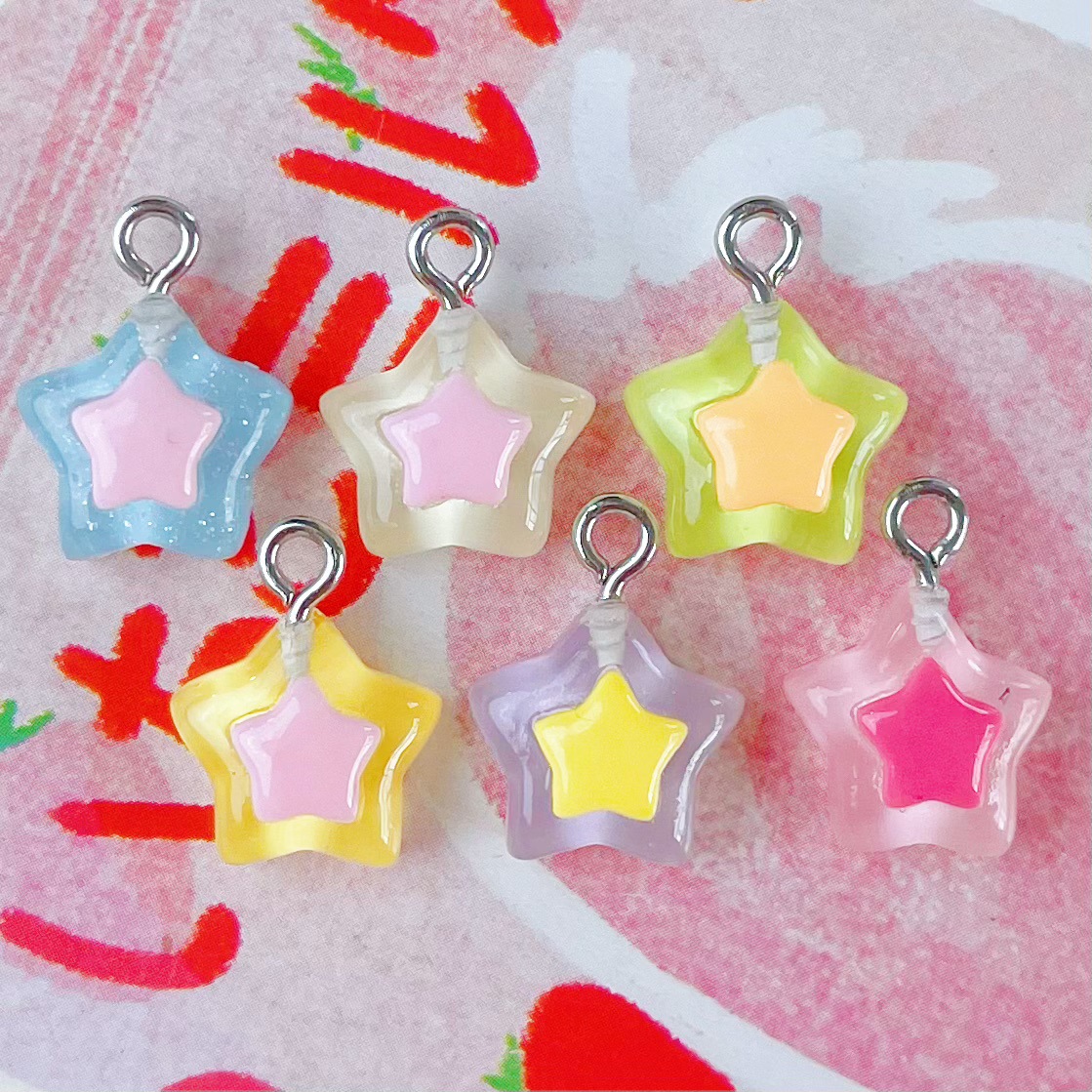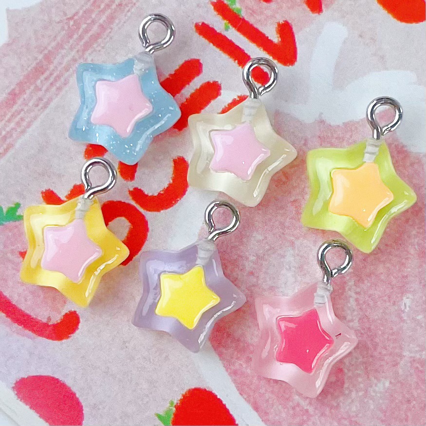 미니 스몰 사이즈 투명 5 점 스타 스타 펜던트 수지 액세서리 DIY 보석 펜던트 귀걸이 키 체인 장식