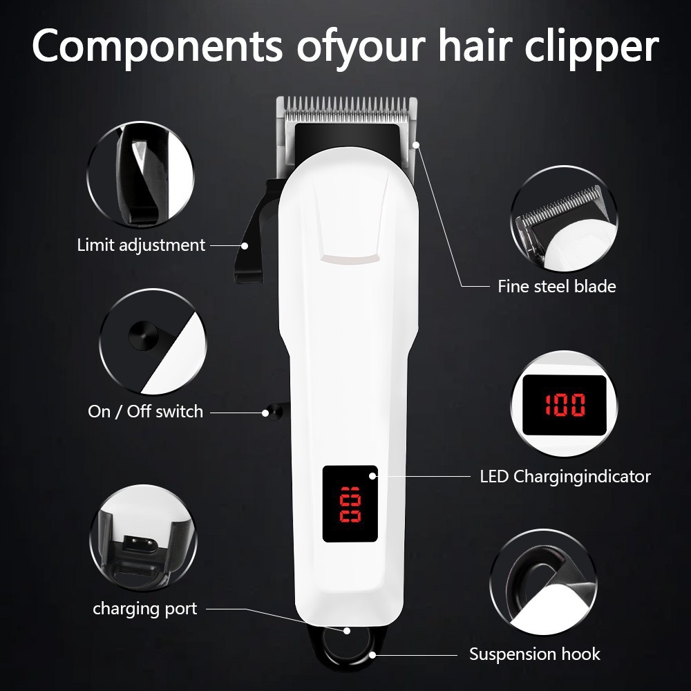 VBT 충전 무선 헤어 클리퍼 전기 클리퍼 헤어 클리퍼 국경 간 공급 스틸 커터 헤드 조절 LCD 디스플레이