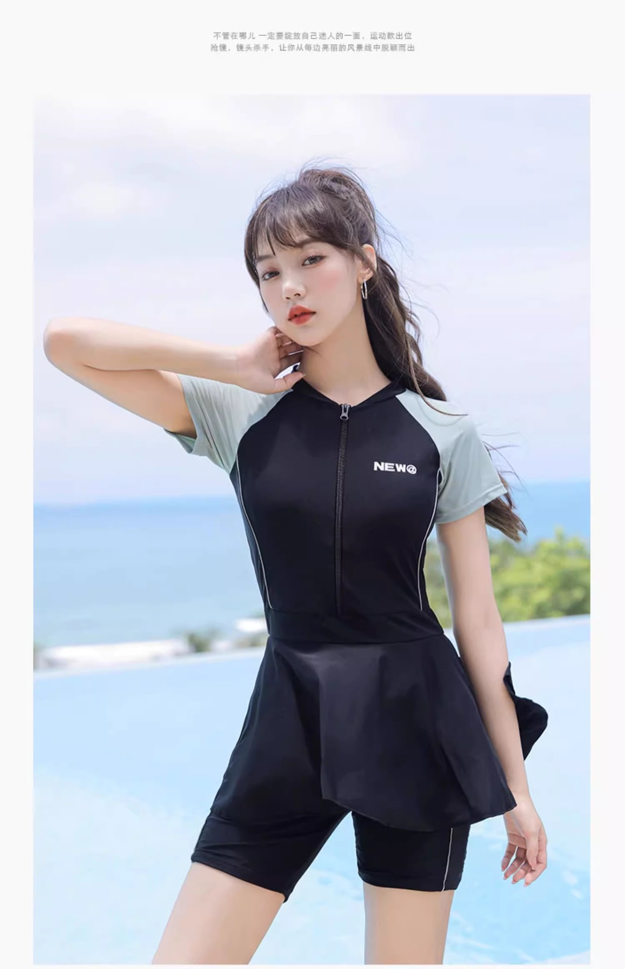 2025년 신형 원피스 전문 스포츠 수영복 여학생용 보수적인 수영 수업용 배를 가려주는 슬림한 사각팬티 온천용스토어 가기
