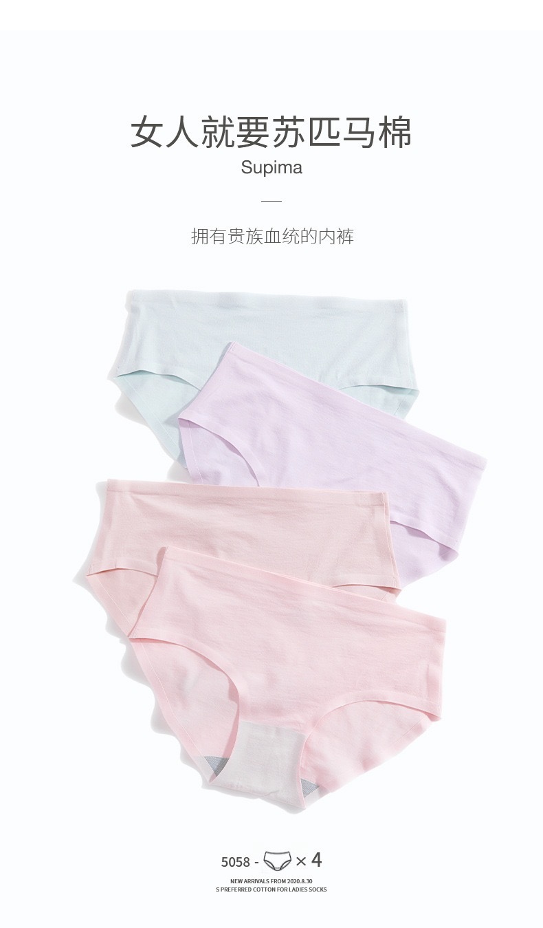 순면 여성용 속옷 60수 피마 코튼 여성용 순면 중간 허리 무봉제 소녀 삼각 팬티 도매 소녀 아동용스토어 가기