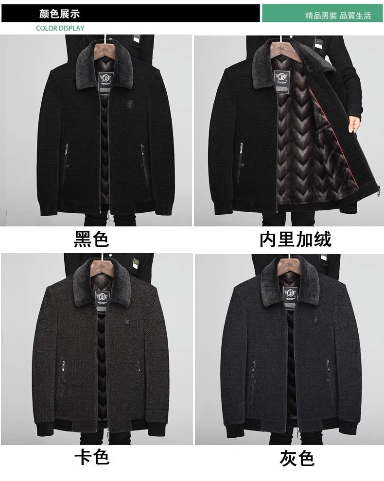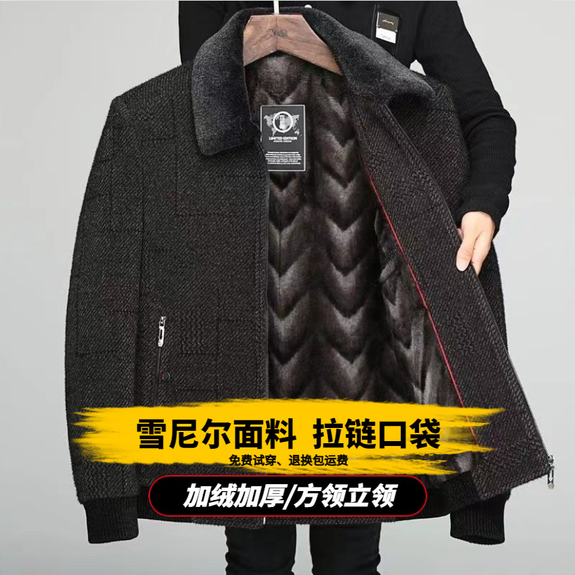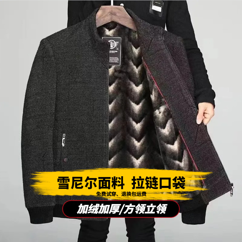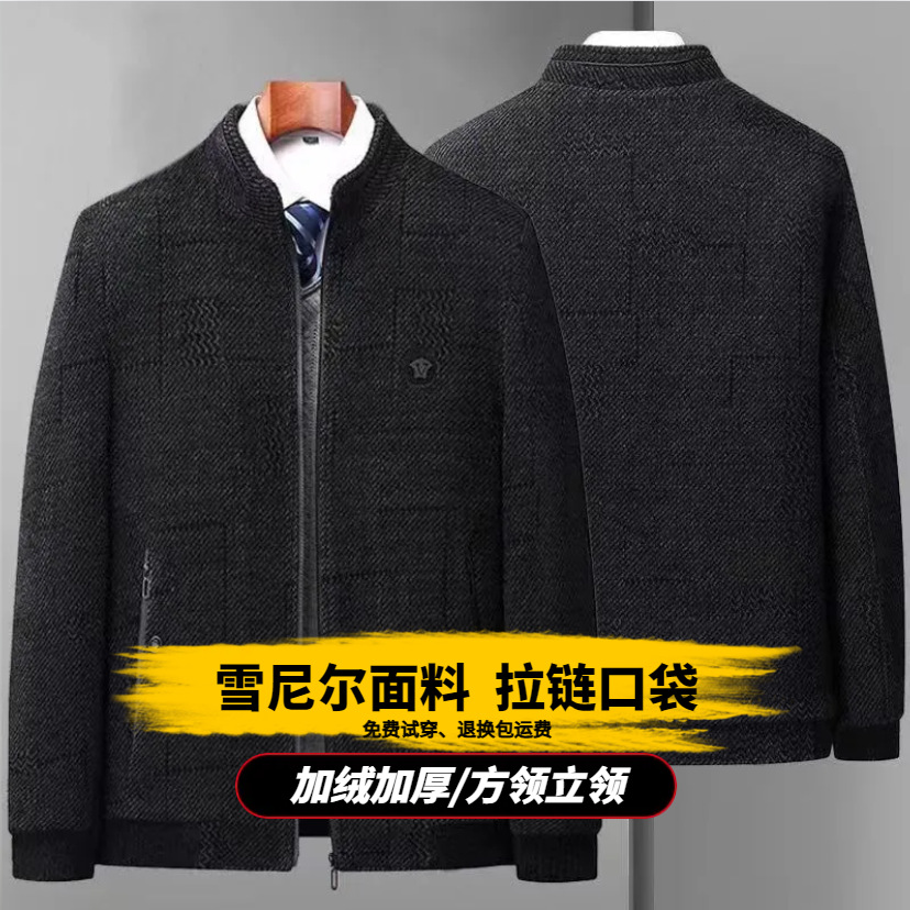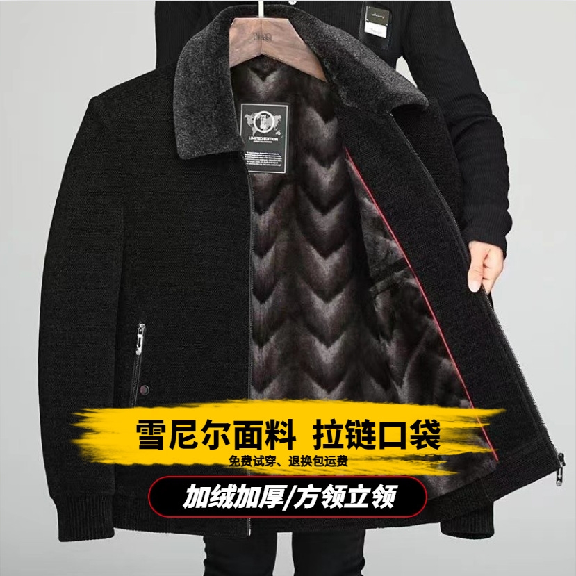 겨울 중년 남성 아빠 할아버지 옷 기모 두꺼운 모직 재킷 중년 체닐 코튼 재킷