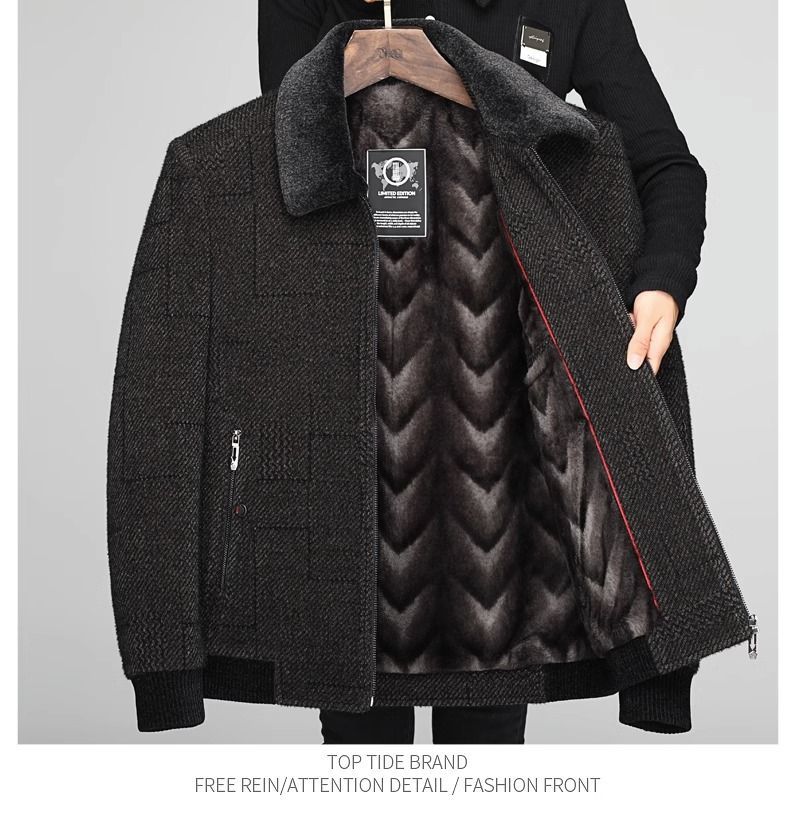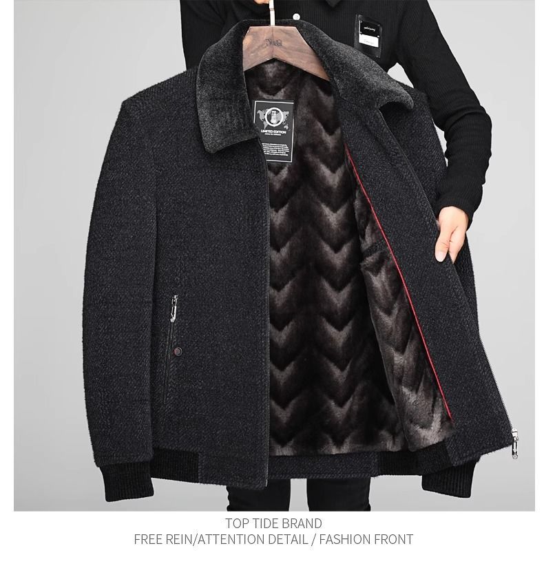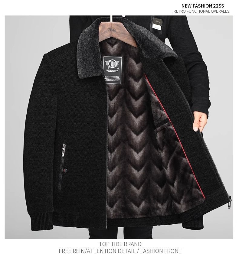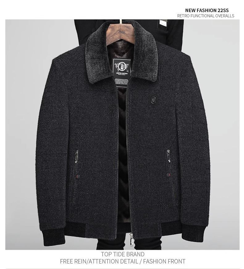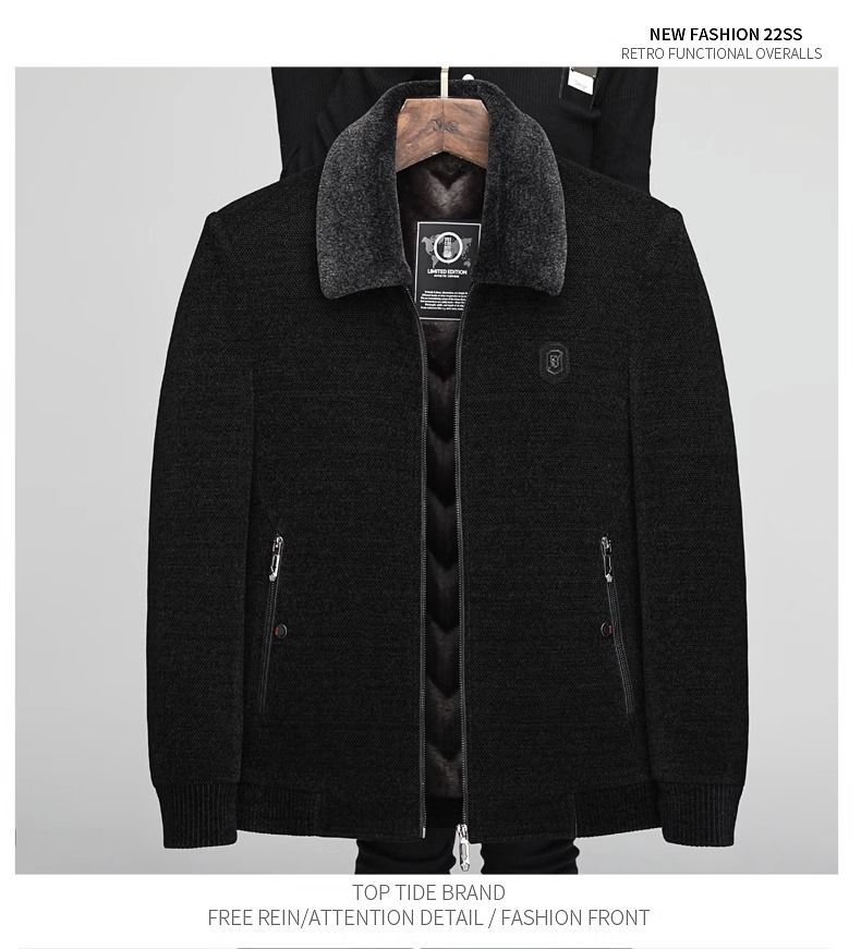 겨울 중년 남성 아빠 할아버지 옷 기모 두꺼운 모직 재킷 중년 체닐 코튼 재킷