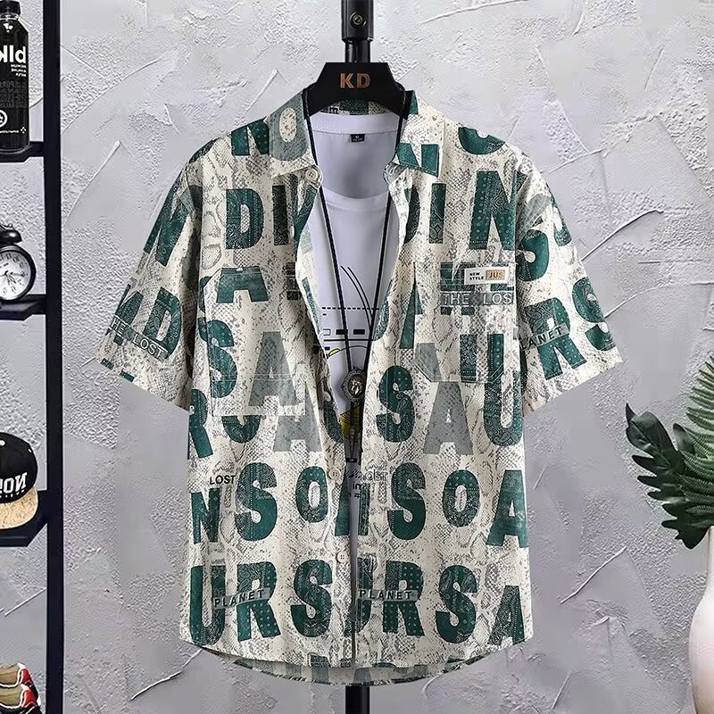 2024 레트로 셔츠 남자 여름 홍콩 스타일 학생 느슨한 틈새 디자인 감각 재미있는 새로운 남성 탑스토어 가기