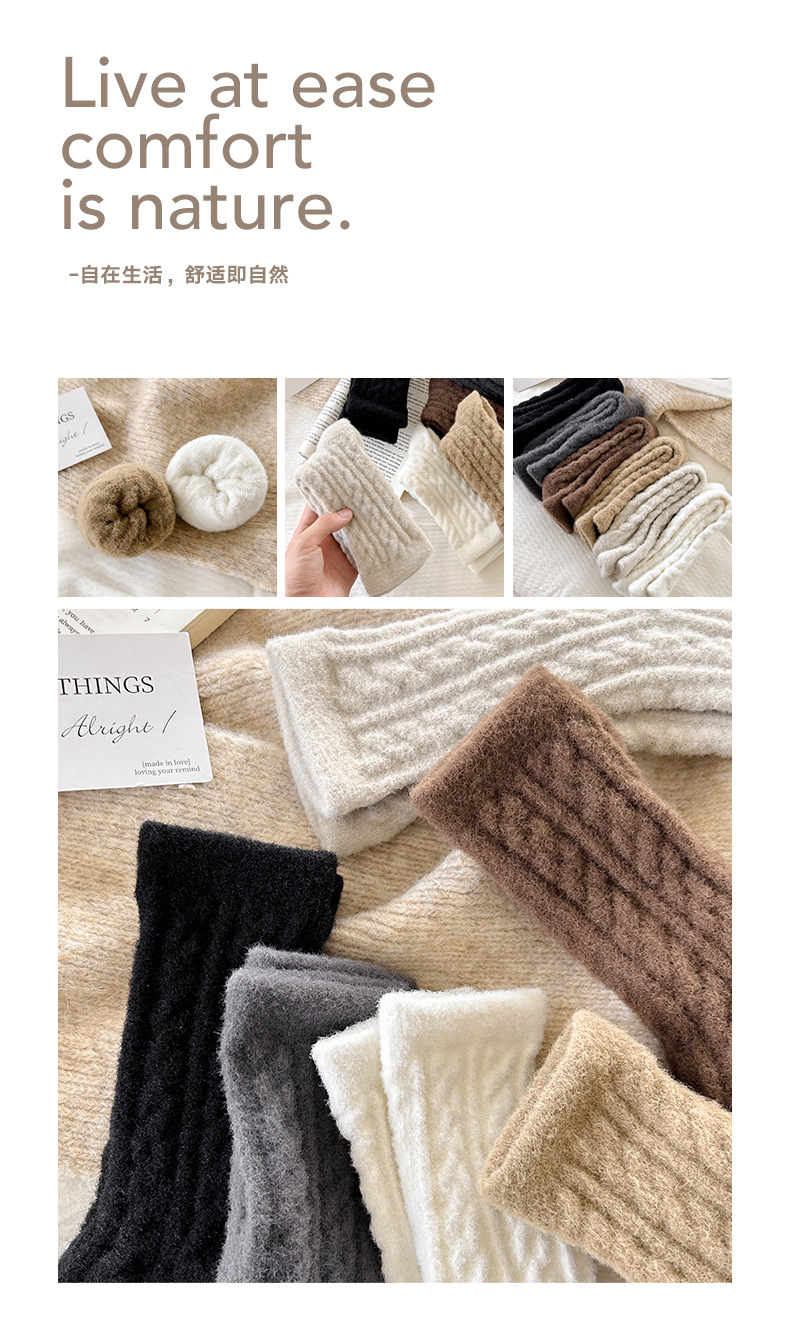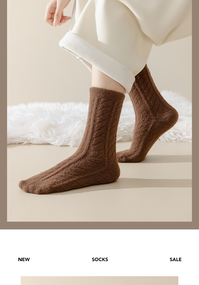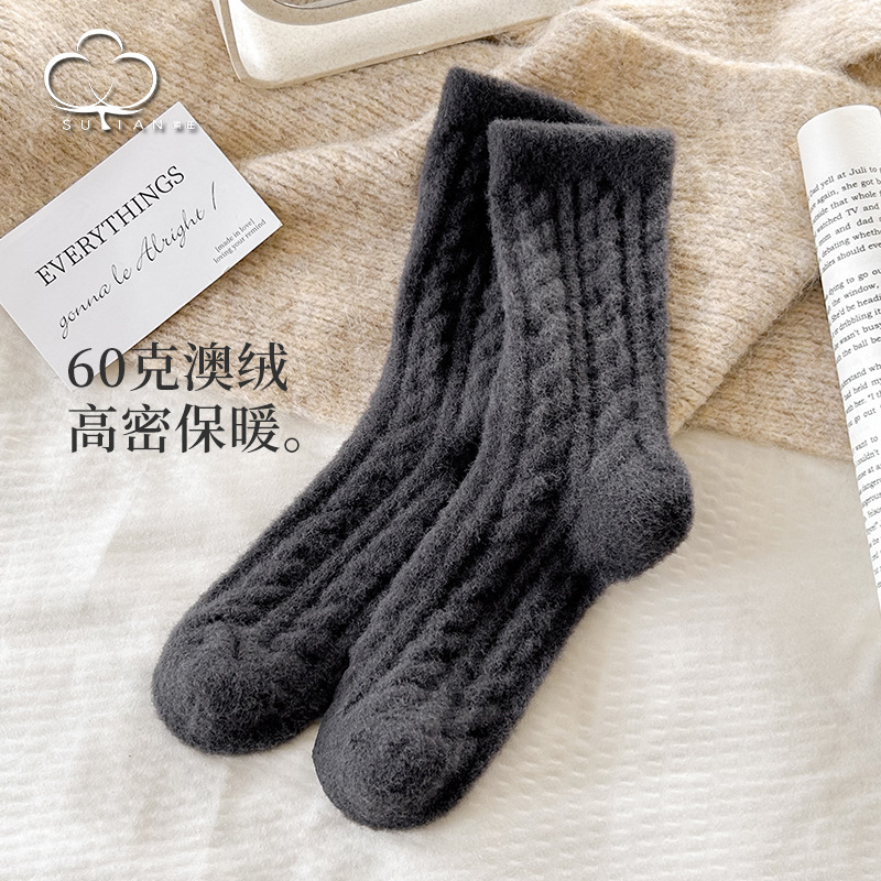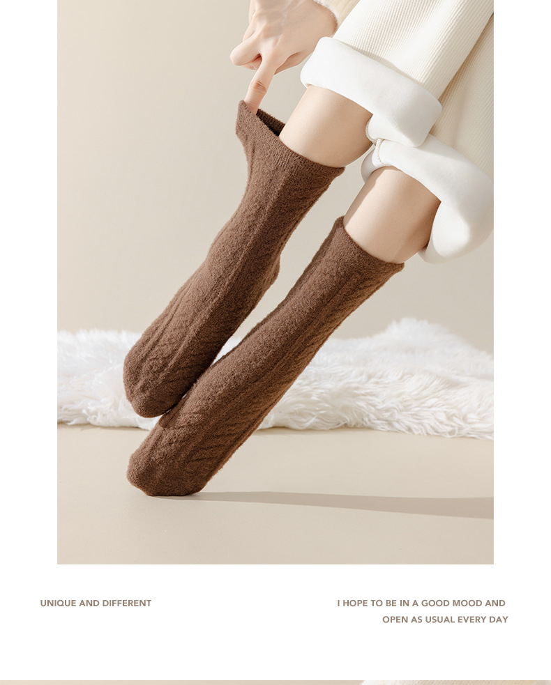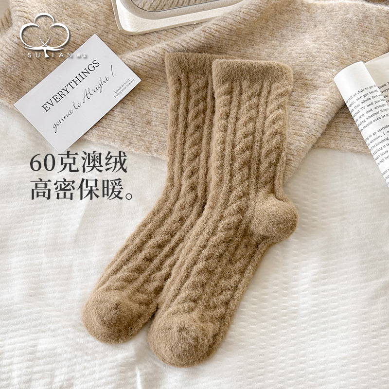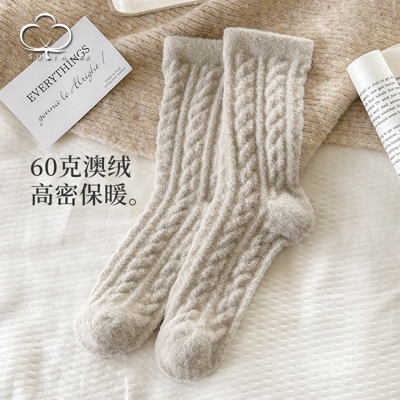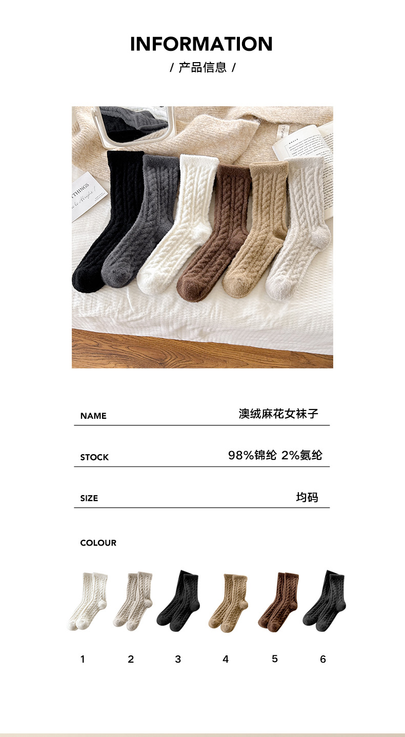 호주 벨벳 양말 어린이 겨울 기모 트위스트 튜브 양말 단색 간단한 집 따뜻한 두꺼운 달 양말 바닥 양말스토어 가기