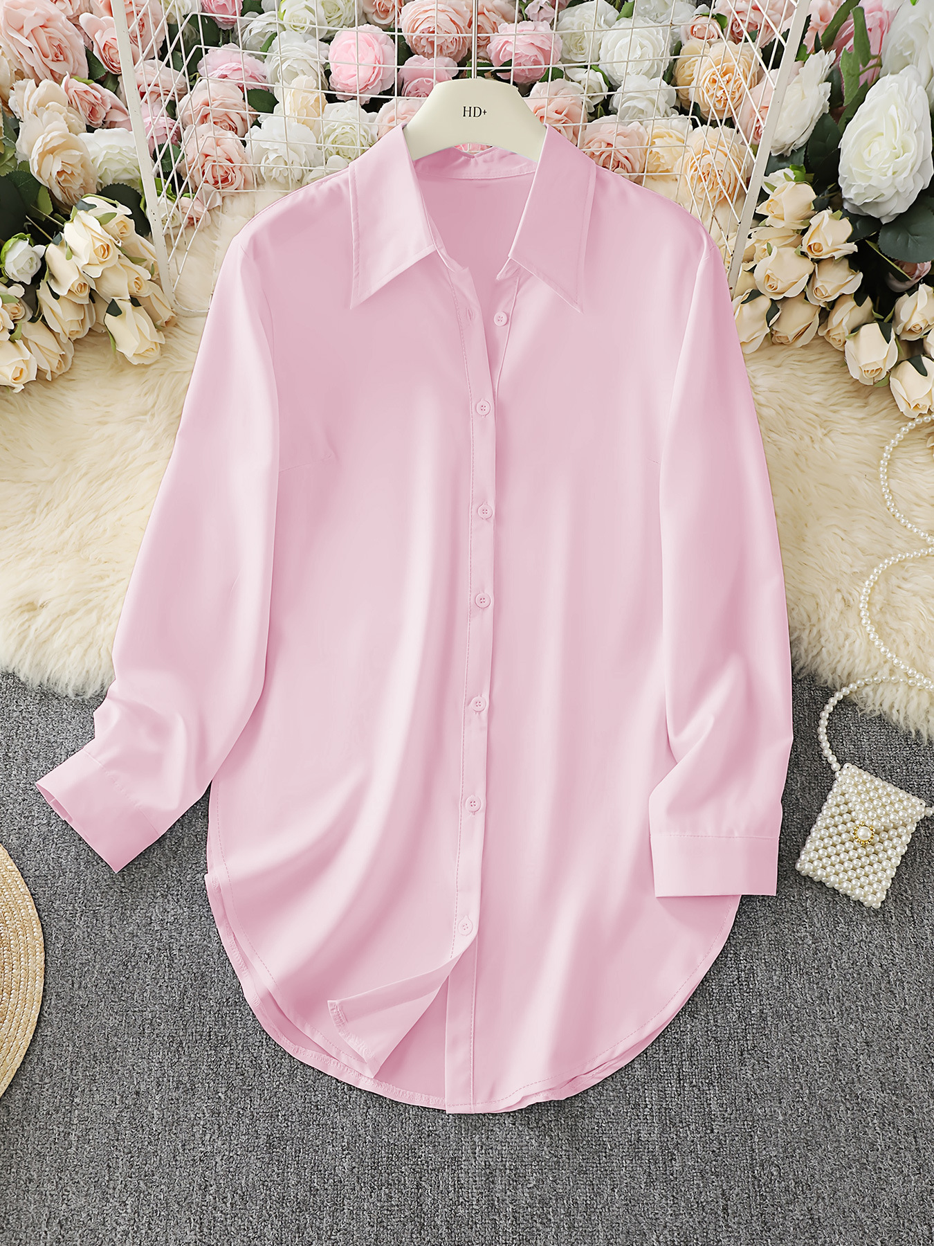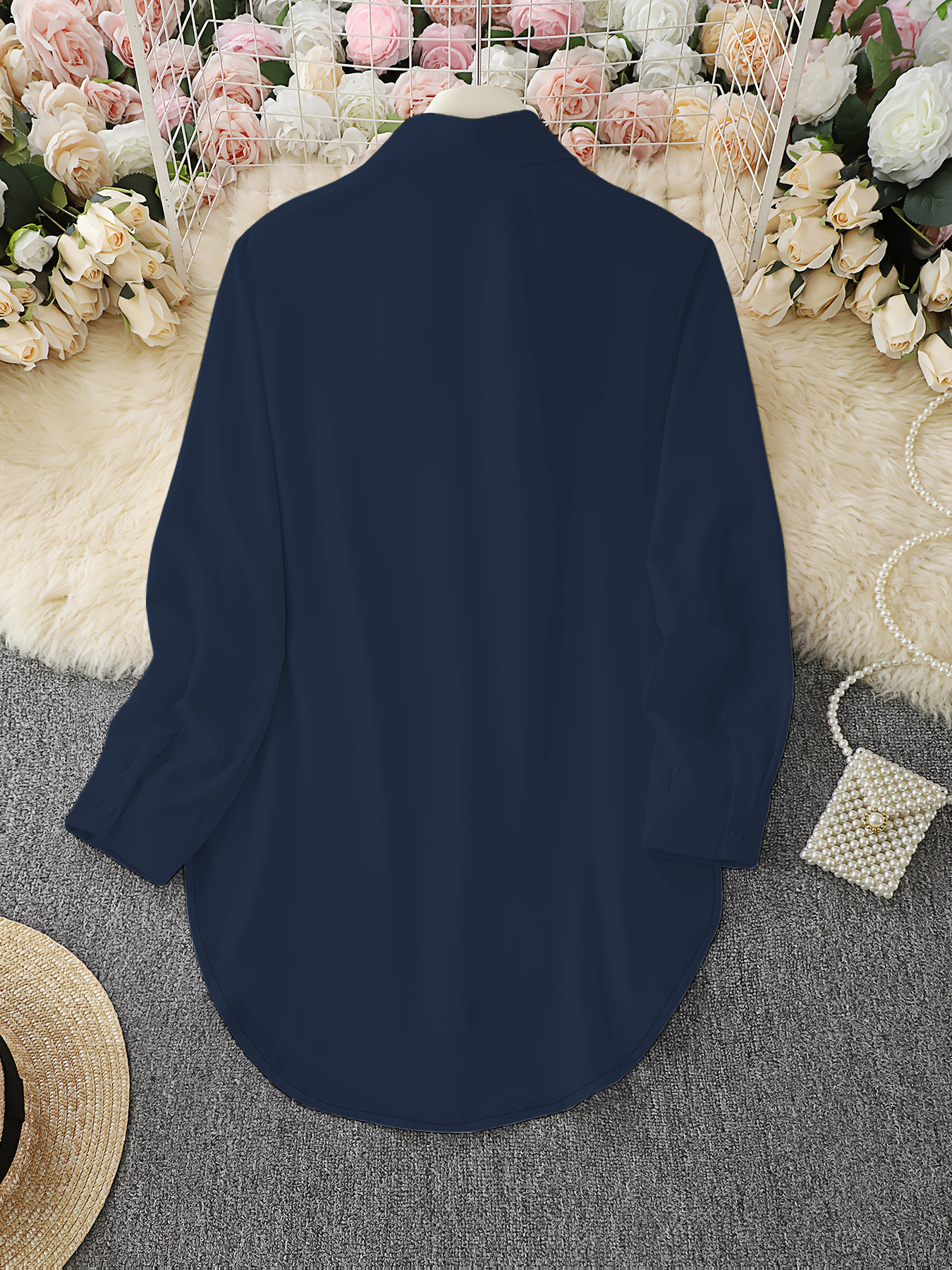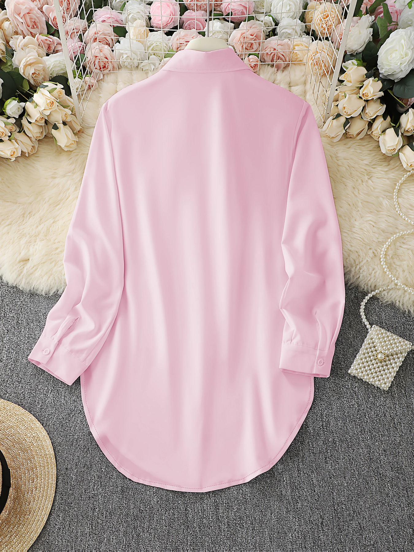 2024 AliExpress는 아마존 폭발 사계절 패션 간단한 불규칙한 숙녀 셔츠 긴 소매 셔츠를 기원합니다