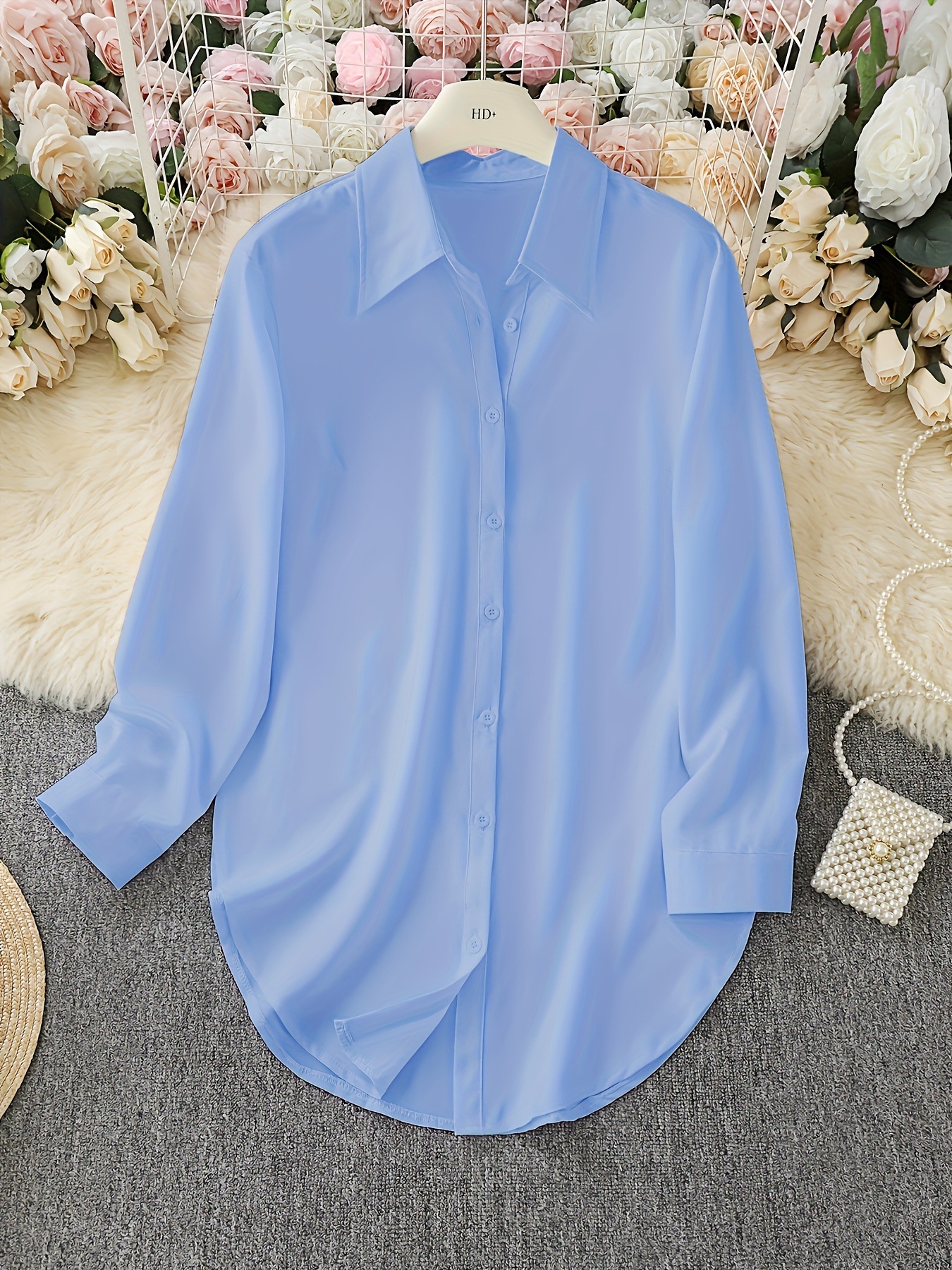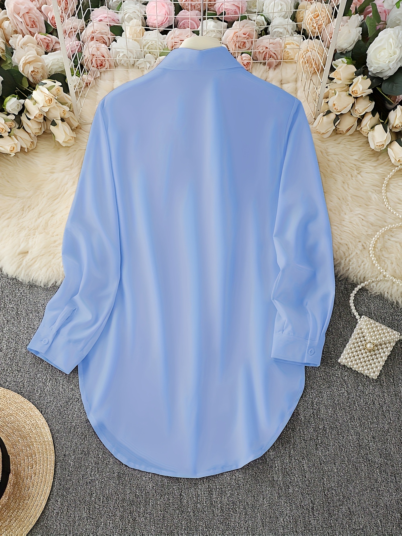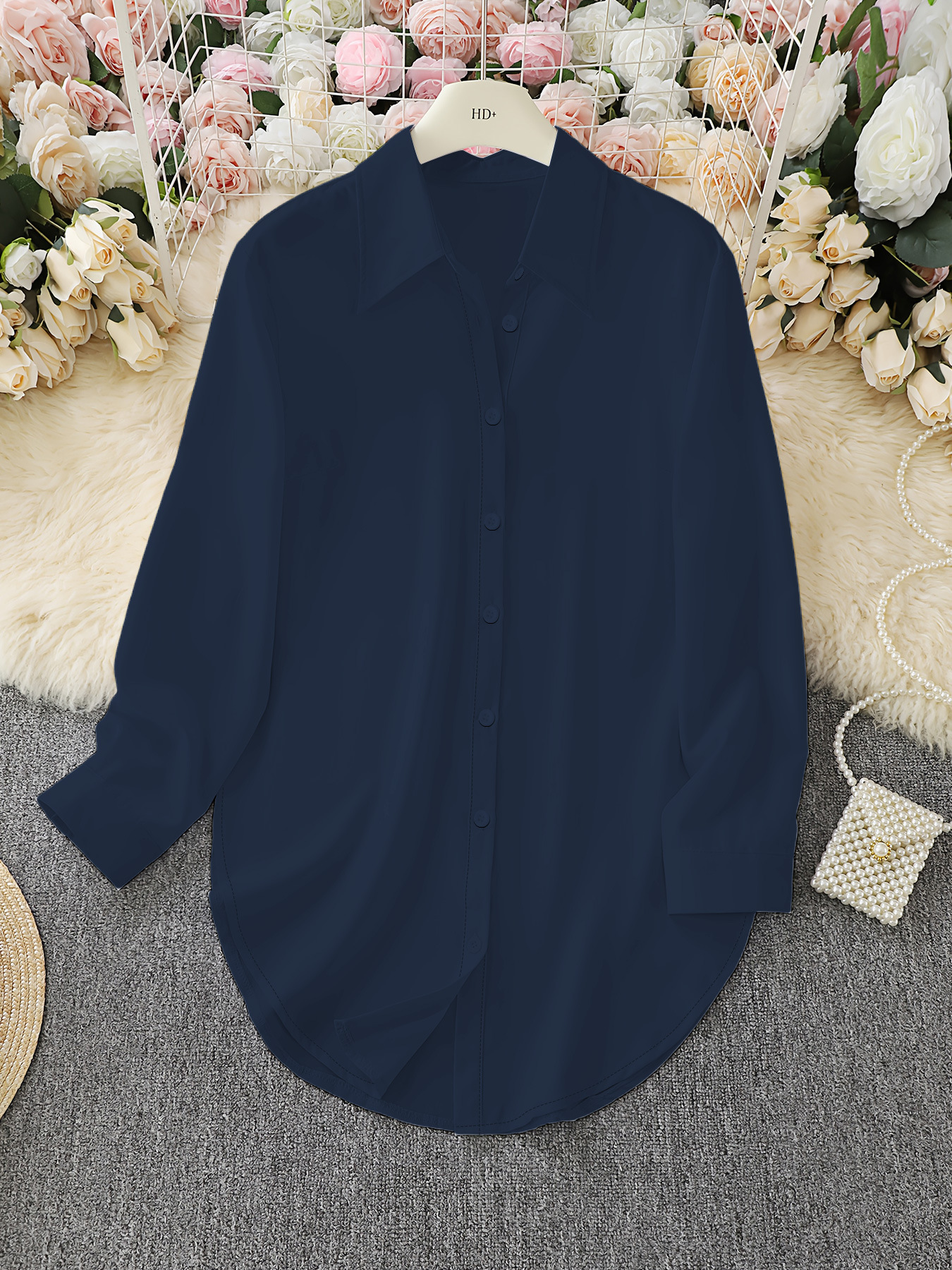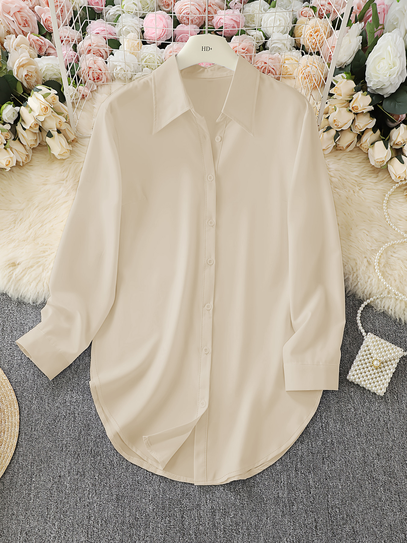 2024 AliExpress는 아마존 폭발 사계절 패션 간단한 불규칙한 숙녀 셔츠 긴 소매 셔츠를 기원합니다