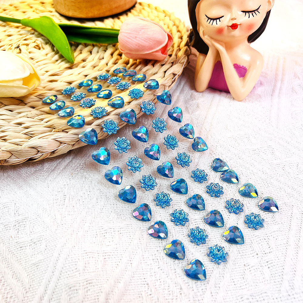 • 파란색 조각 60개(연꽃+사랑) 다채로운 보석 스티커