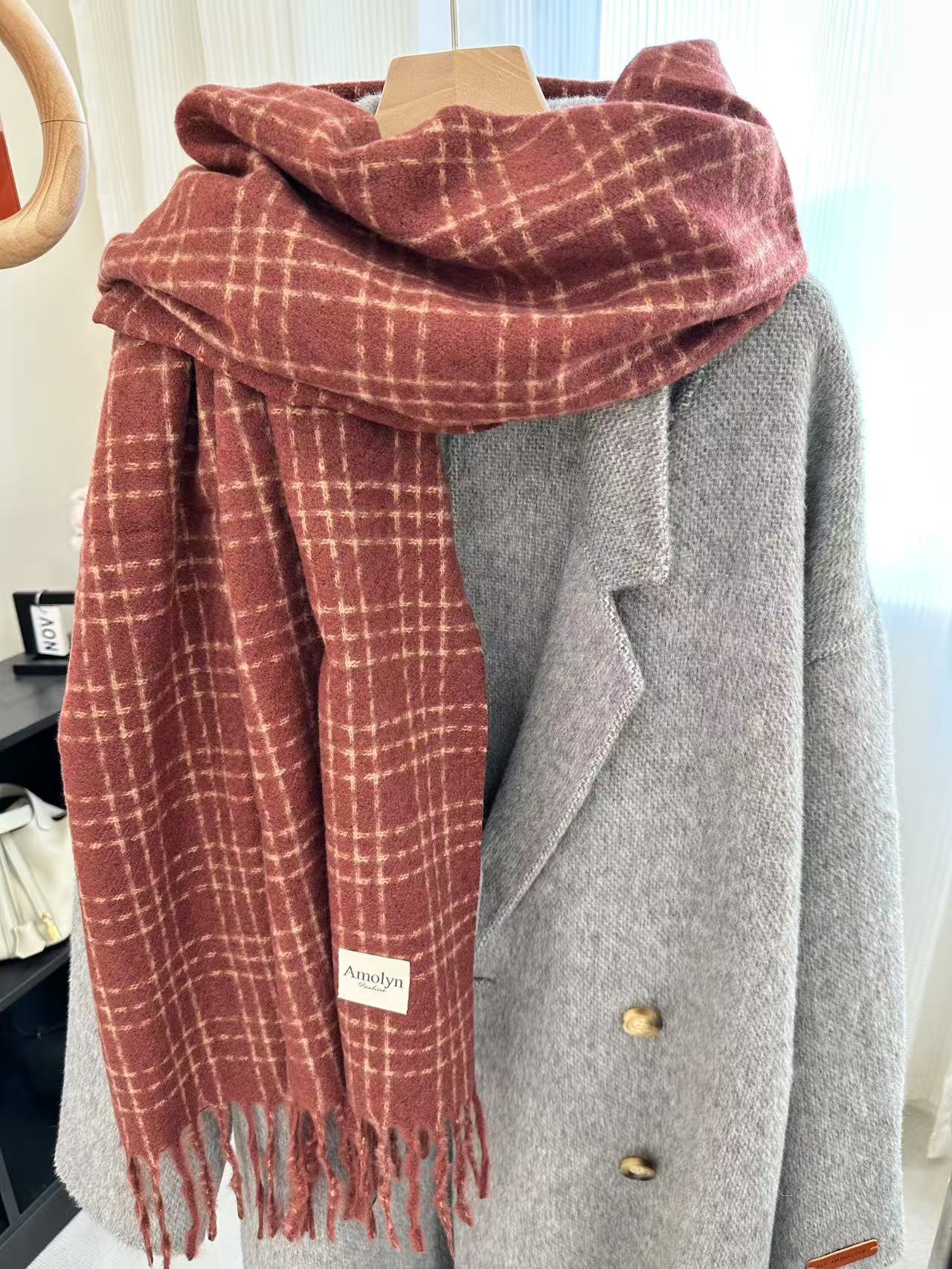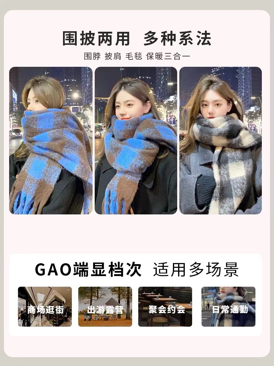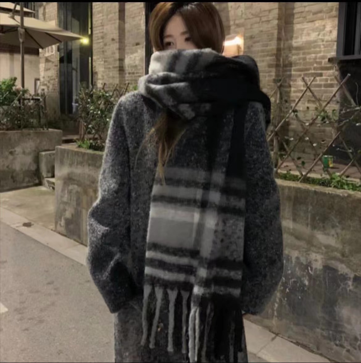 여성을위한 고급 격자 무늬 스카프 겨울 2024 새로운 한국어 버전 다목적 학생 귀여운 커플 두꺼운 따뜻한 스카프스토어 가기